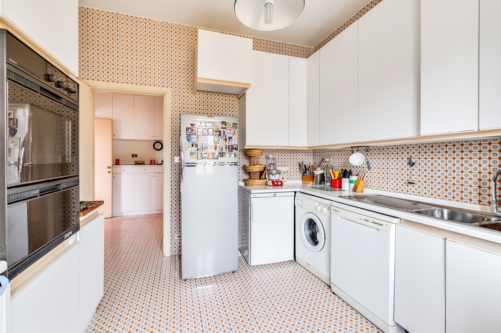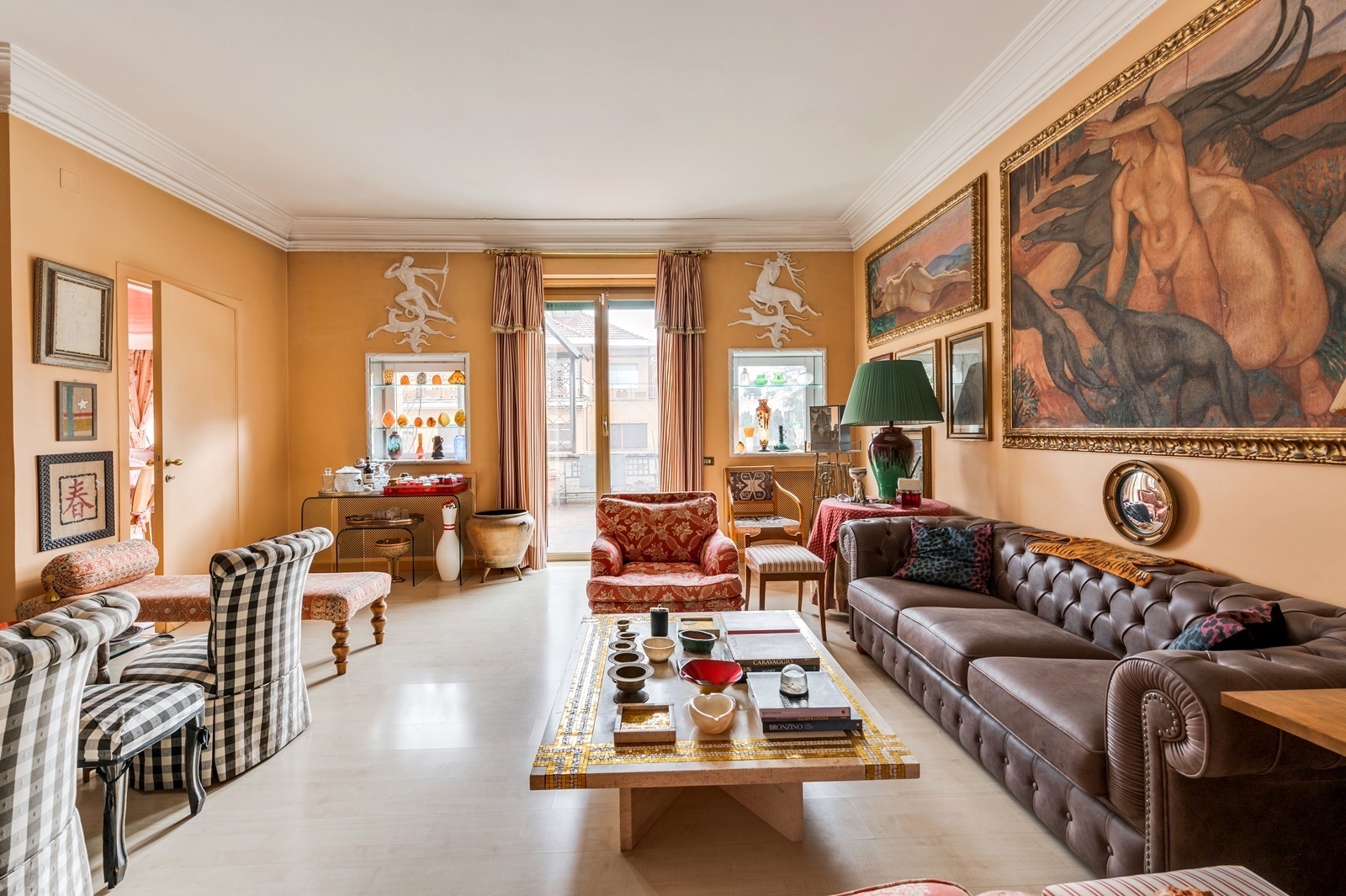 In the prestigious Parioli district, in an elegant, well-maintained building with concierge service, we offer for sale a panoramic penthouse apartment of approximately 180 sqm. plus a large living terrace, roof terrace and cellar.
