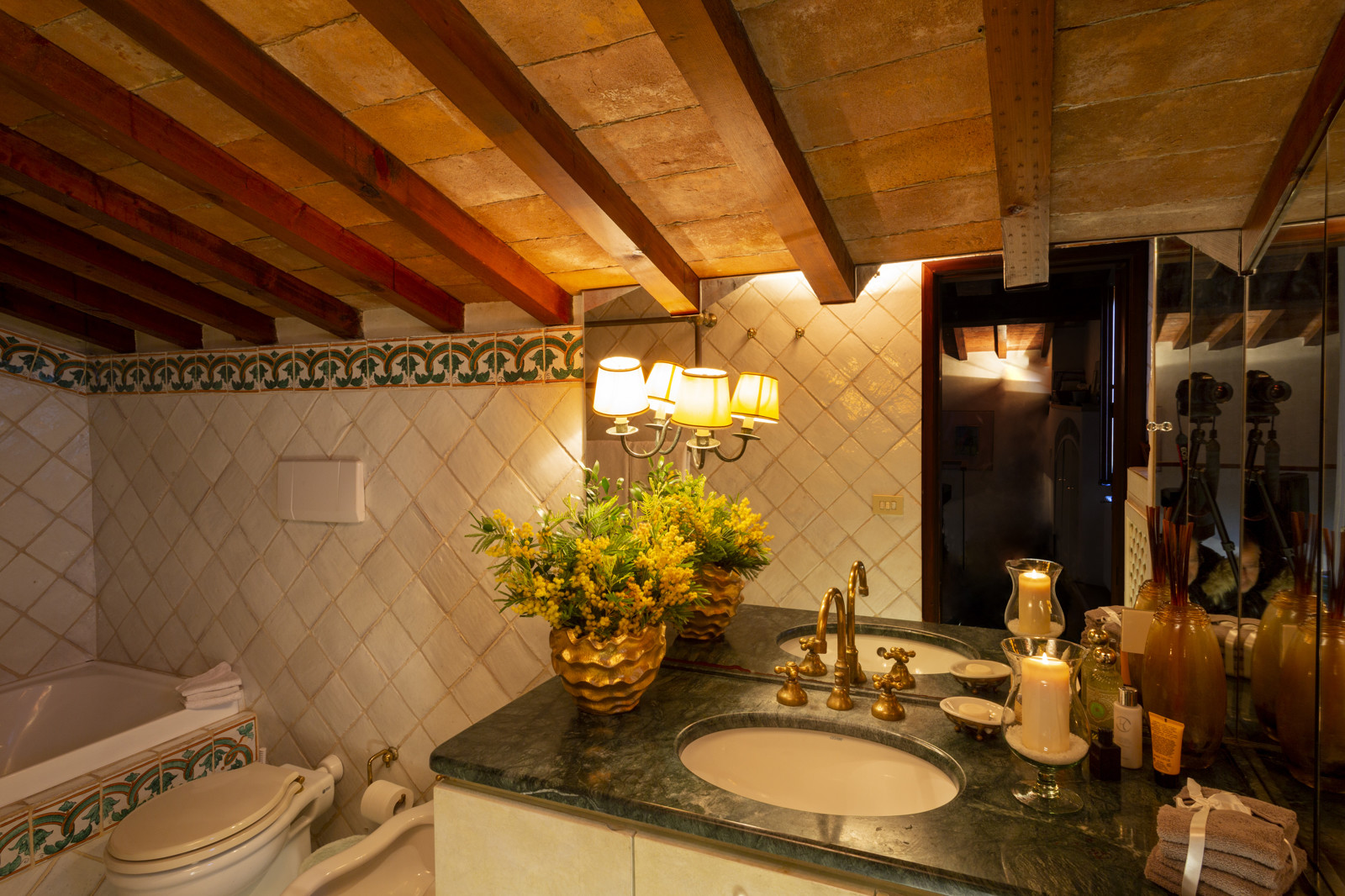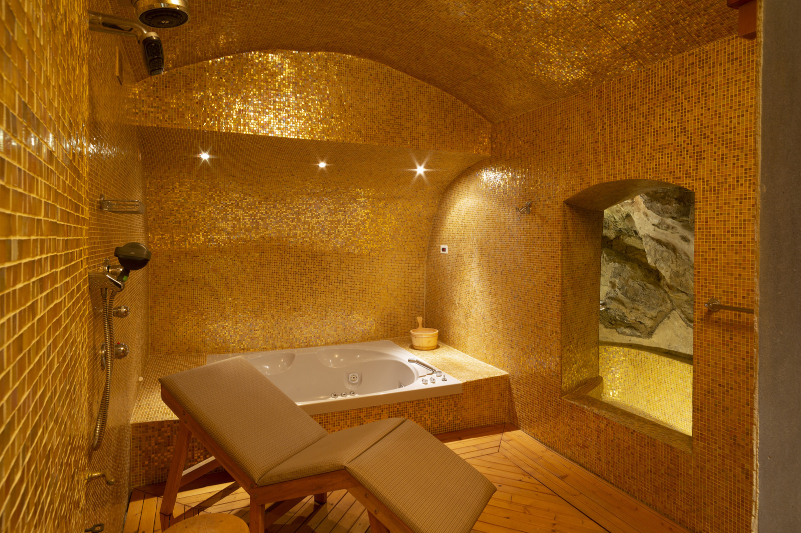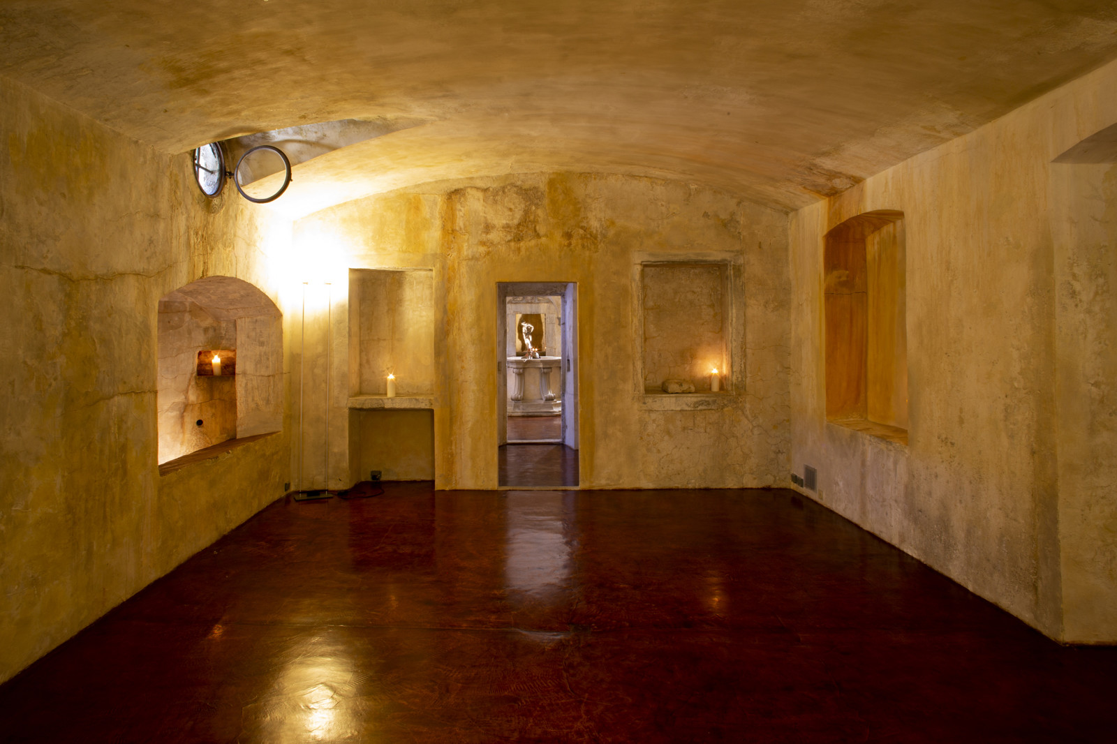 The basement floor houses the ancient underground baths with their nymphaeum decorated with precious statues and fountains in addition to a wellness area with sauna, Turkish bath, tub and Jacuzzi.