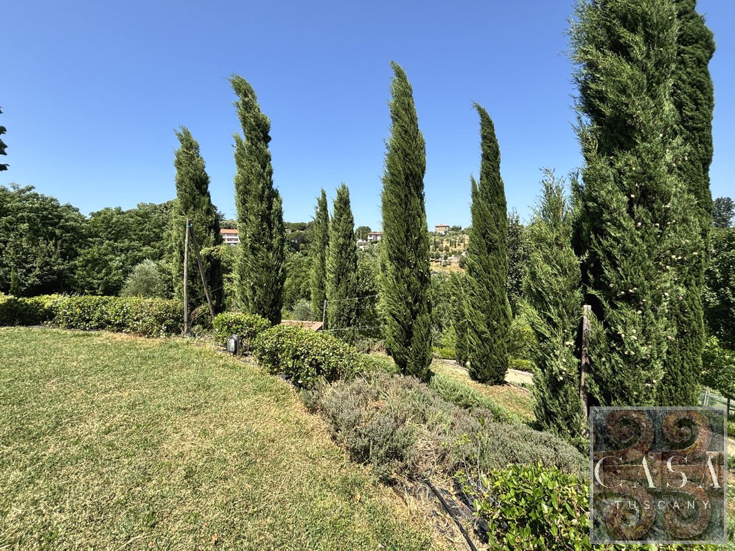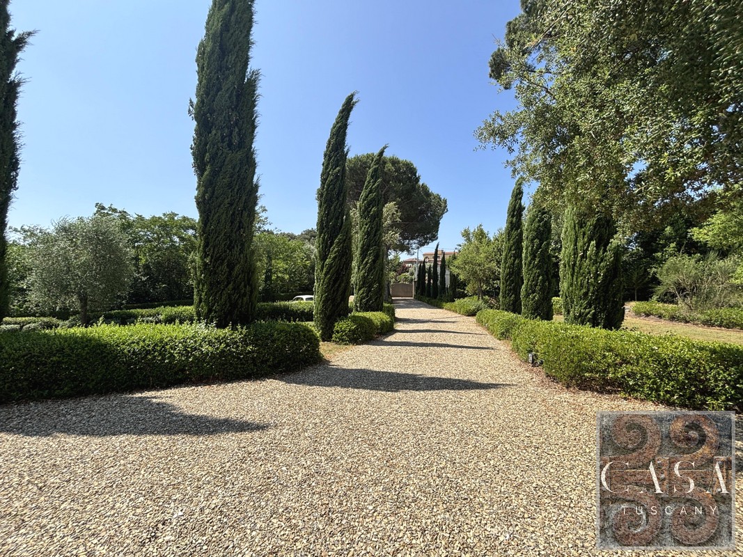 The gardens around the house have wonderful plants and flowers and are very well maintained. There are cypresses and a huge protected pine tree.