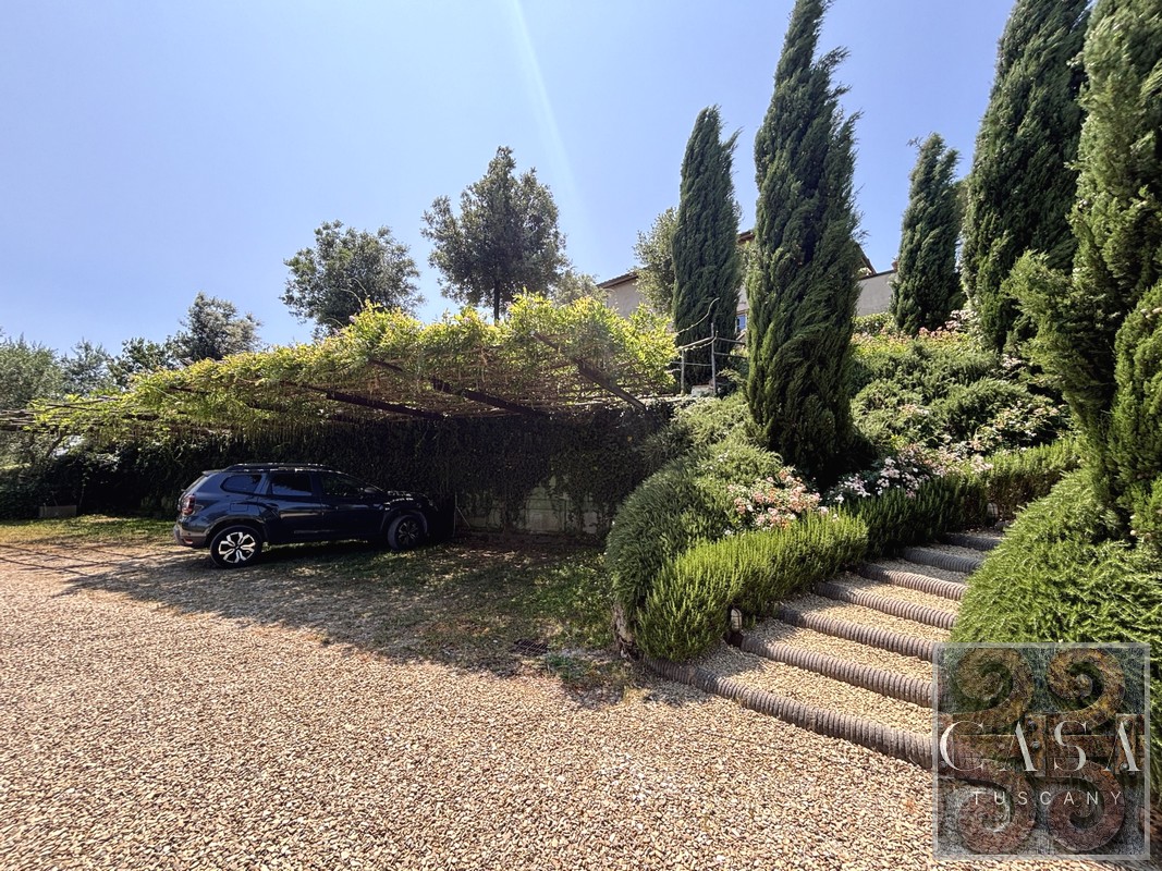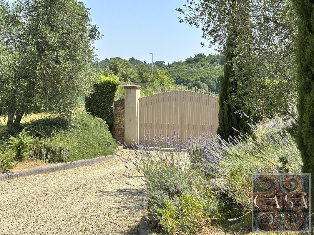 The property welcomes you with 2 driveways through two wonderful private gates, which lead to the parking areas and the house.