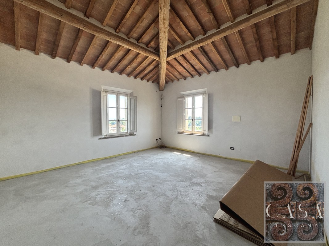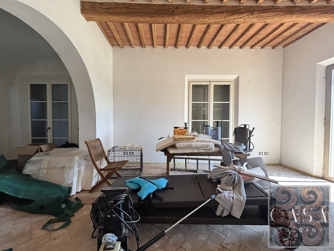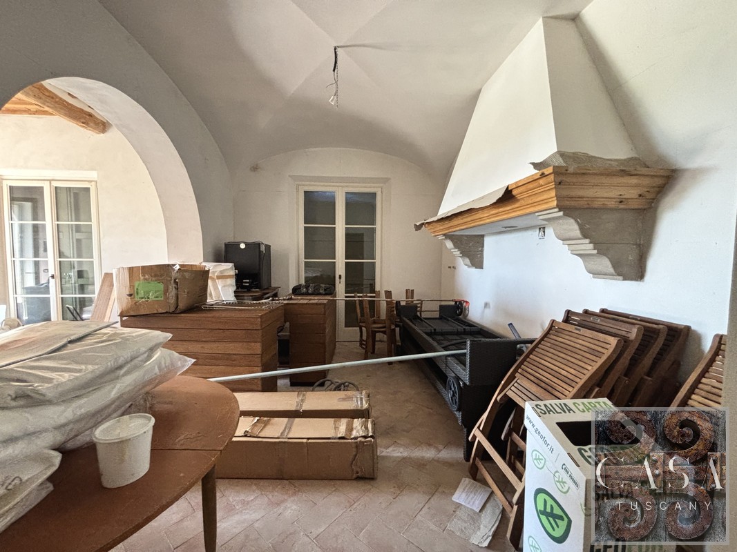 The whole restoration has been done extremely well with great attention to the sizes and the rooms, especially to the windows and doors, which are all very large and bright. The materials are all of a very high standard with handmade cotto floor tiles and fabulous ceilings, some with huge beams, others with vaults.
