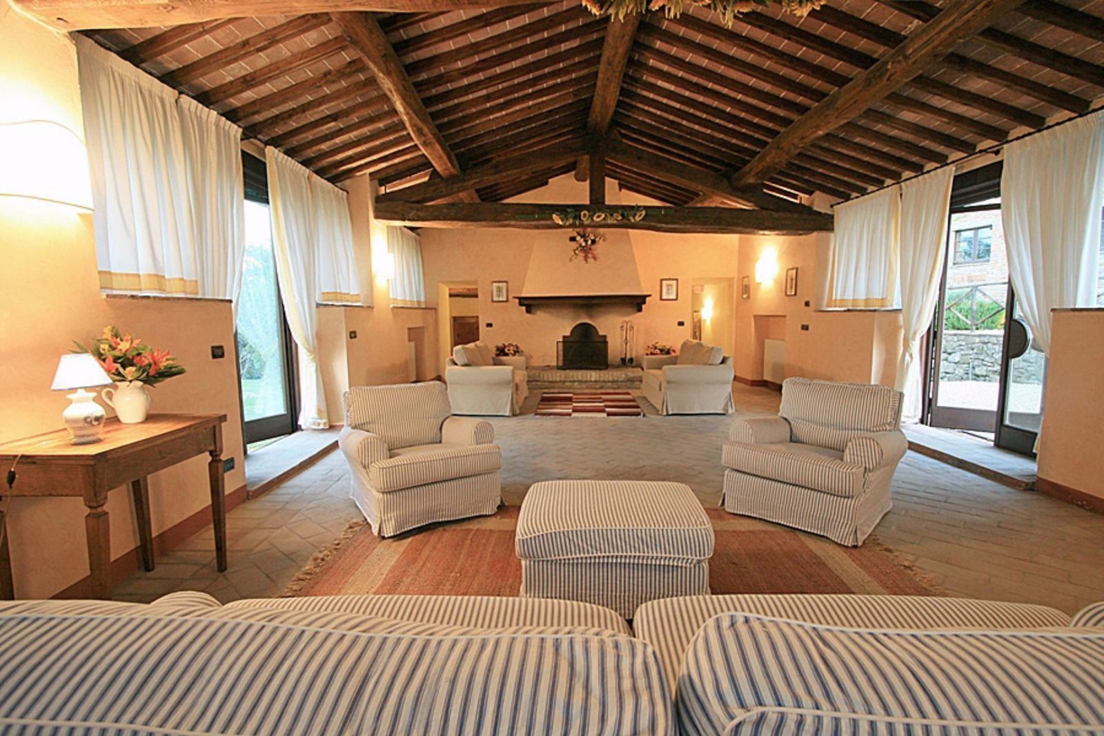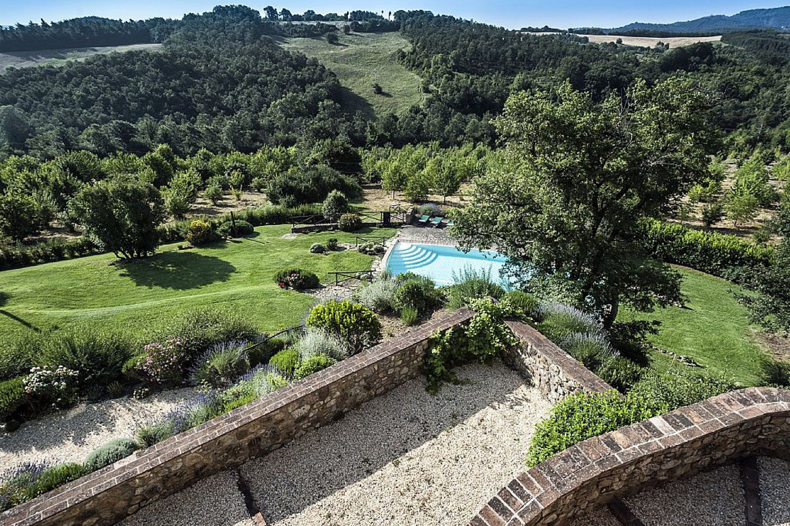 The property covers about 8 hectares of land, enhanced by an 8,000 sqm landscaped garden with lawn. Outside there is a splendid panoramic swimming pool, a wood-burning oven, a barbecue area and various spaces designed to fully experience the beauty of the Tuscan countryside.