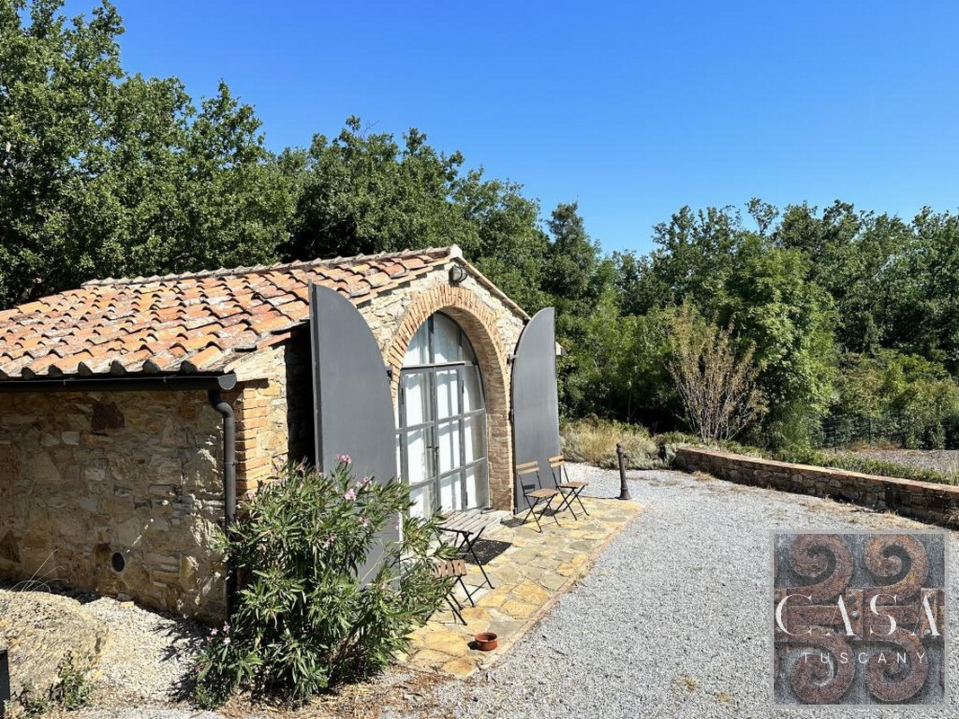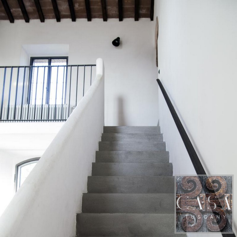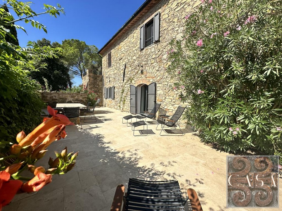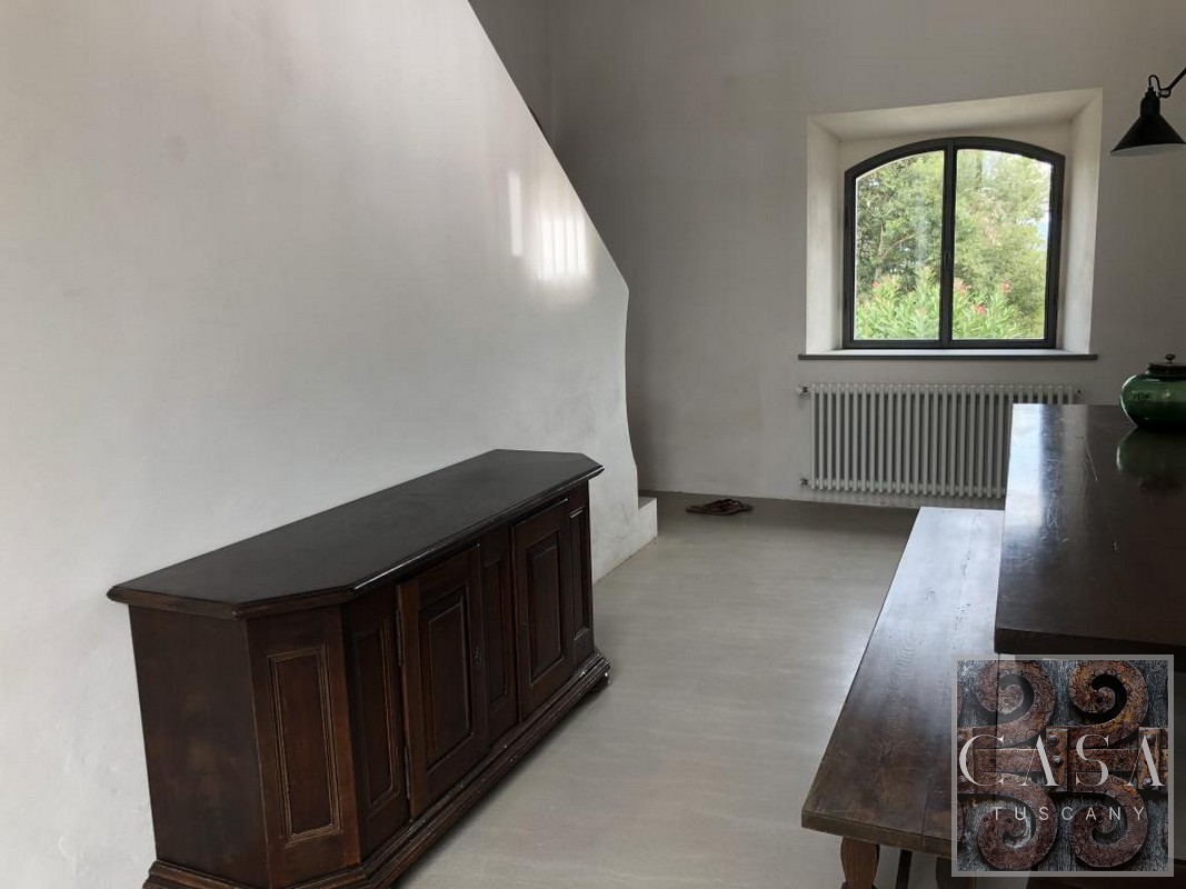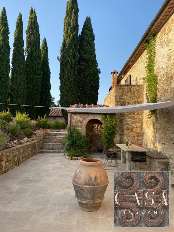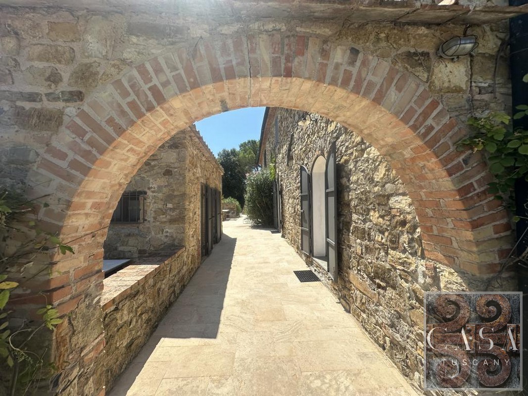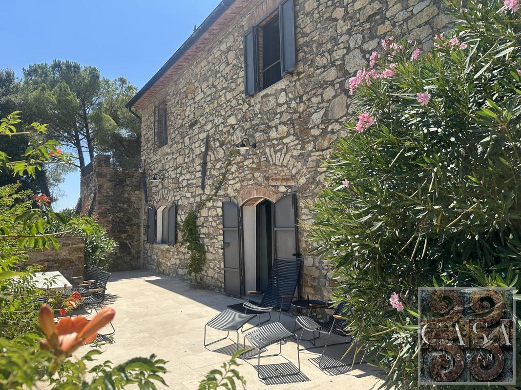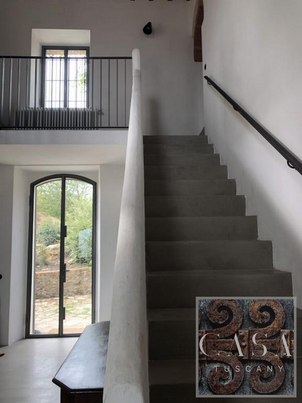 The house is accessed via an unpaved road that connects a total of six houses. This location ensures maximum privacy while still being integrated into the neighborhood infrastructure. The property is a typical Tuscan estate from the early 18th century, which was completely renovated in 2019 and converted into a beautiful, modern villa.
