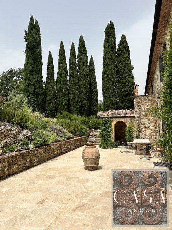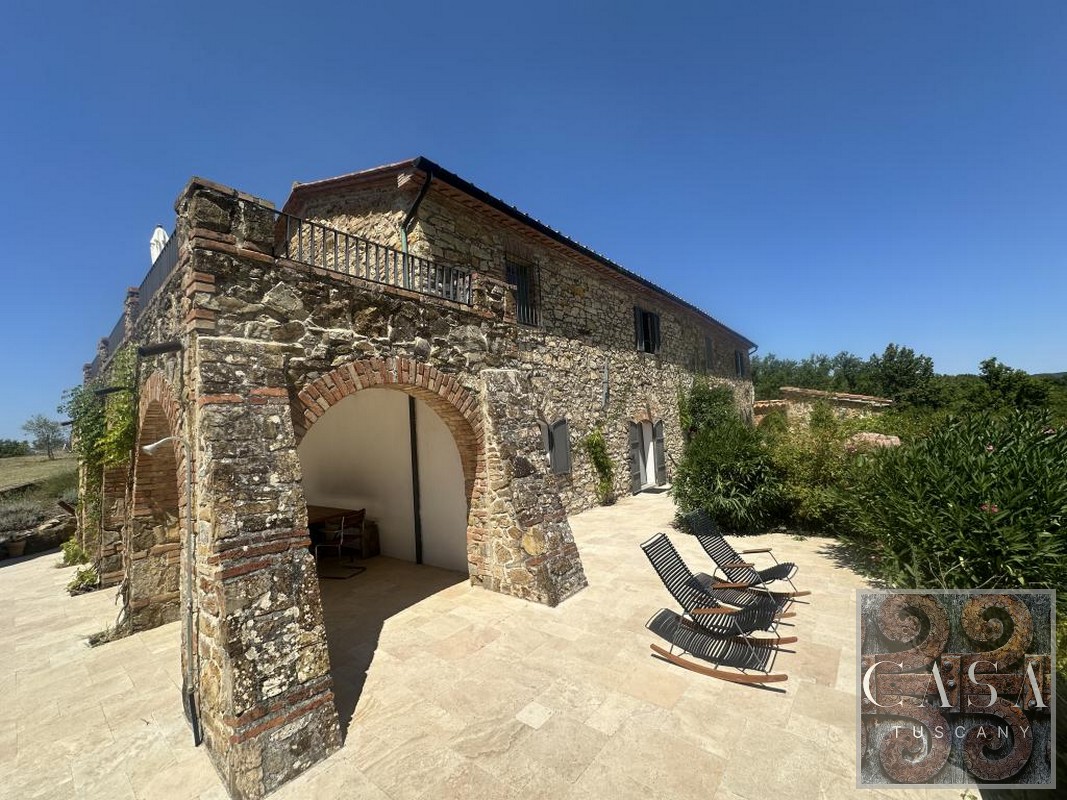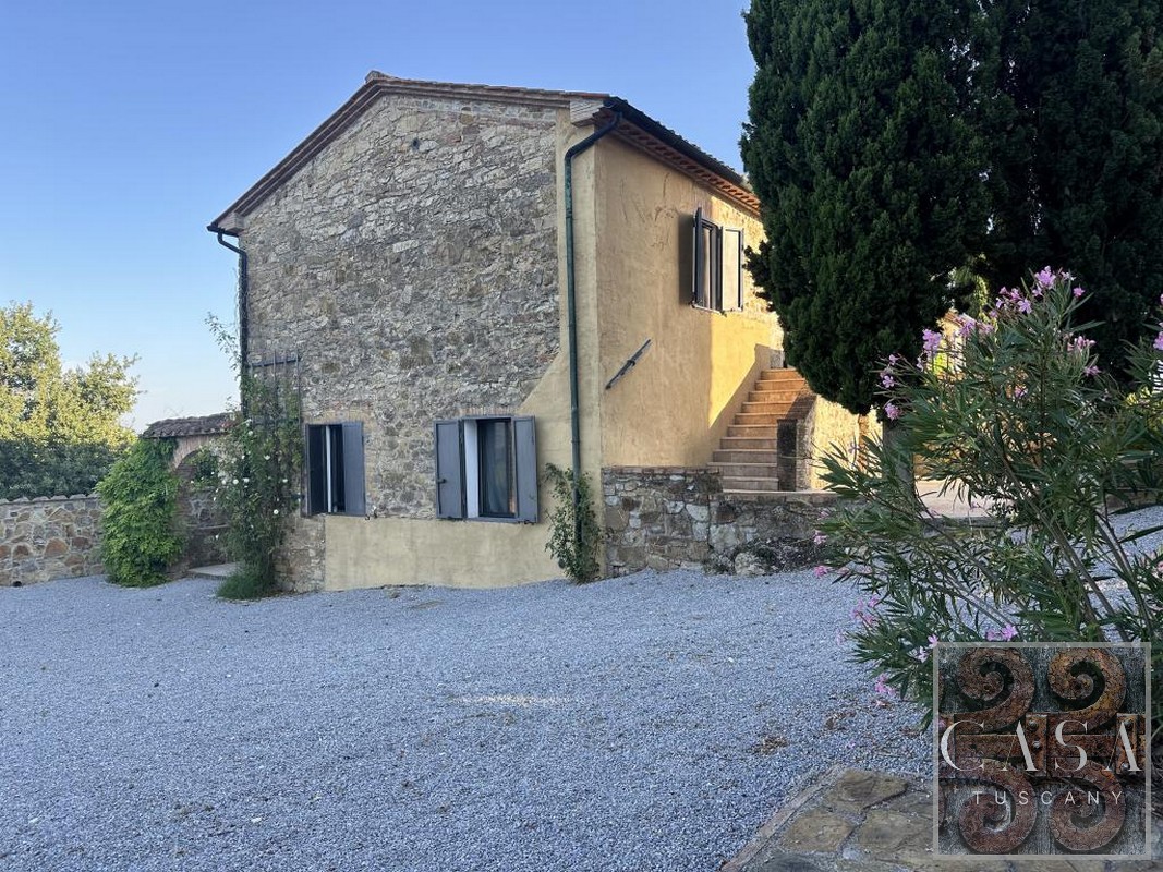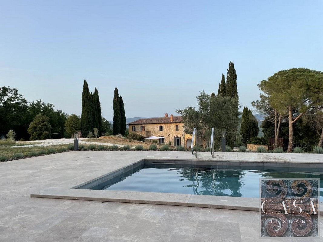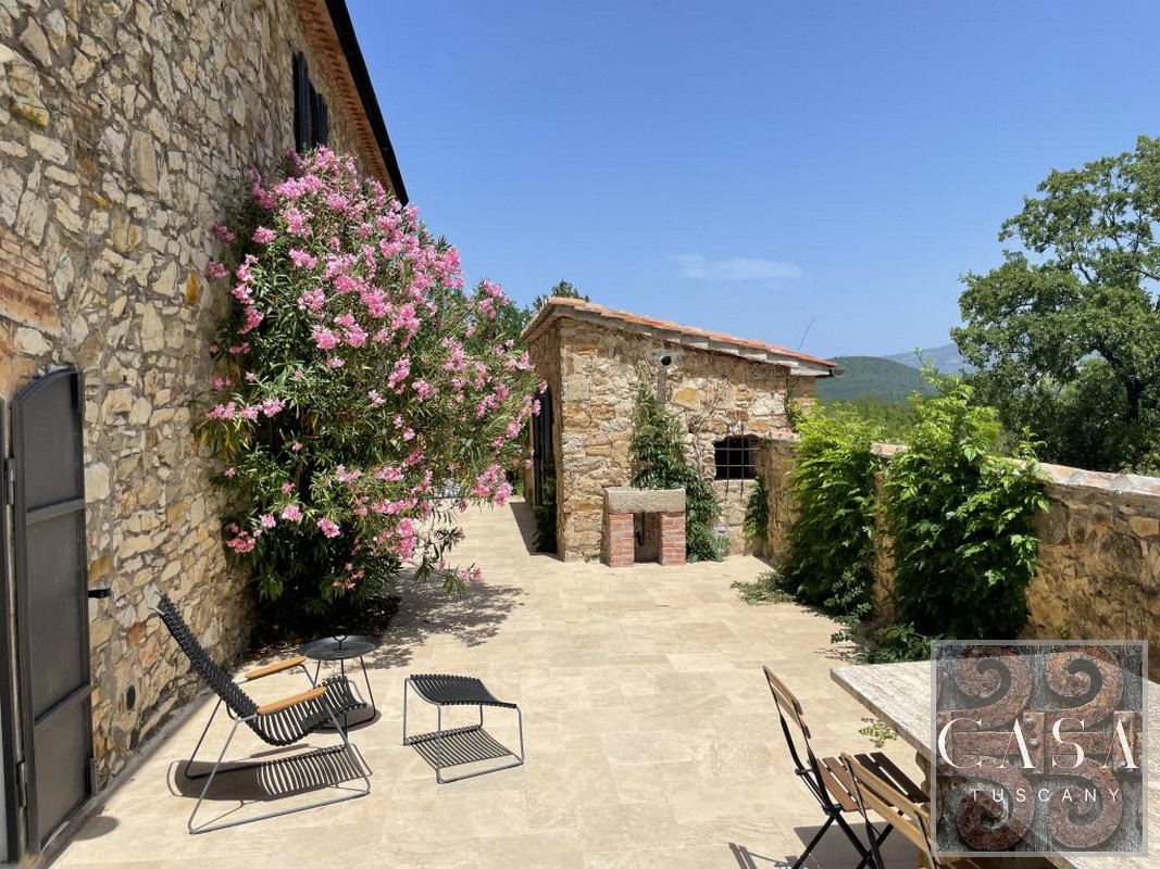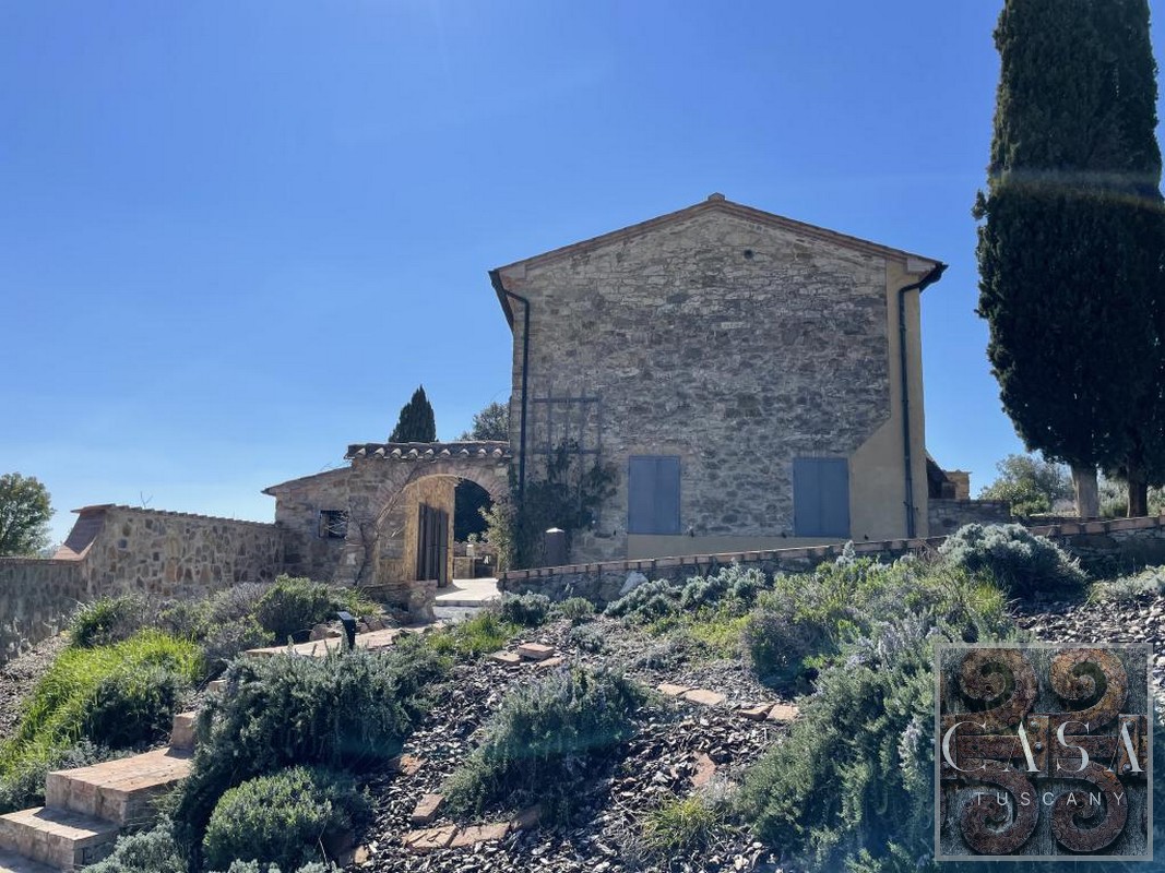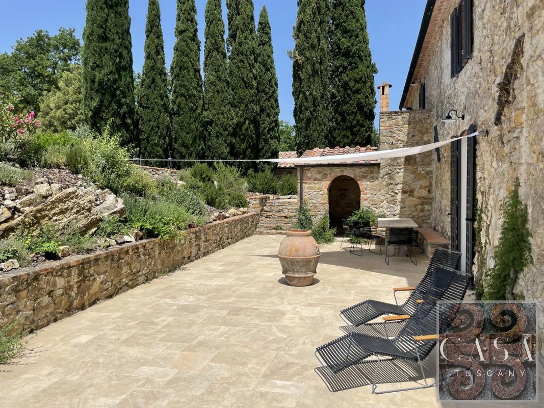 The house is accessed via an unpaved road that connects a total of six houses. This location ensures maximum privacy while still being integrated into the neighborhood infrastructure. The property is a typical Tuscan estate from the early 18th century, which was completely renovated in 2019 and converted into a beautiful, modern villa.