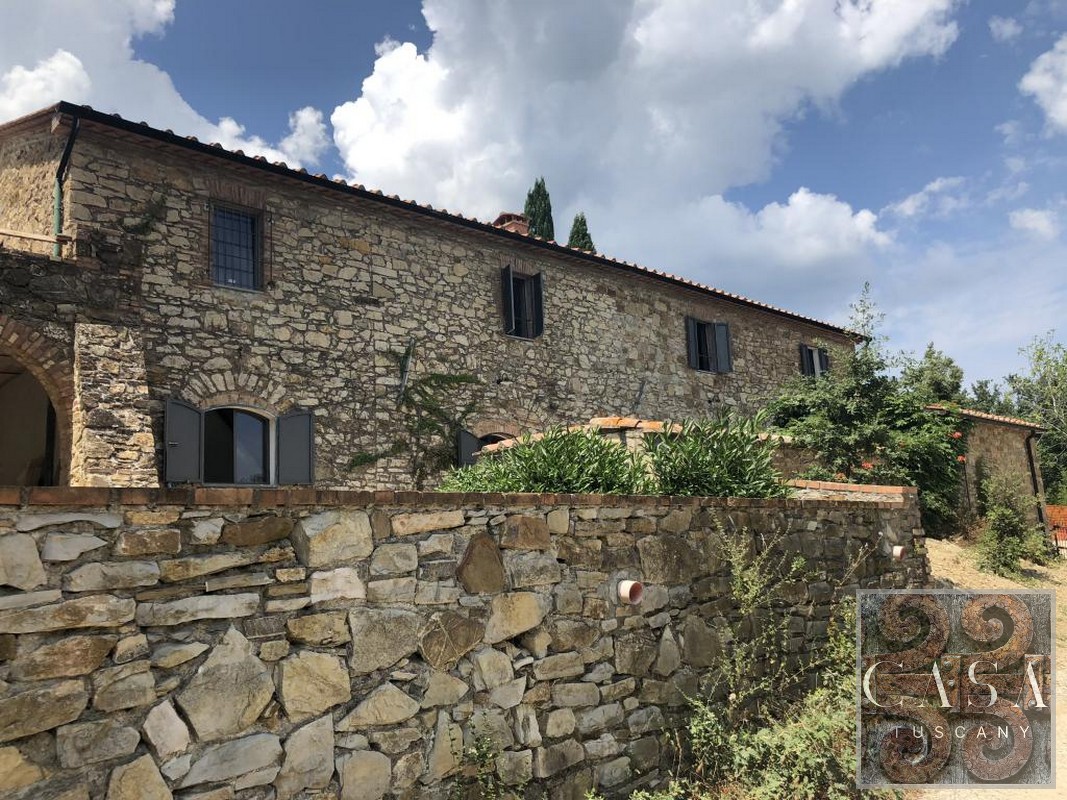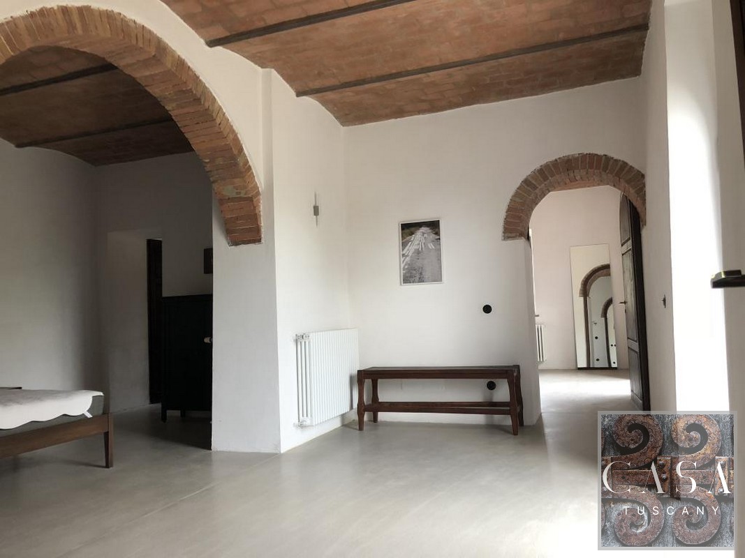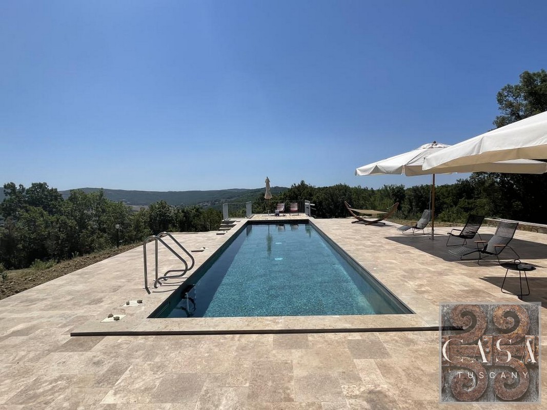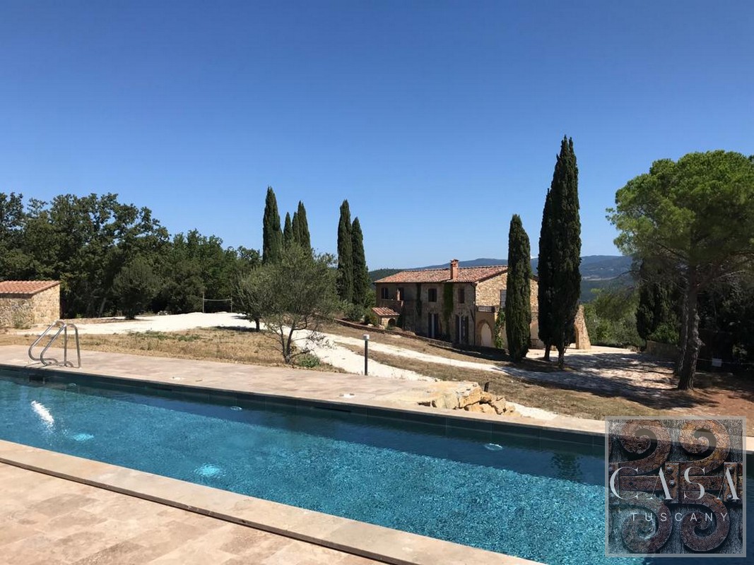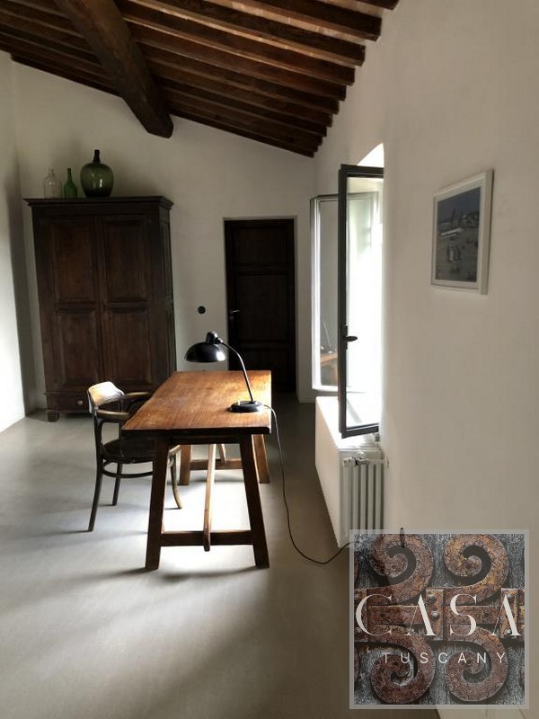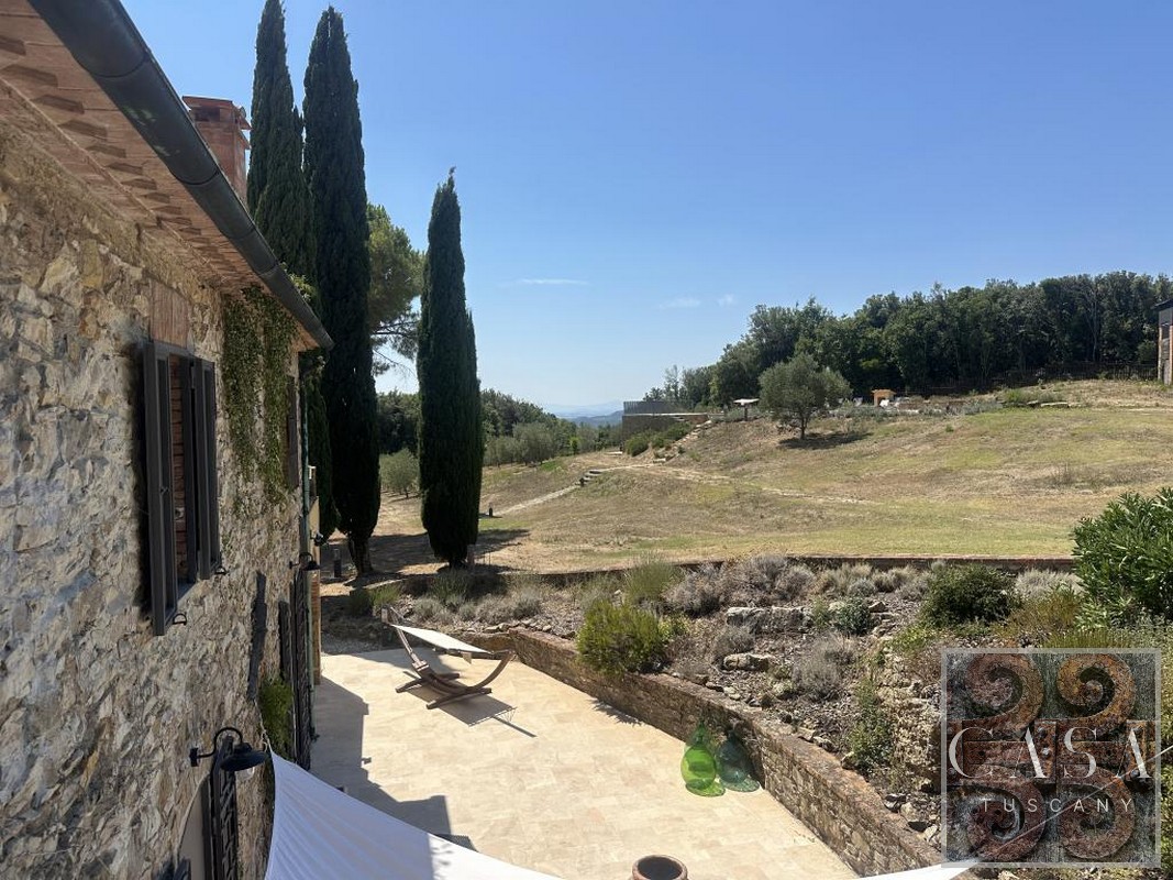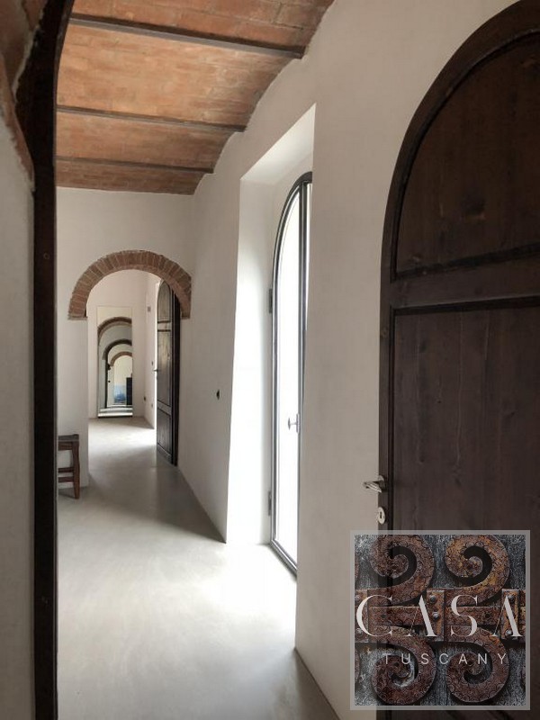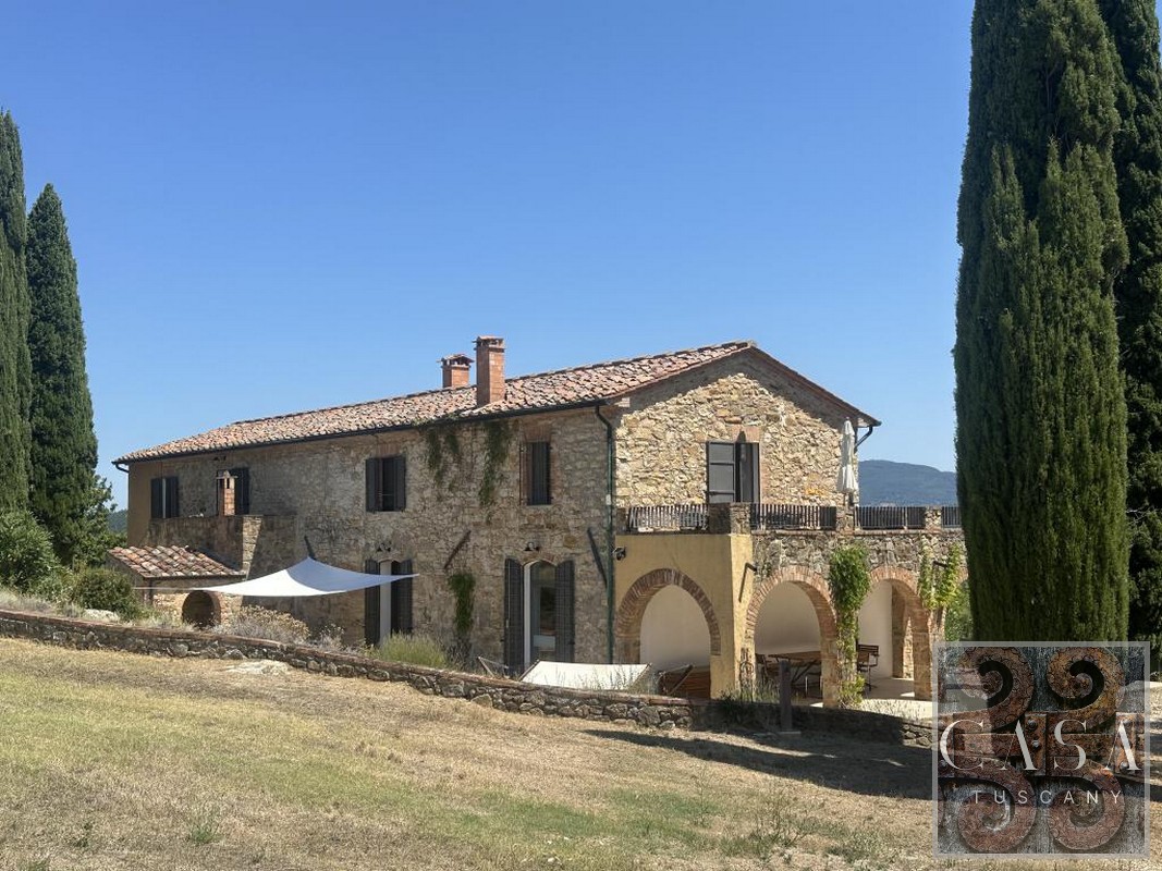 The house is accessed via an unpaved road that connects a total of six houses. This location ensures maximum privacy while still being integrated into the neighborhood infrastructure. The property is a typical Tuscan estate from the early 18th century, which was completely renovated in 2019 and converted into a beautiful, modern villa.