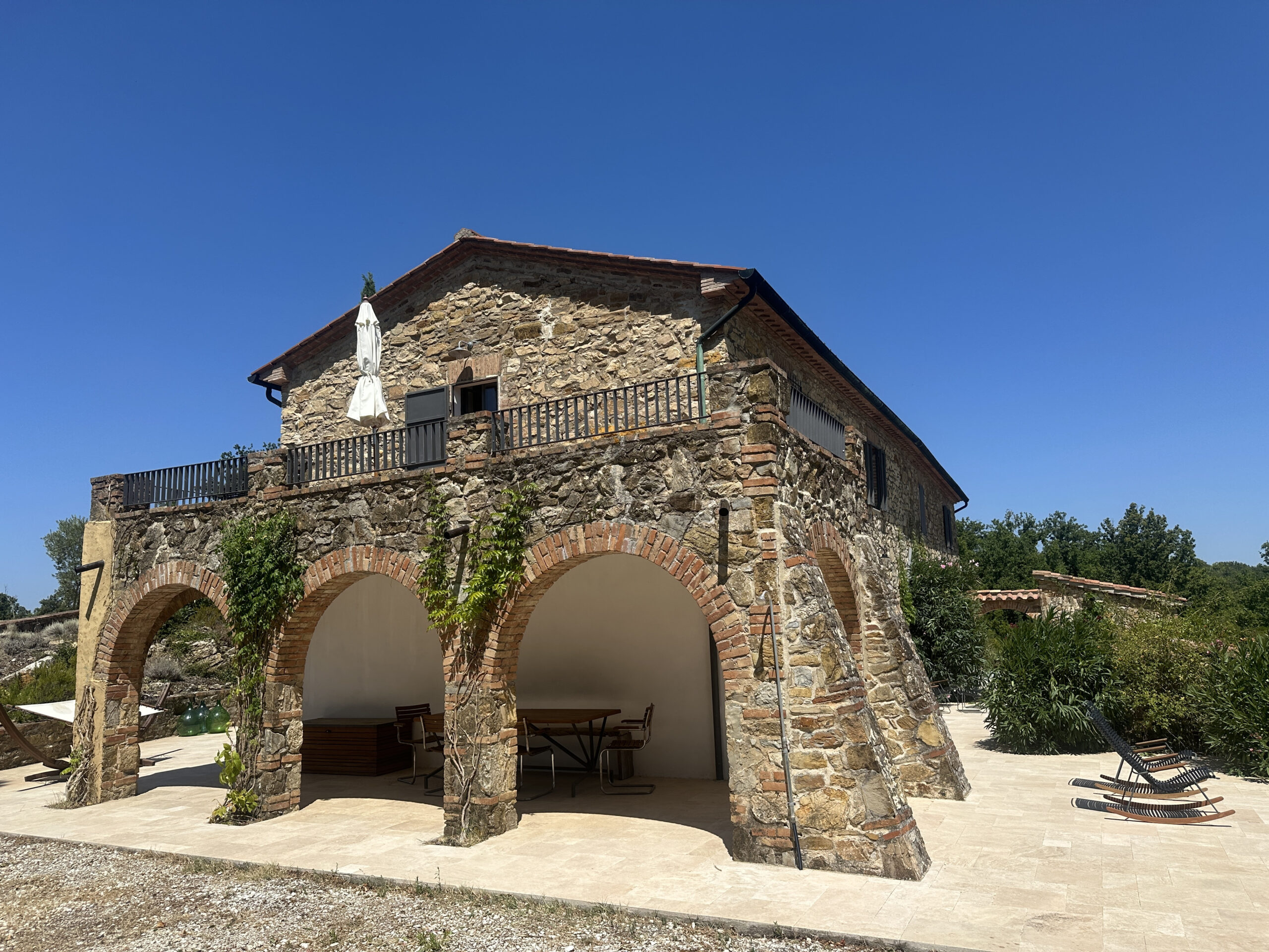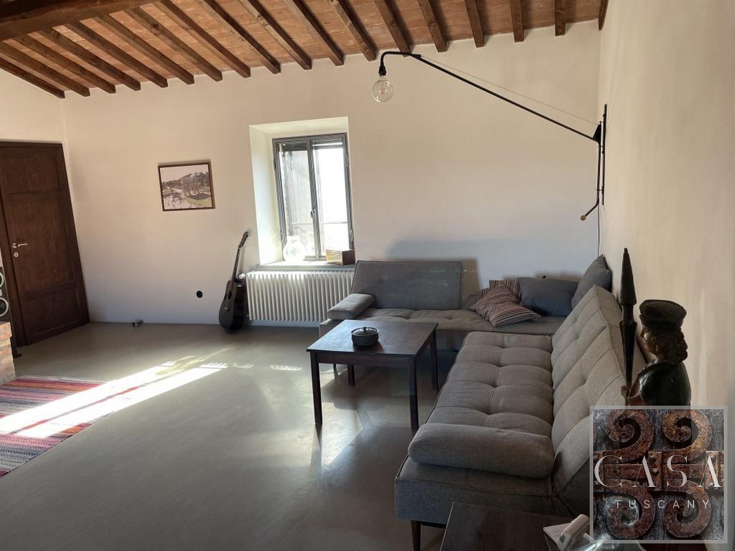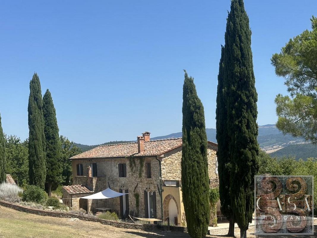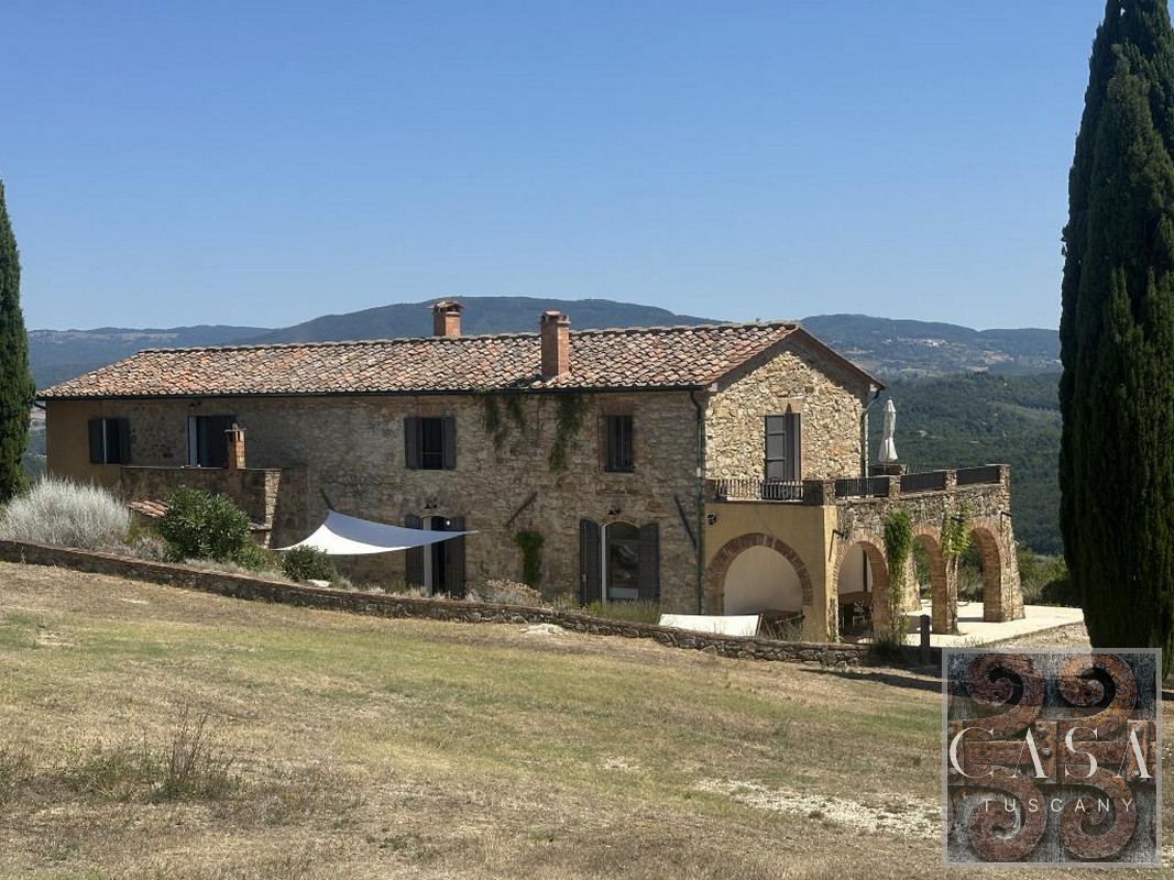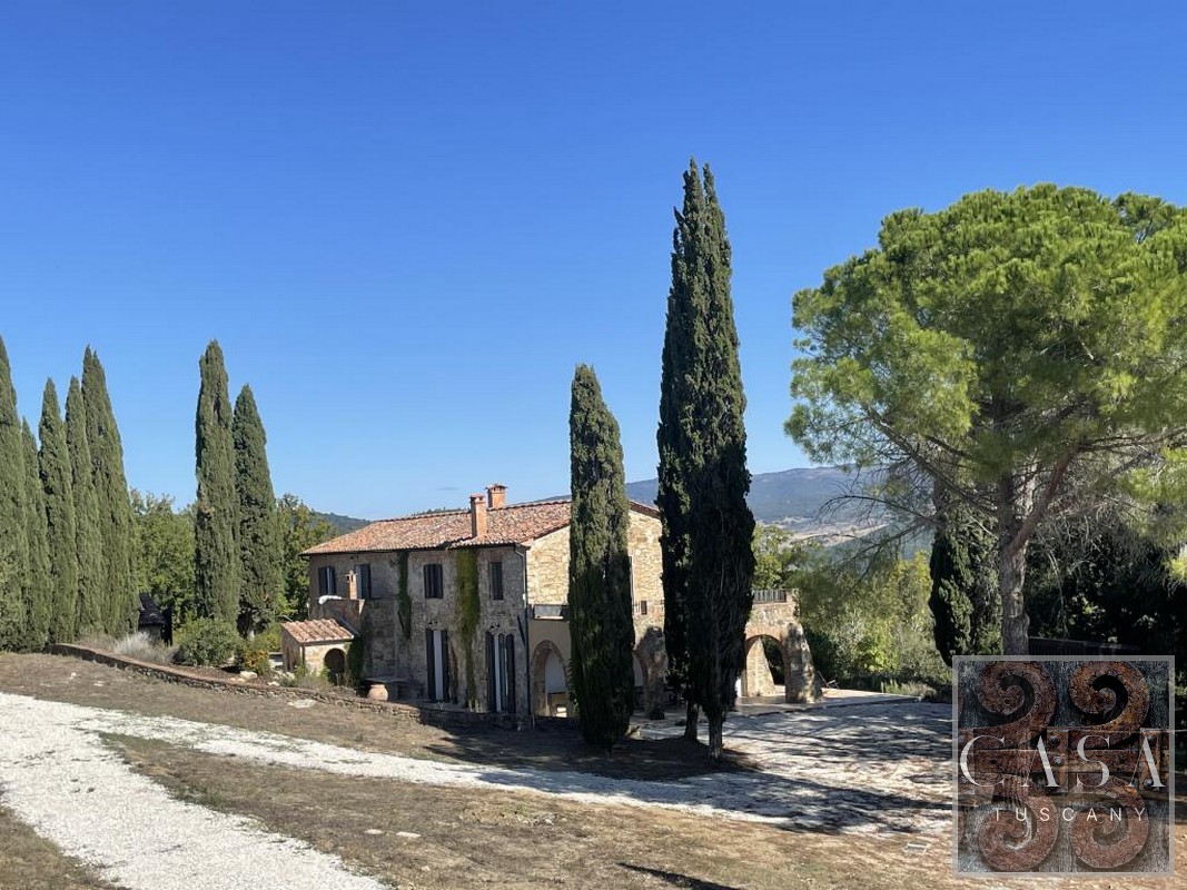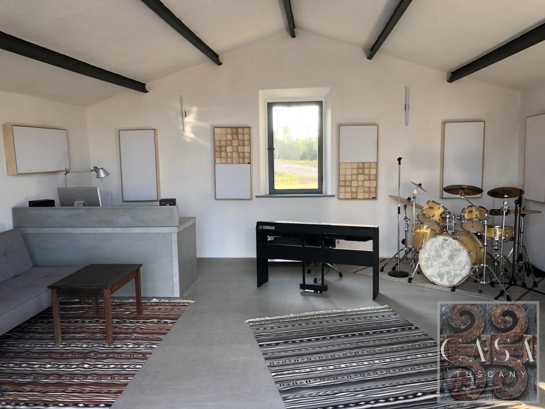 The house is accessed via an unpaved road that connects a total of six houses. This location ensures maximum privacy while still being integrated into the neighborhood infrastructure. The property is a typical Tuscan estate from the early 18th century, which was completely renovated in 2019 and converted into a beautiful, modern villa.