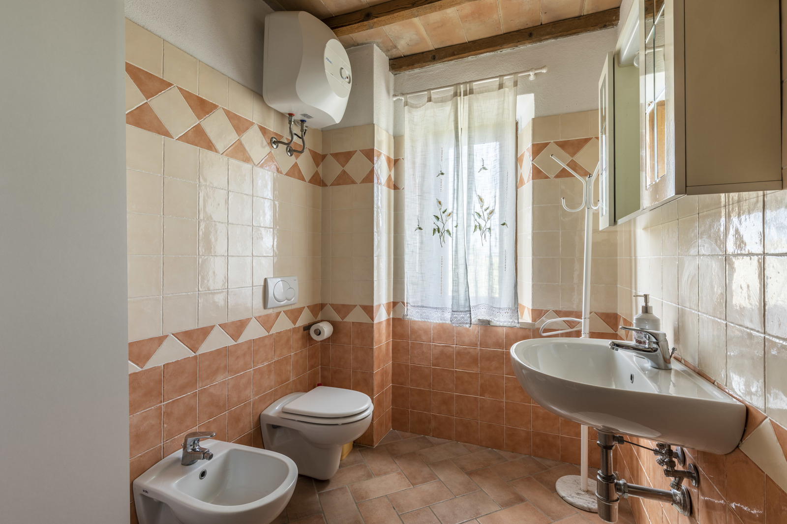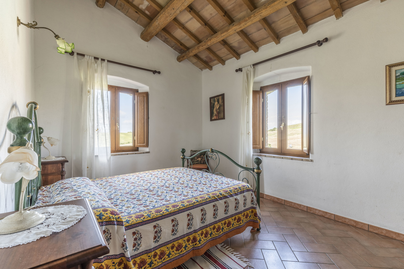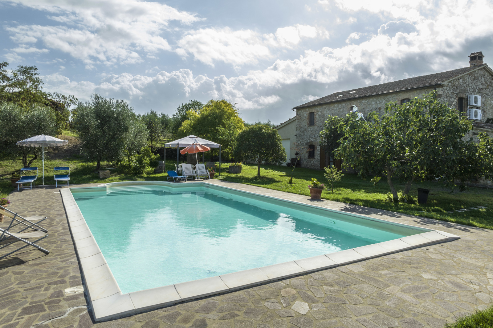 The farmhouse is in great condition, since it was renovated in the early 2000, has stone facade, terracotta tiles. Interiors have been renovated in typical style with ceilings beam and terracotta floor on the first floor and arches on the ground floor. The building has also been consolidated and the installations and utilities upgraded.