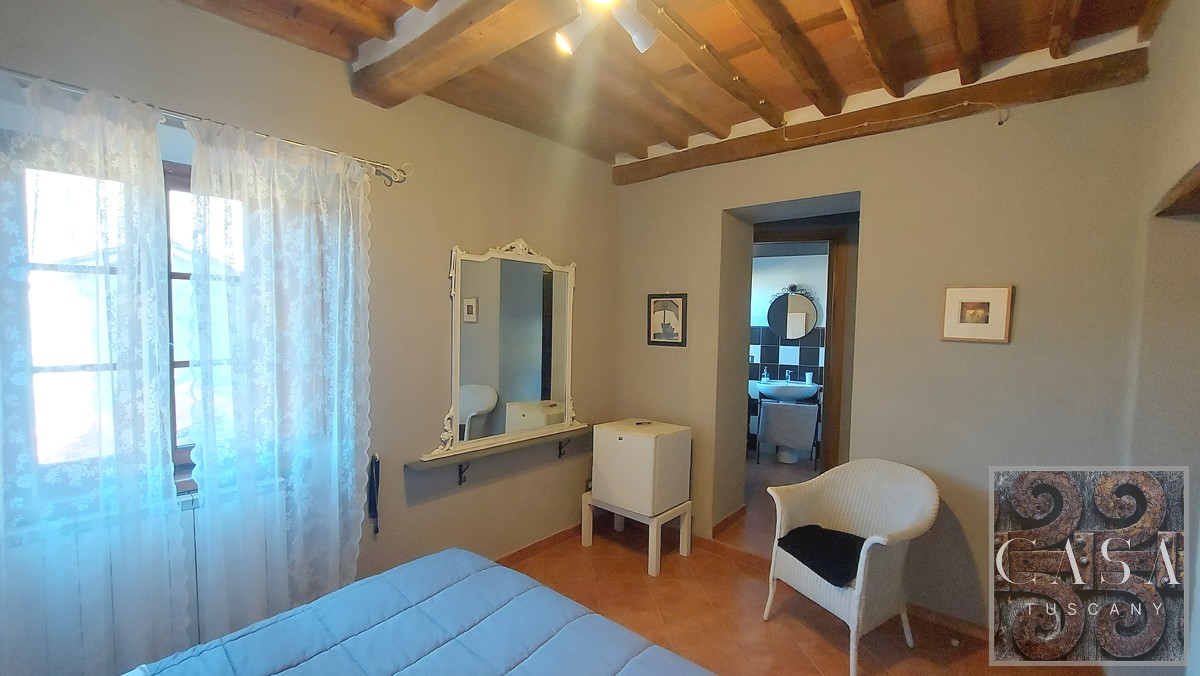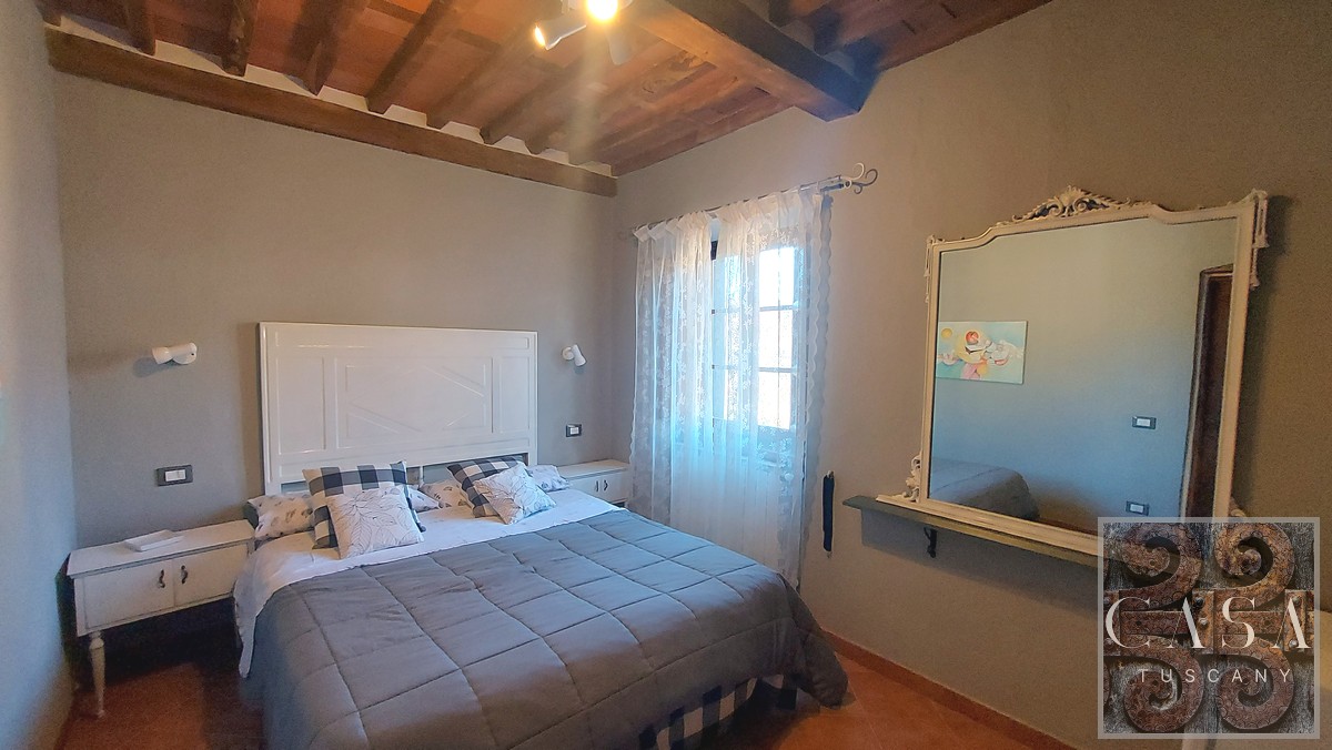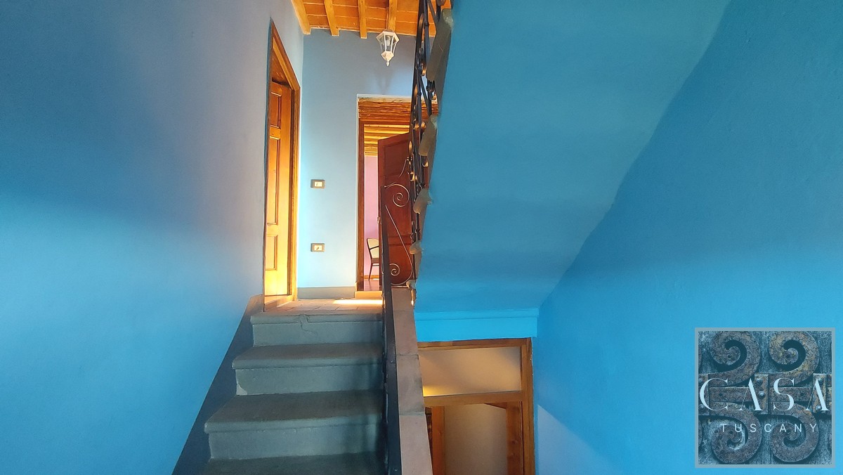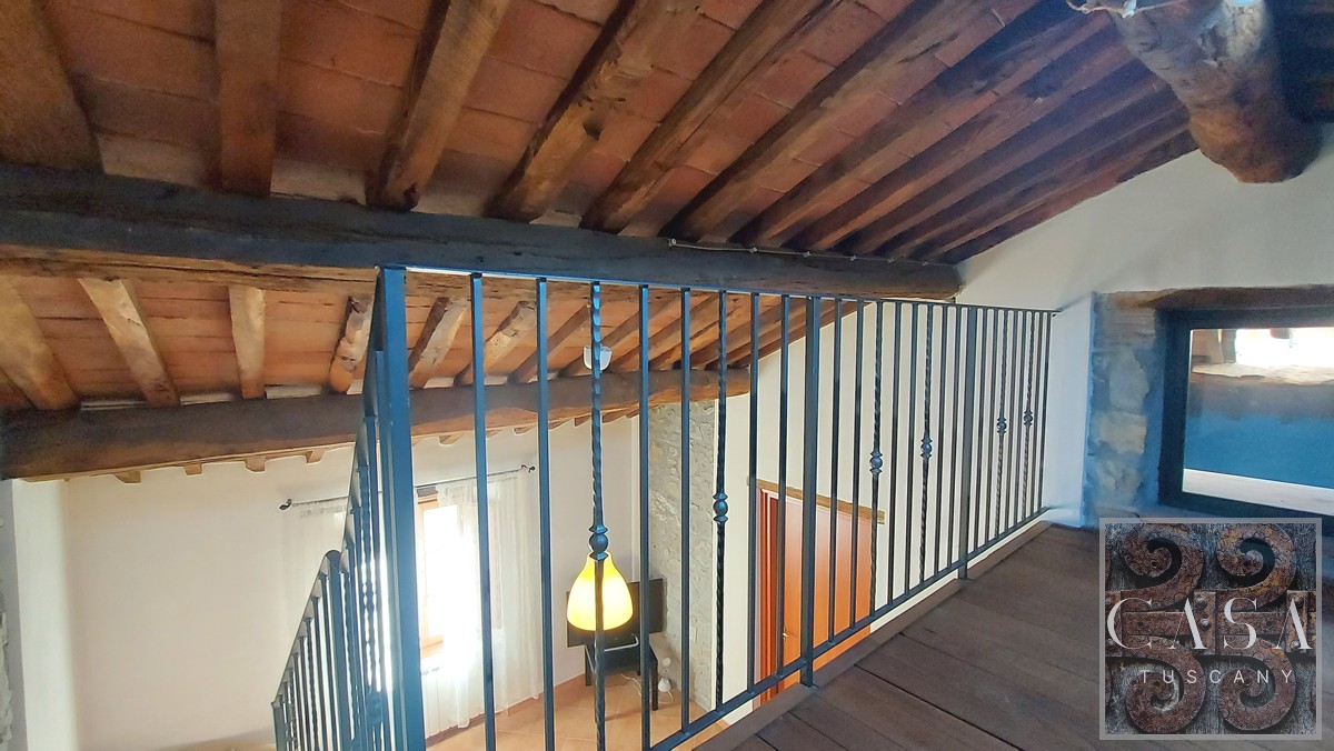 The house was renovated in 2015 using high-quality materials, preserving many original features of the traditional Tuscan style, such as terracotta floors, chestnut wood beams, mezzanine ceilings and stone decorations. The window frames are made of chestnut wood with double glazing and the staircases are in stone.
