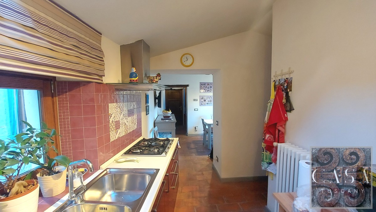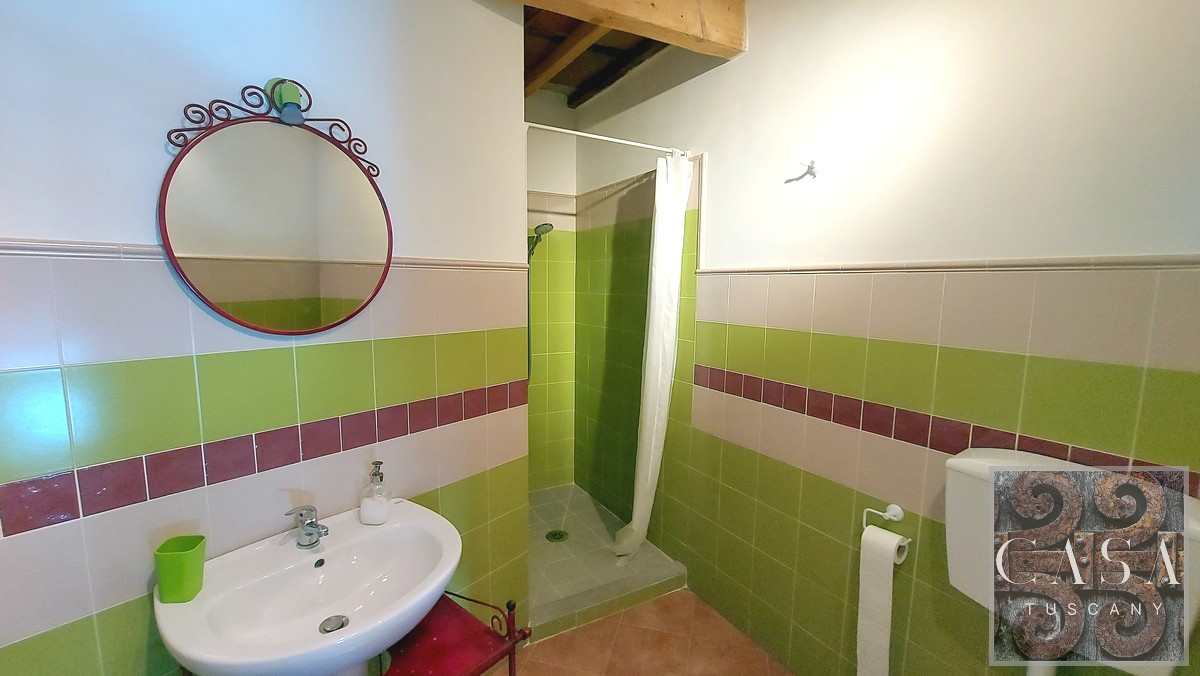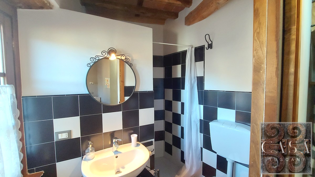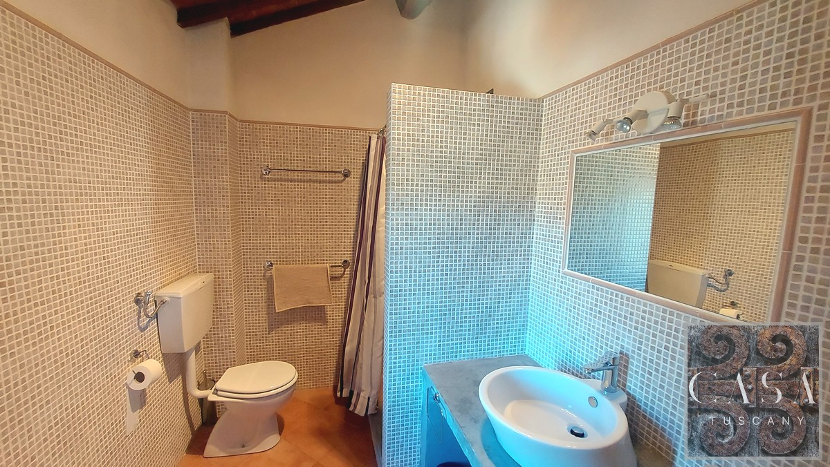 The house was renovated in 2015 using high-quality materials, preserving many original features of the traditional Tuscan style, such as terracotta floors, chestnut wood beams, mezzanine ceilings and stone decorations. The window frames are made of chestnut wood with double glazing and the staircases are in stone.