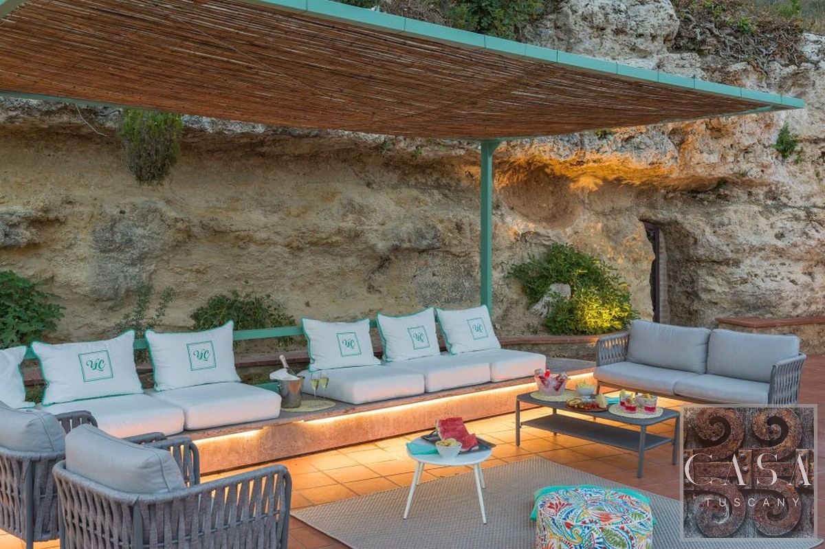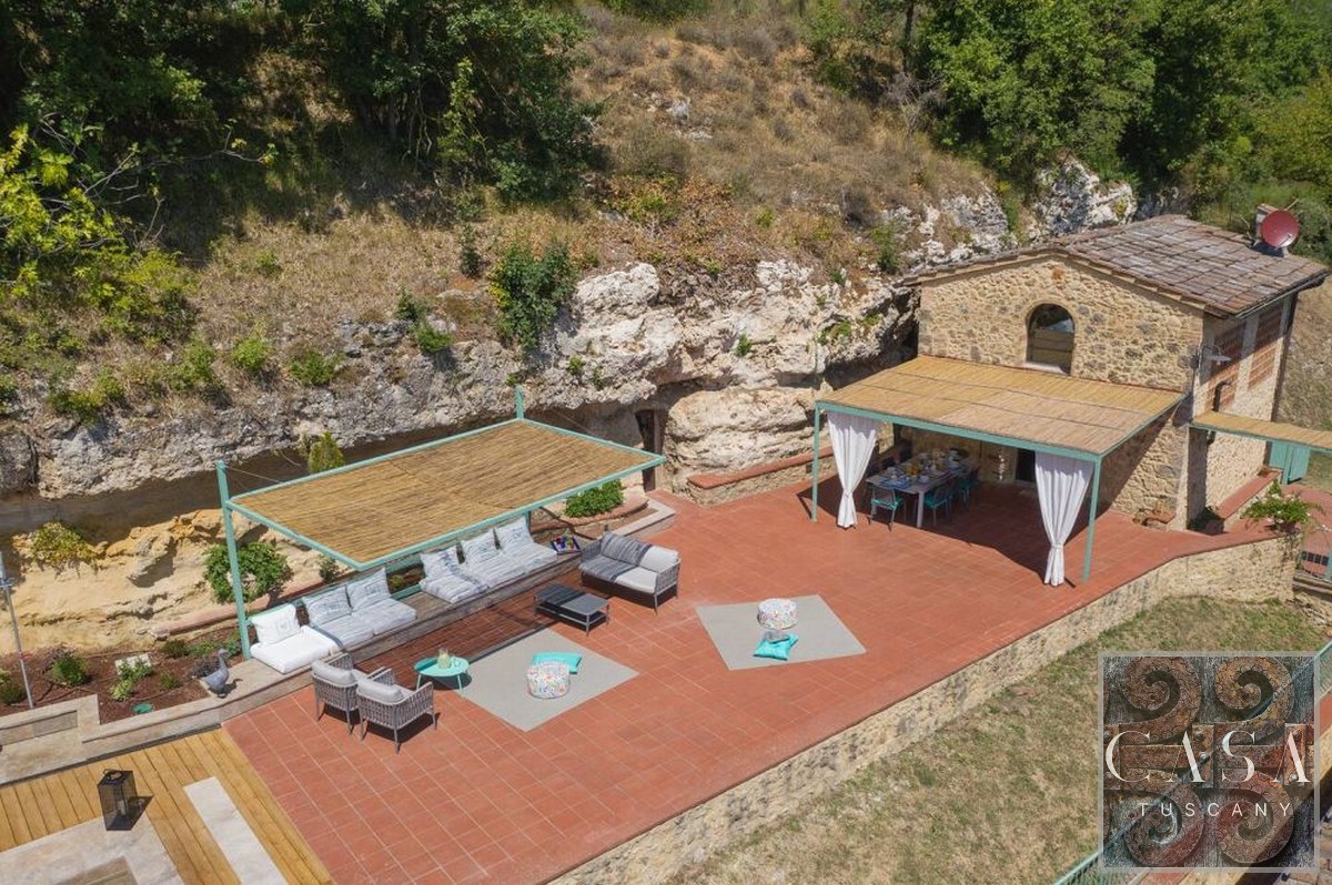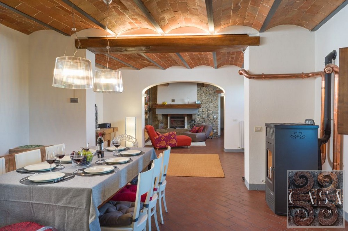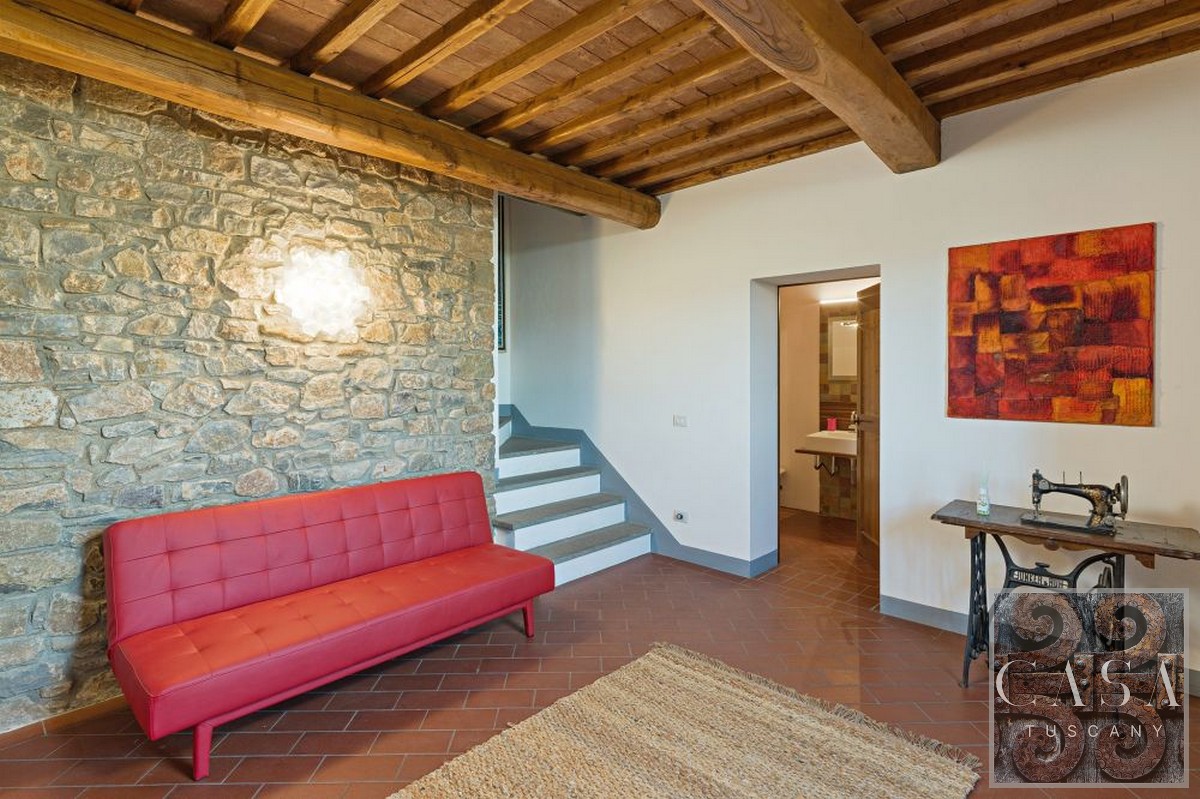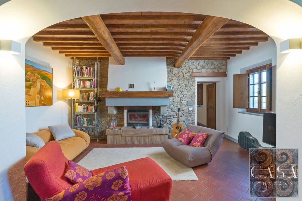 The buildings, which have an area of about 320 sqm, have undergone several renovations over the years, between 1997 and 1999 and in 2019, without altering the typical construction characteristics of old Tuscan houses, such as stone exterior, terracotta floors, and ceilings with vaults and chestnut wood beams.