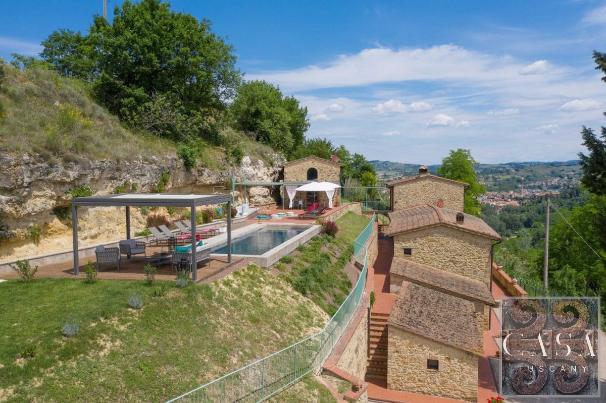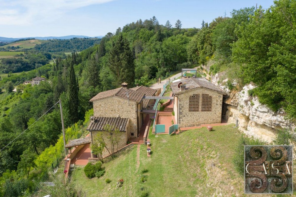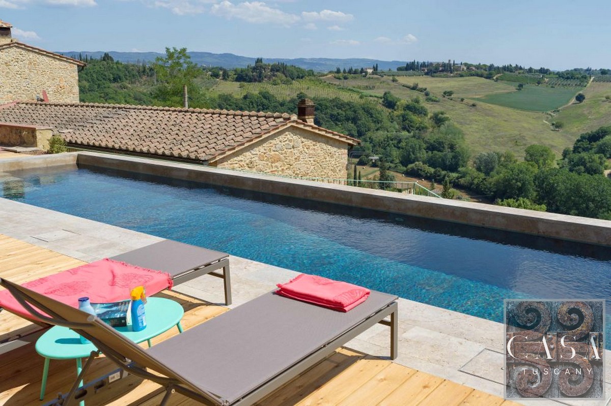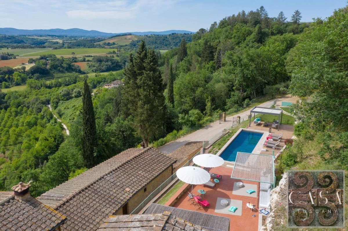 The property is located in the municipality of Poggibonsi, in the province of Siena, between the cities of Siena (about 25 km) and Florence (about 39 km). The villa is an exceptional starting point for exploring all of Tuscany, in fact, from here it is easy to reach its characteristic medieval villages, the splendid beaches of the coast (about 80 km) and the ski resorts of Monte Abetone (about 130 km). Pisa international airport is about 88 km away and Florence airport is about 54 km. The nearby town of Poggibonsi, which is 2 km away, offers all the services and shops you may need, including a bus station and a train station, many supermarkets, banks, a post office, and various types of restaurants, shops, cinema/theatre etc. San Gimignano, a UNESCO site since 1990, is only about 11 km away.