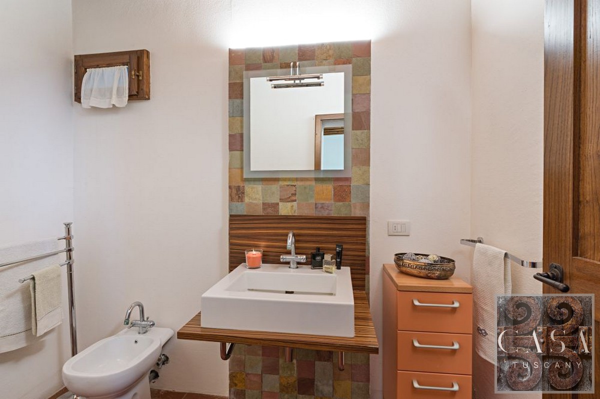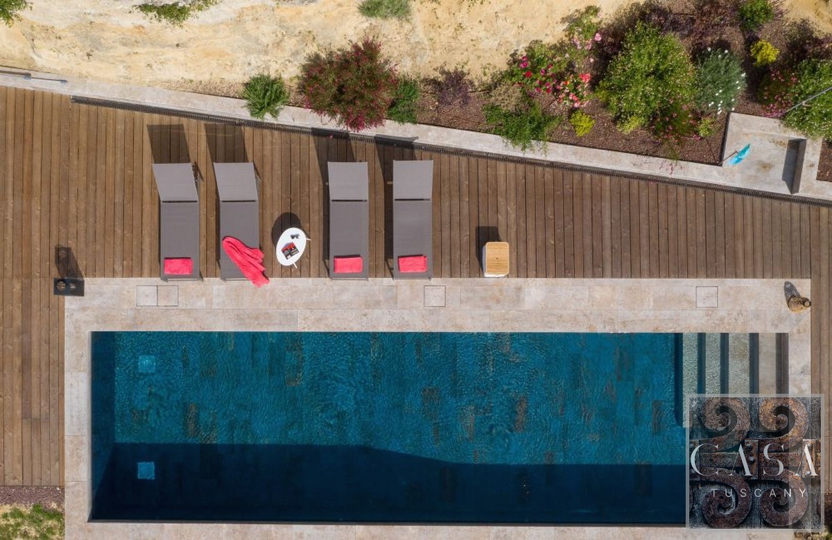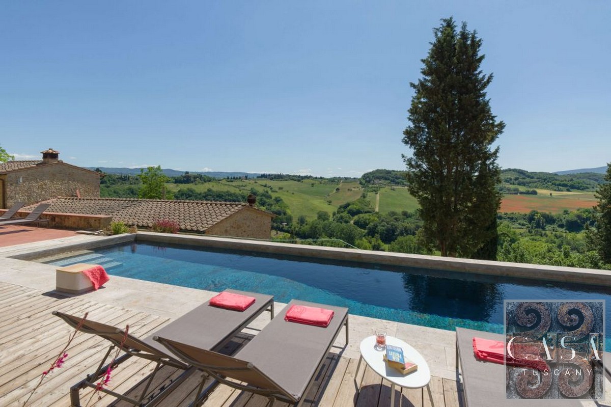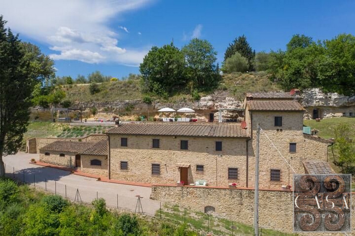 The property is located in the municipality of Poggibonsi, in the province of Siena, between the cities of Siena (about 25 km) and Florence (about 39 km). The villa is an exceptional starting point for exploring all of Tuscany, in fact, from here it is easy to reach its characteristic medieval villages, the splendid beaches of the coast (about 80 km) and the ski resorts of Monte Abetone (about 130 km). Pisa international airport is about 88 km away and Florence airport is about 54 km. The nearby town of Poggibonsi, which is 2 km away, offers all the services and shops you may need, including a bus station and a train station, many supermarkets, banks, a post office, and various types of restaurants, shops, cinema/theatre etc. San Gimignano, a UNESCO site since 1990, is only about 11 km away.