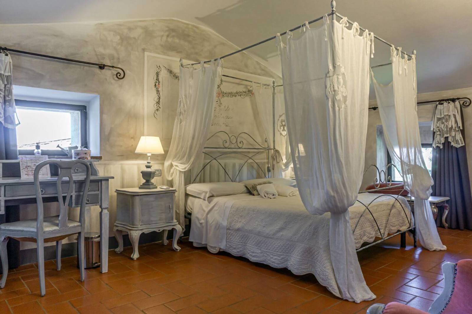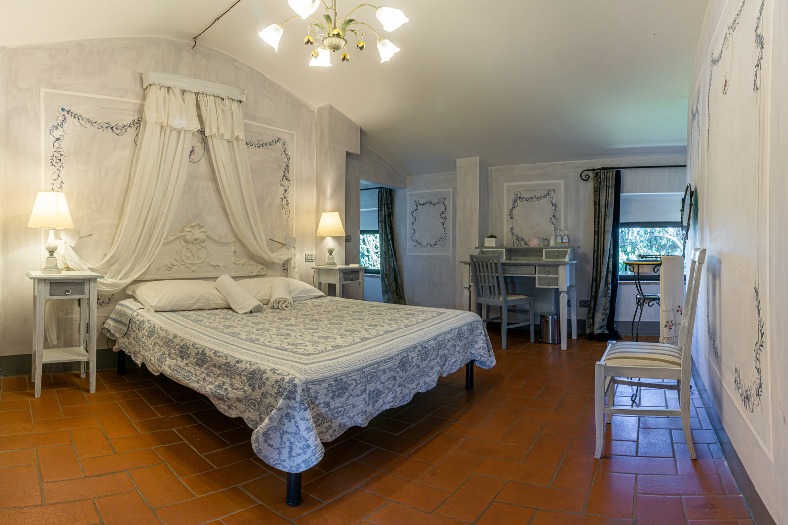 The farmhouse is in perfect condition, with fine finishes and furnishings which reflect typical Tuscan rustic style, such as terracotta floors, brick arches and ceilings with exposed wooden beams. A part of the main house needs some improvement works and a redistribution of the layout can be designed.