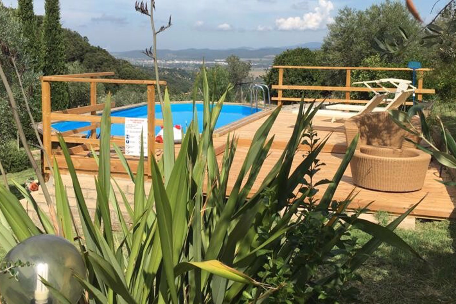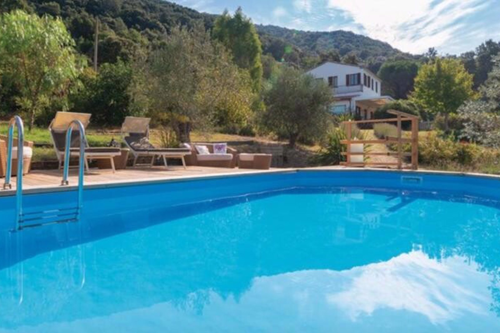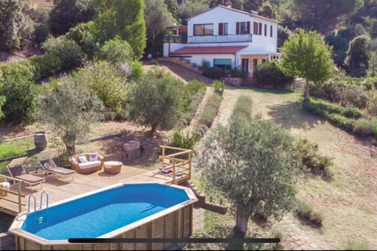 Equipped with an electric gate, the first part of the garden has a wooden garage that houses 4 parking spaces. The villa is surrounded by a beautiful garden of about 5000 square metres with a large veranda, perfect for alfresco dining and an above ground pool lined with wood and solarium. Completing the property is 2.5 hectares of land consisting of forest and olive grove all fenced.