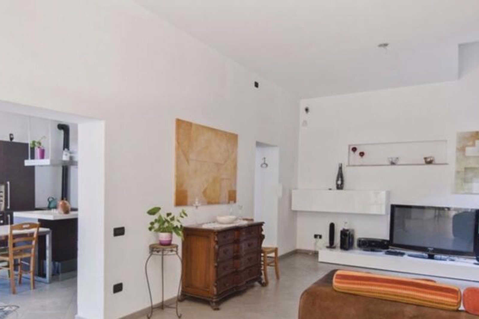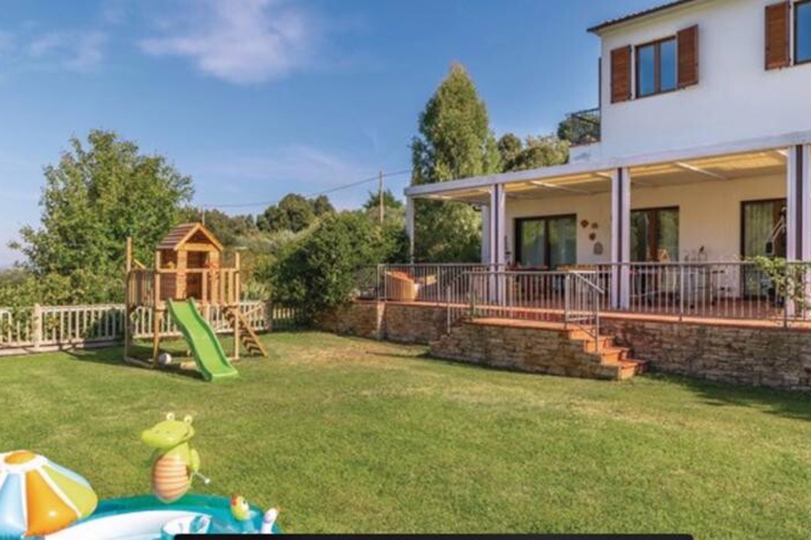 Easily accessible via a private road surrounded by greenery, the patronal villa is arranged over 3 levels, one of which is a basement. The ground floor comprises a large living room with a large designer thermo-fireplace and wine cellar characterising the room. The kitchen enjoys a panoramic view that extends across both countryside and sea. From a small room used as a hallway and pantry there is access to the staircase leading to the basement, where there is a bathroom, 2 showers, a bedroom and another room, currently covered with parquet and used as a second living room and a large garage.