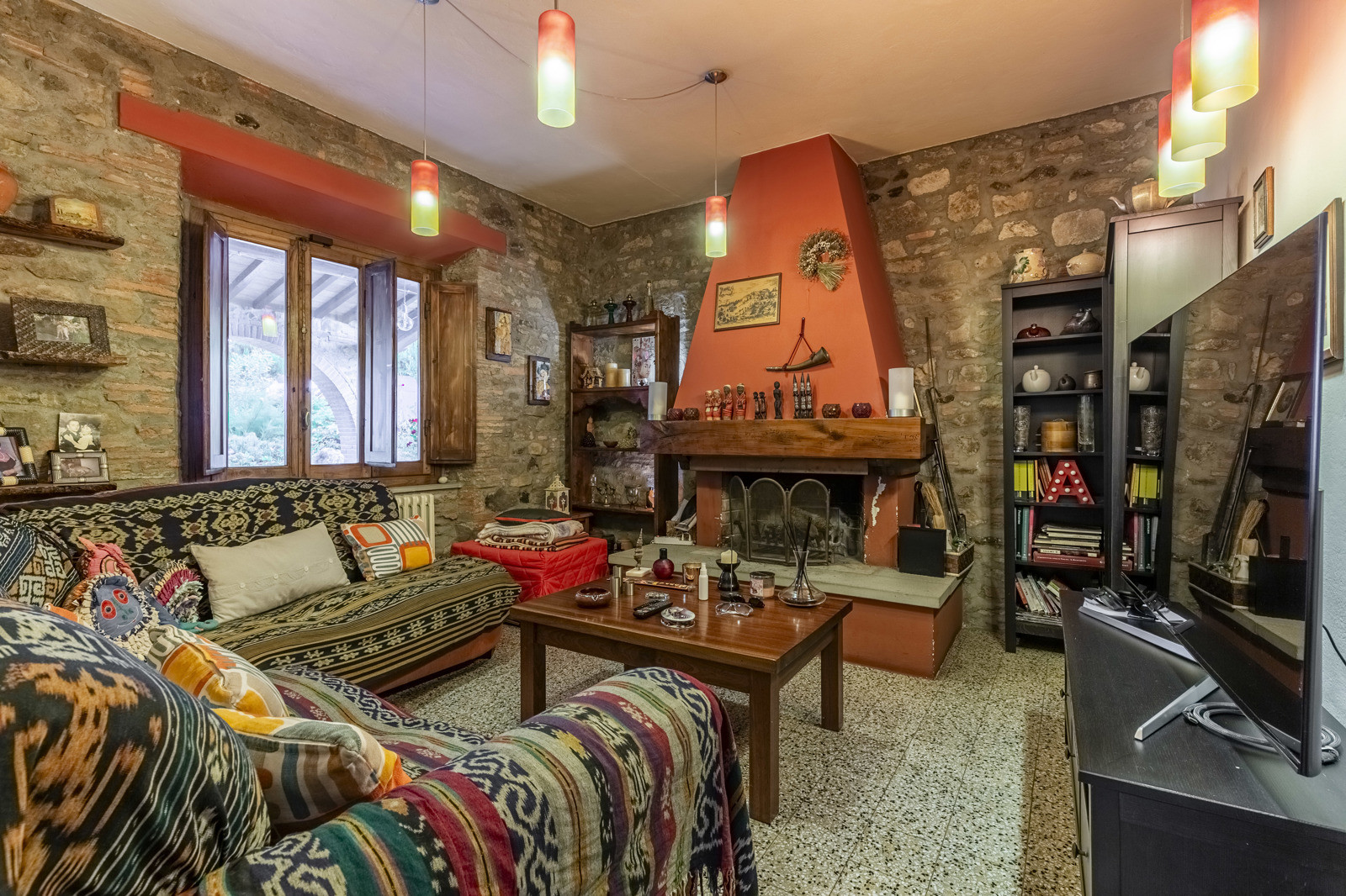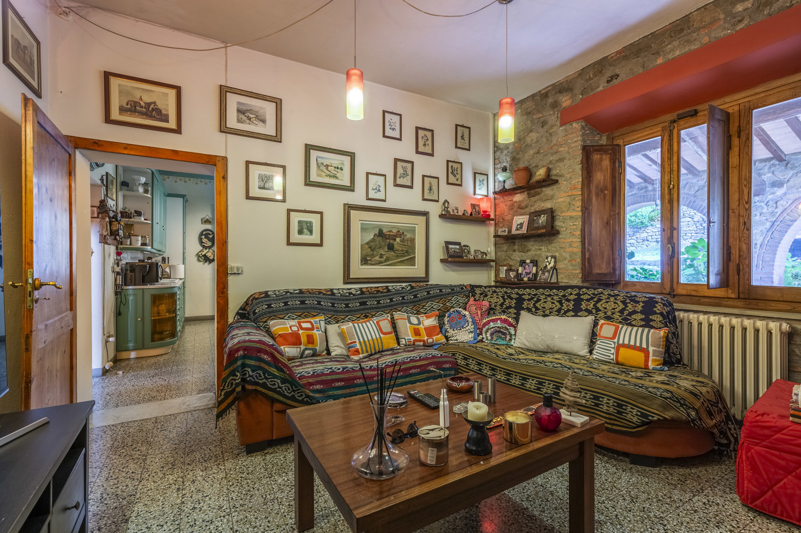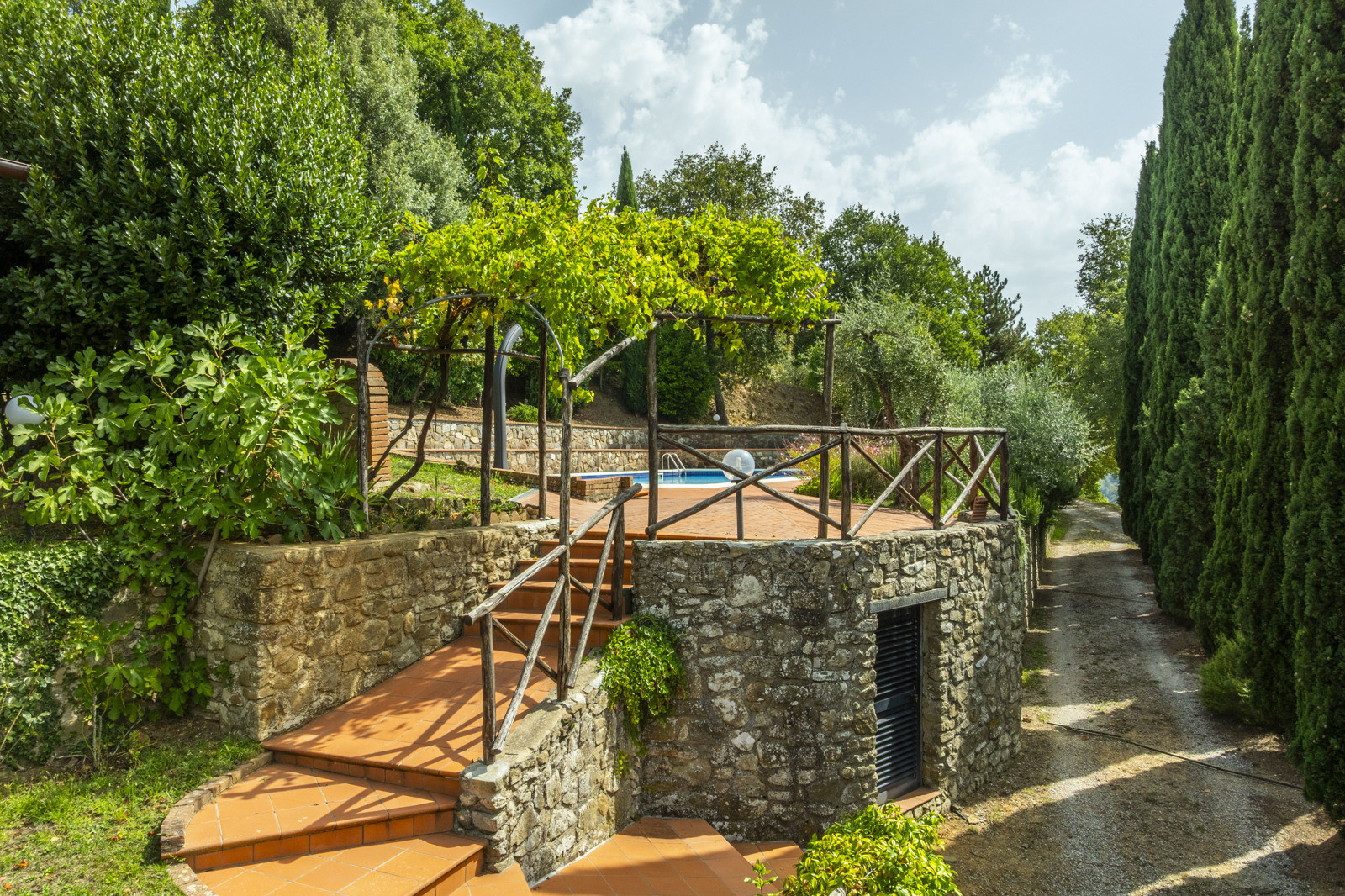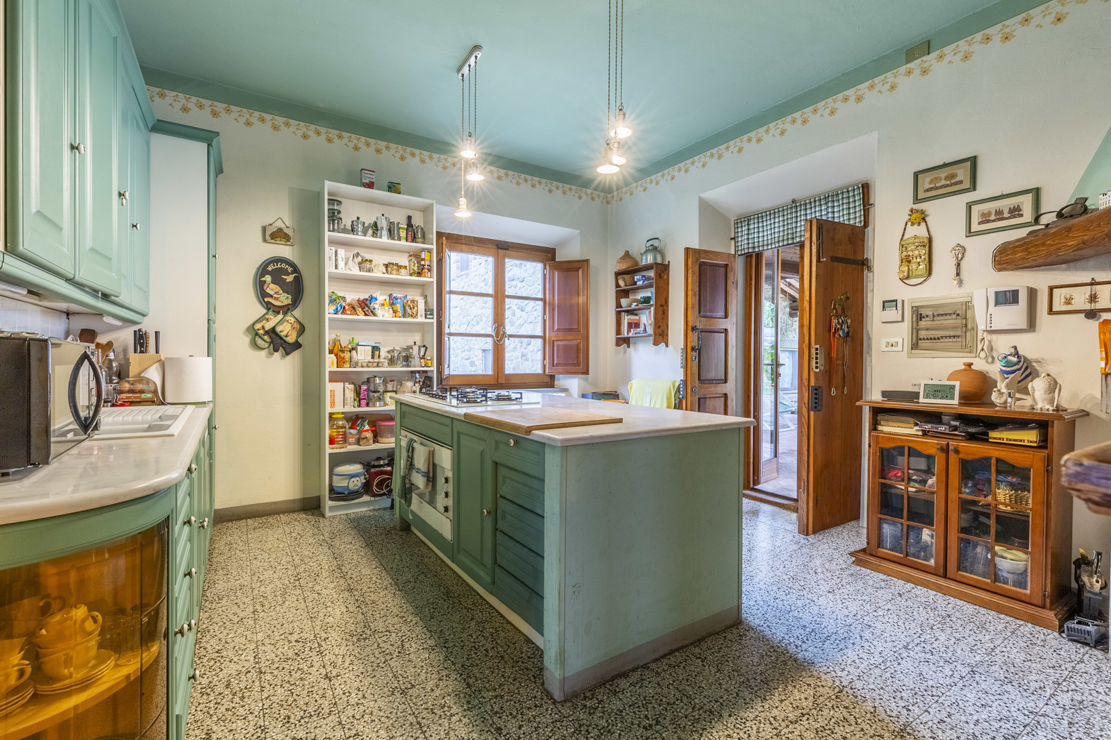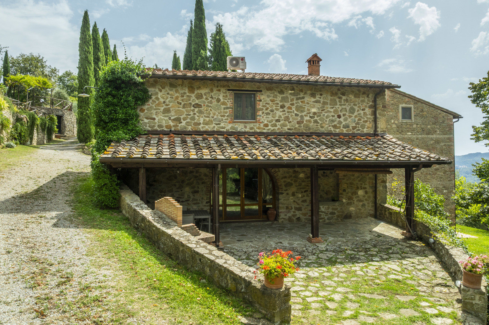 The farmhouse is in good condition and retains the typical details of Tuscan style: exposed stone walls, terracotta floors, beamed ceilings, and traditional windows. These elements give the spaces a rustic and authentic charm, whilst comfort is assured by central heating.