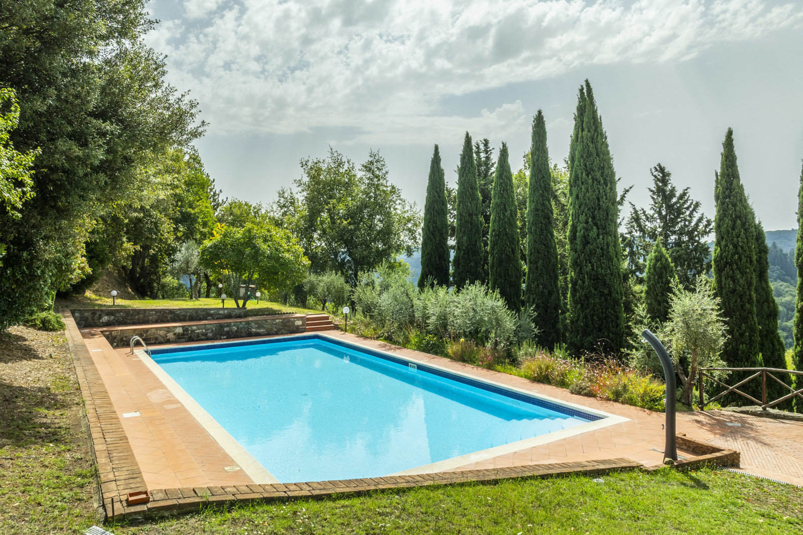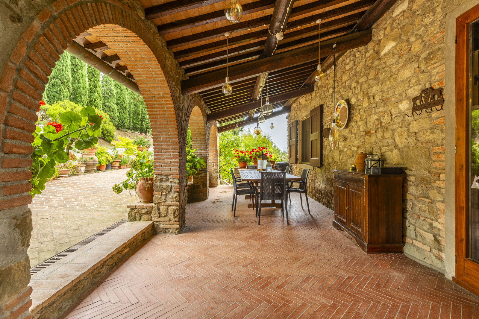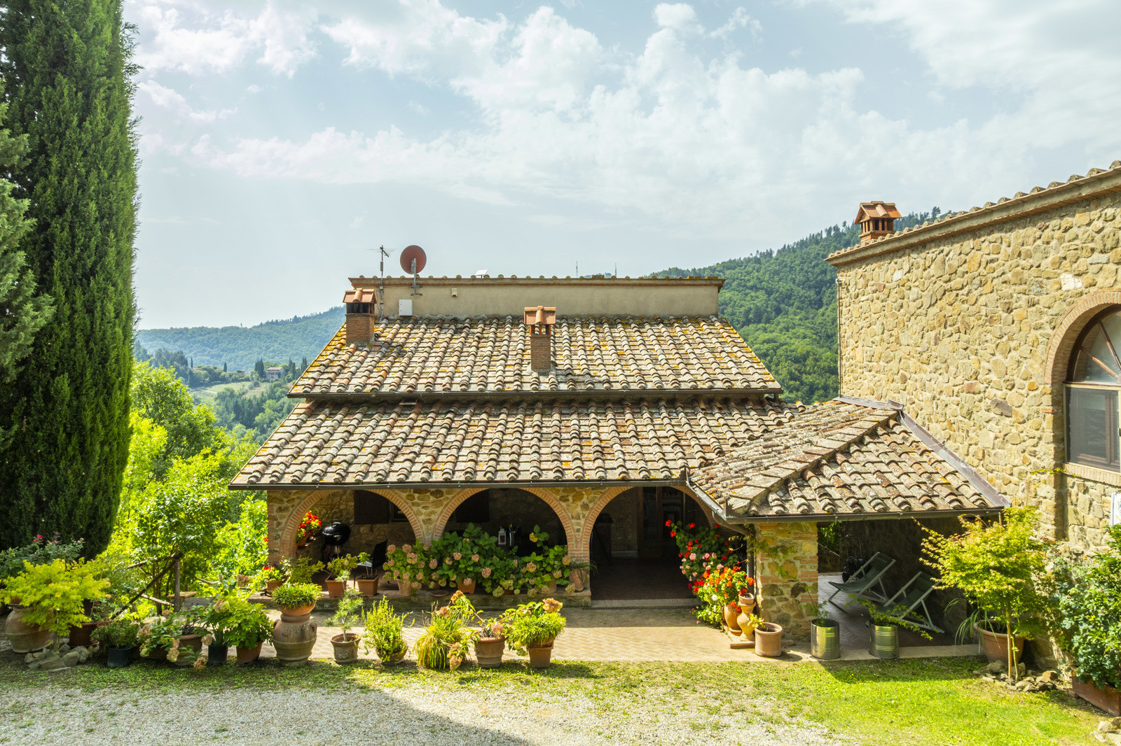 The property has a well-maintained garden, a panoramic swimming pool overlooking the Chianti hills, and large terraced outdoor areas, perfect for enjoying outdoor life and Tuscan sunsets.