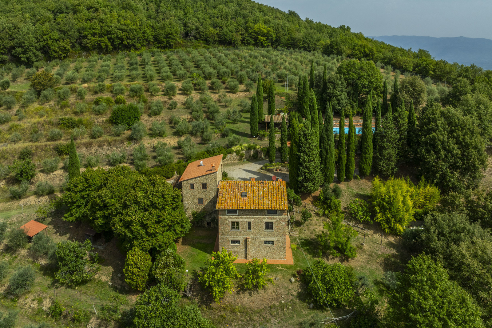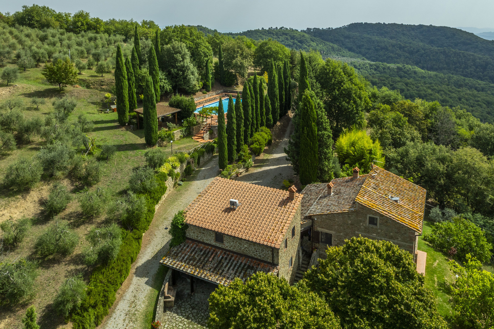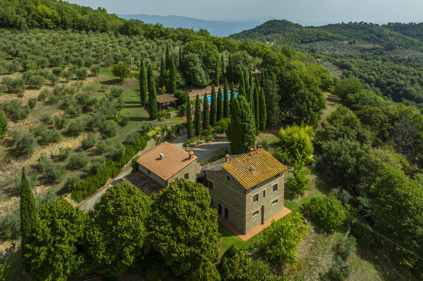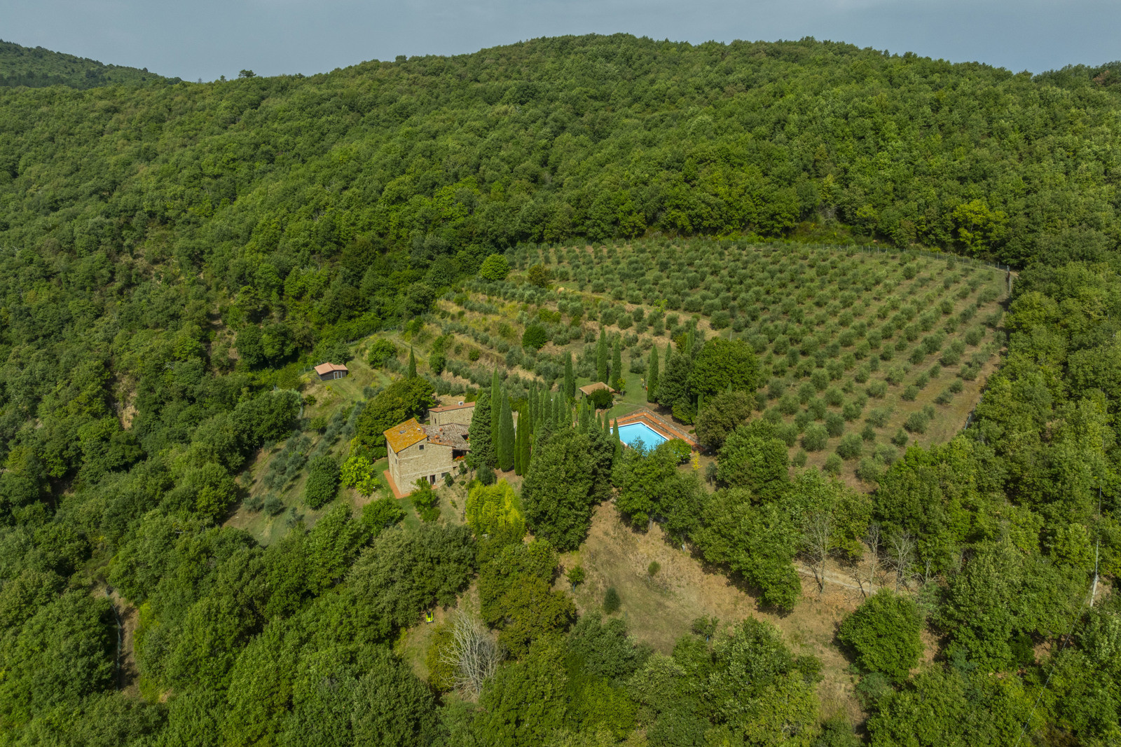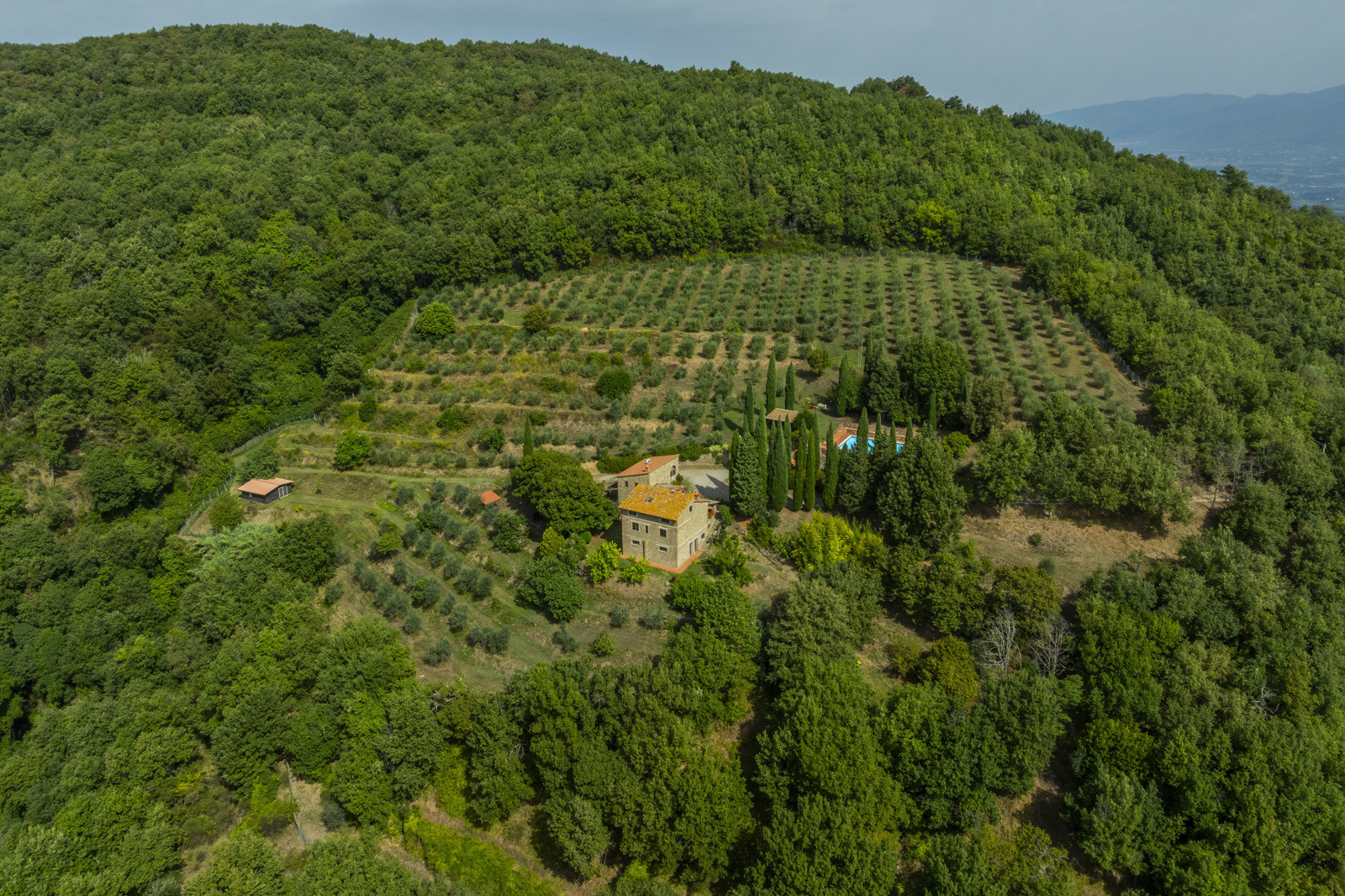 The farmhouse is surrounded by approximately 30 hectares of private land, with 900 olive trees in production.