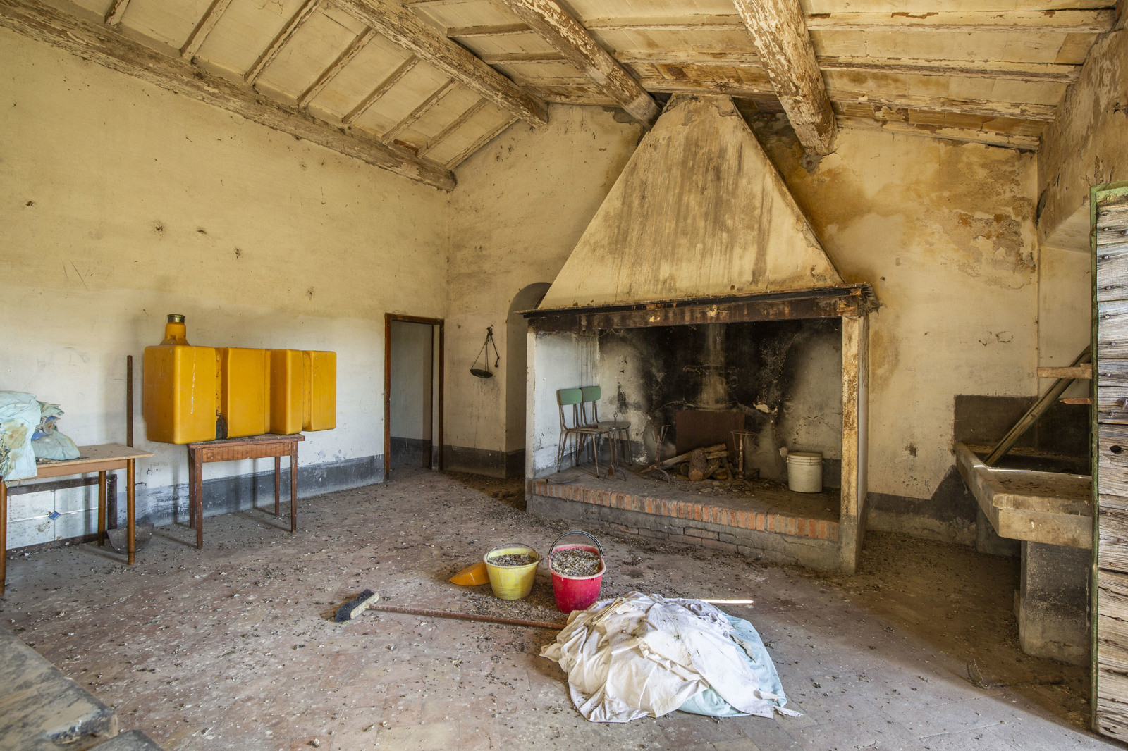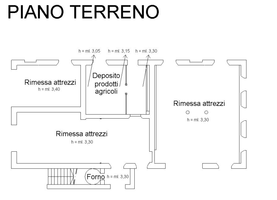 The main farmhouse is on two levels, and is one of the typical farmhouses in the area. It retains to this day the original form. On the ground floor there are storage rooms once used for agriculture, and on the first floor, accessed by an external staircase, there is a large kitchen with pantry, 5 bedrooms and a bathroom.