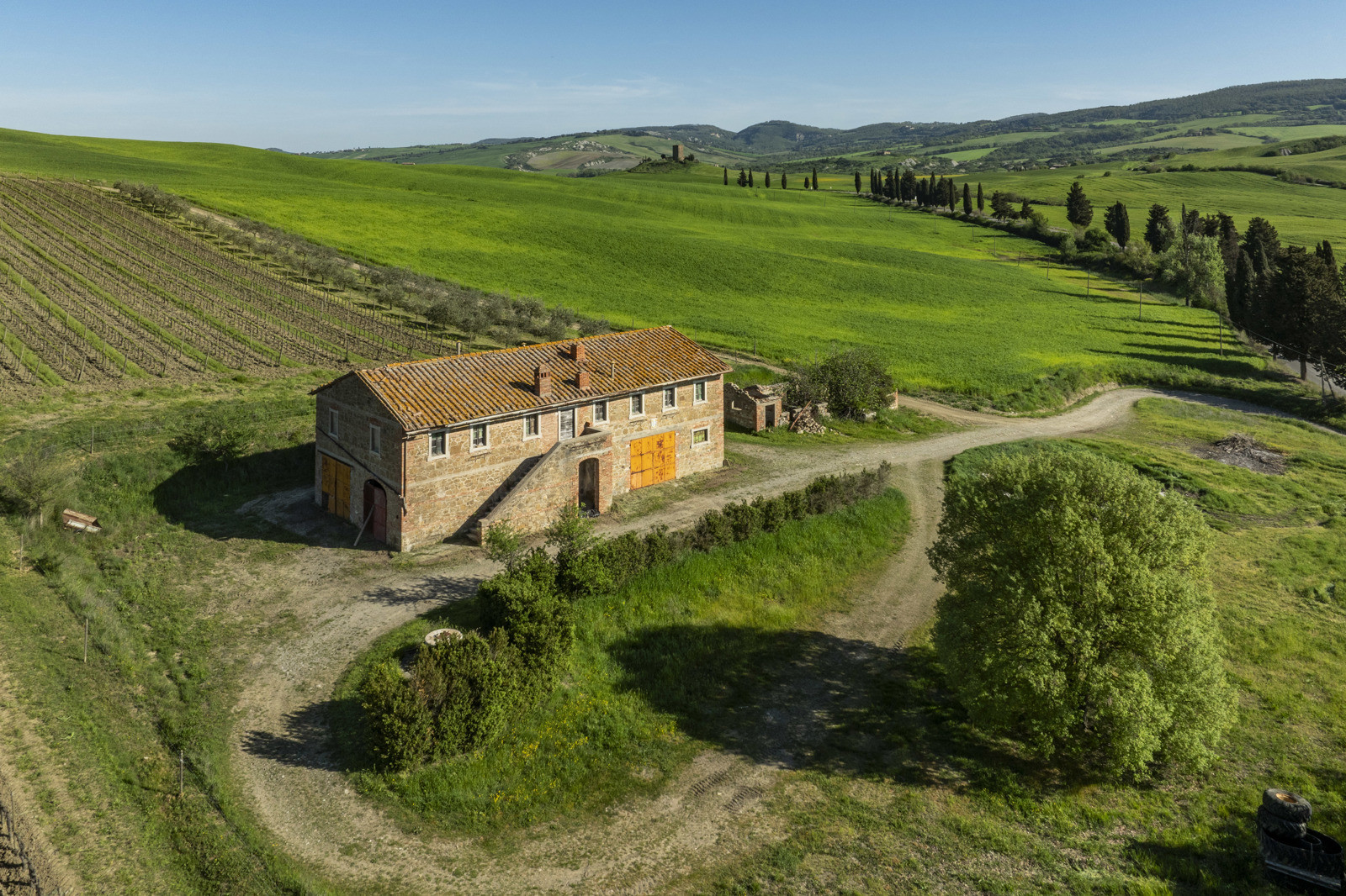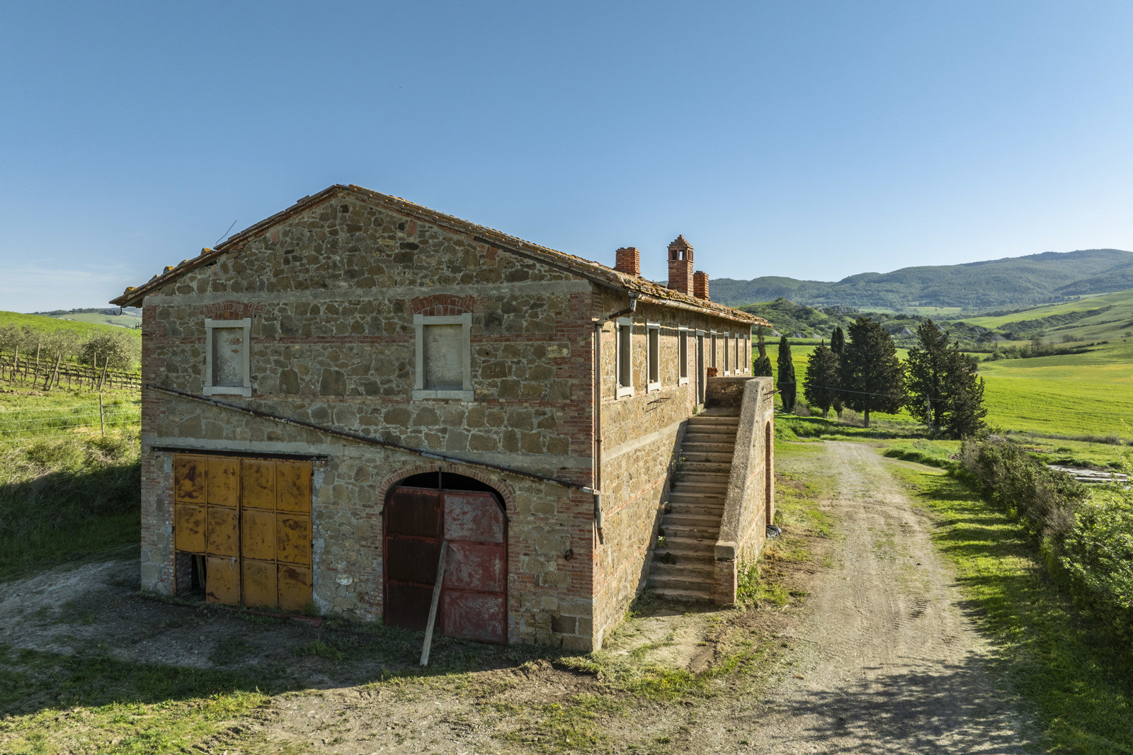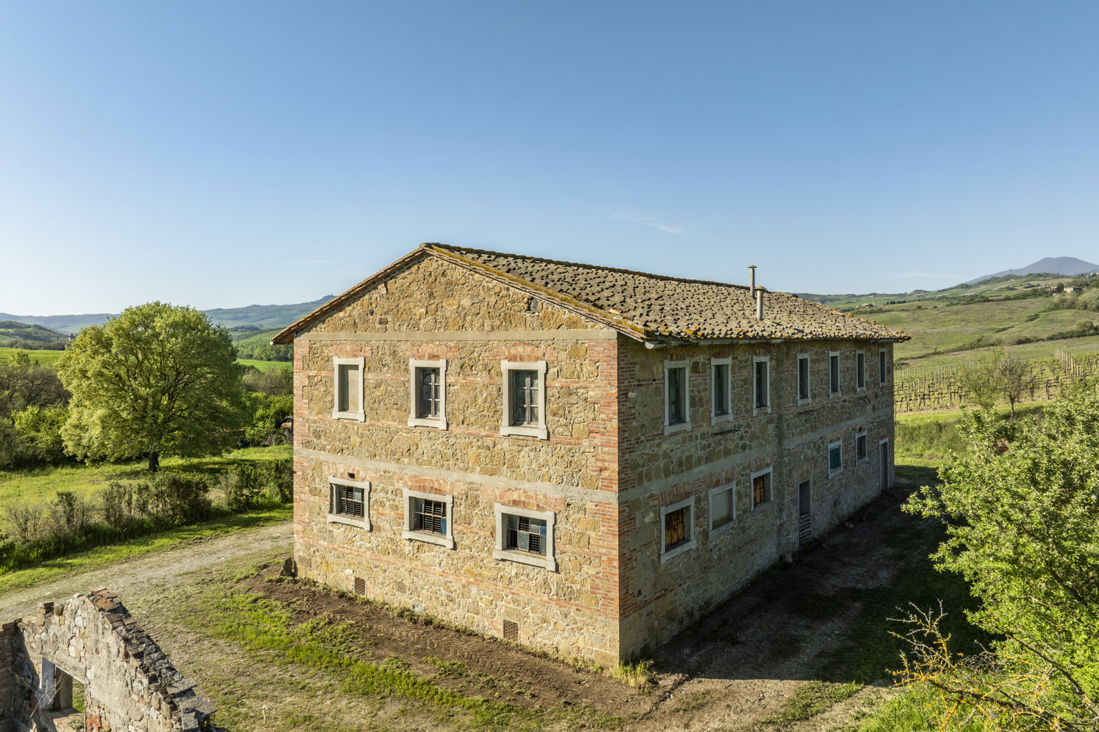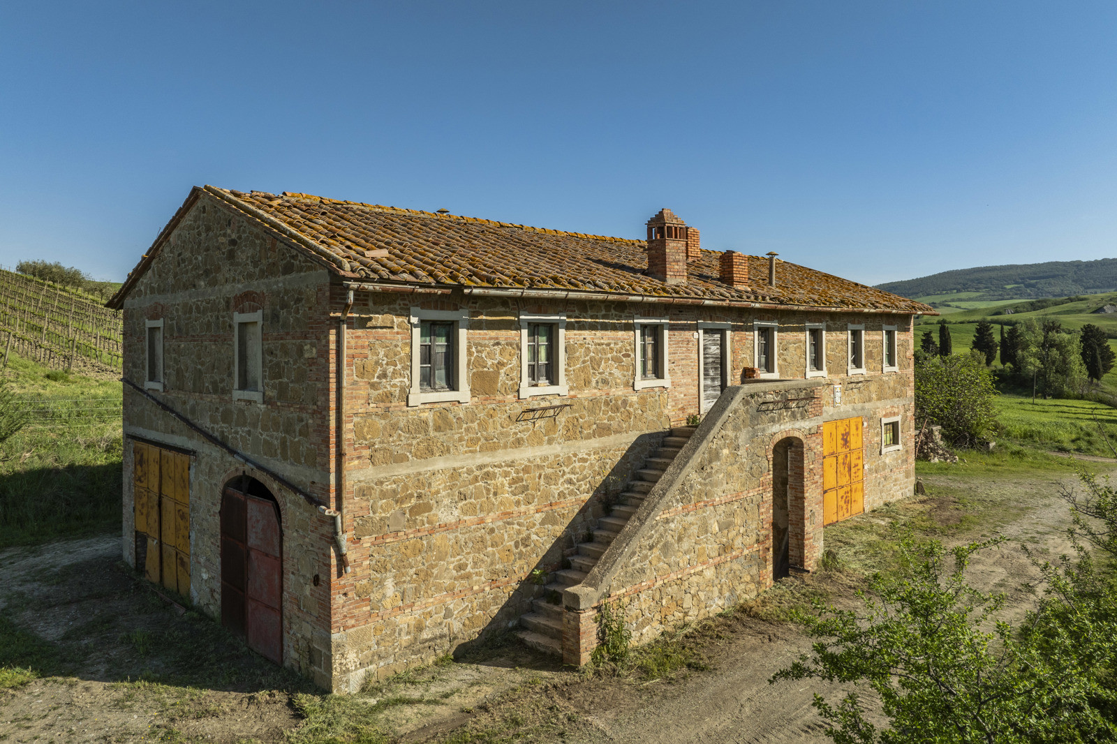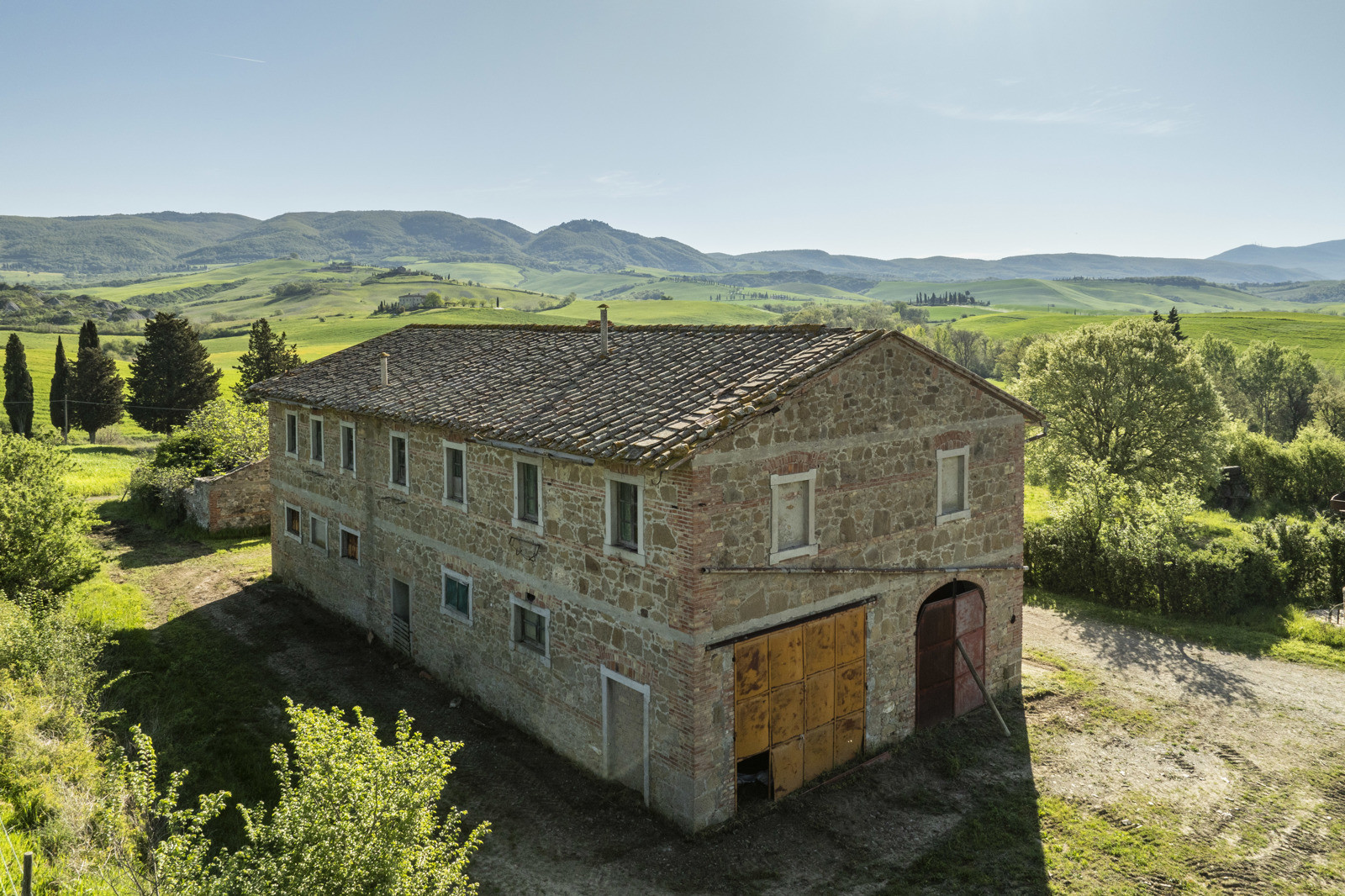 Stone farmhouse dating from the 1900s of about 550 sqm, to be restored, near Pienza, in the middle of the Val d’Orcia and with a large garden surrounding it. The property sits on a hill overlooking the Borgo di Contignano and Radicofani.