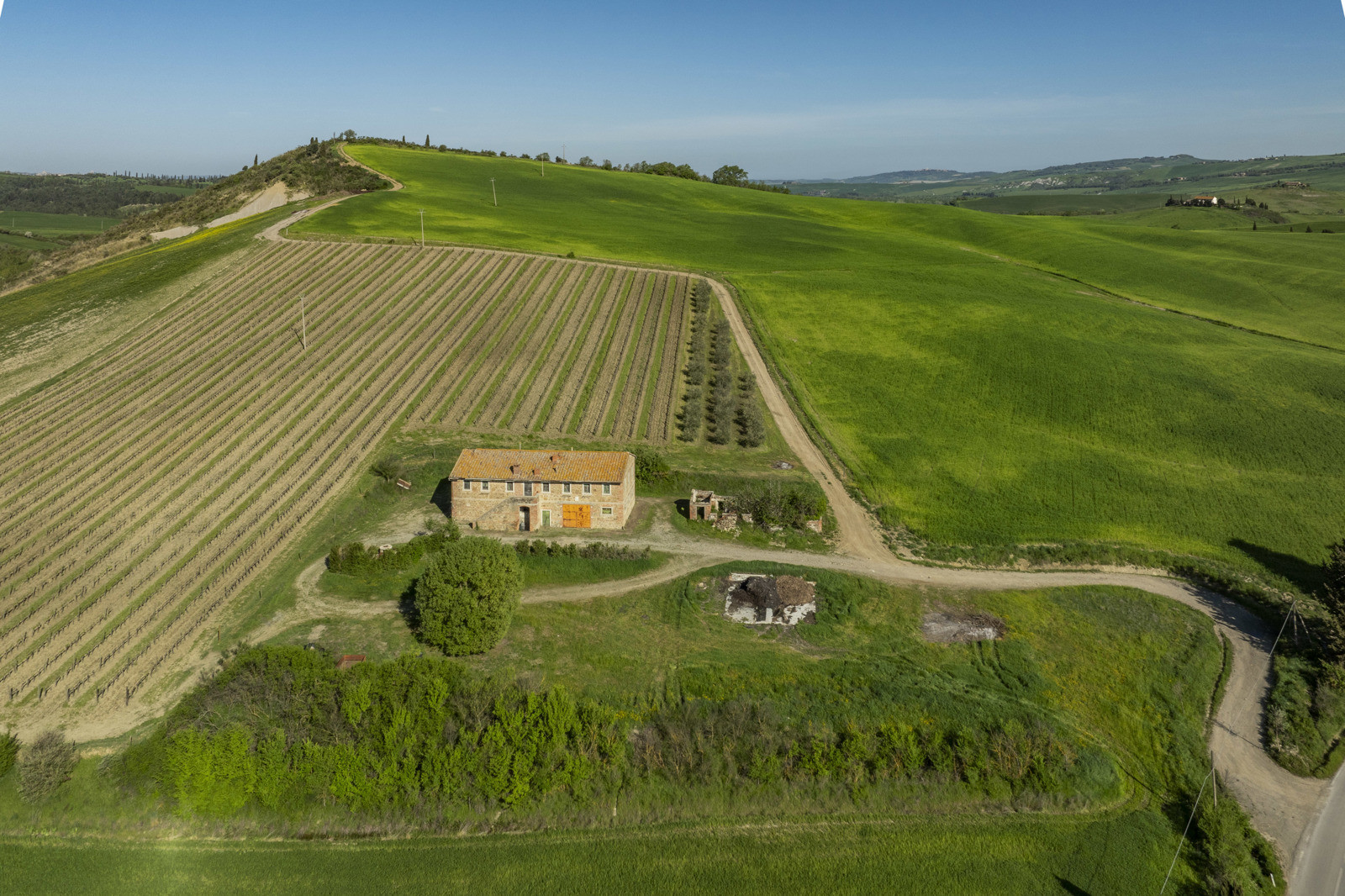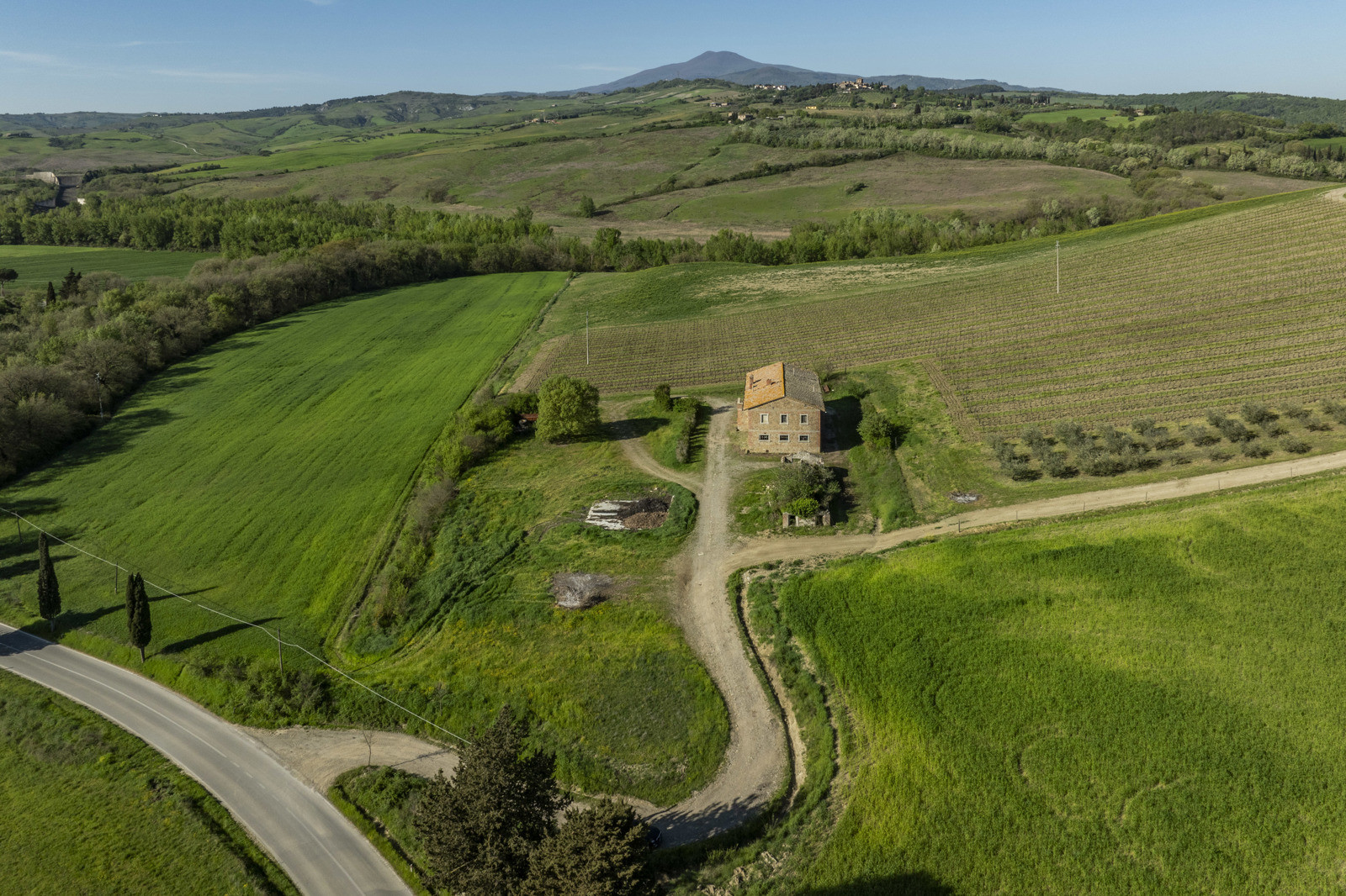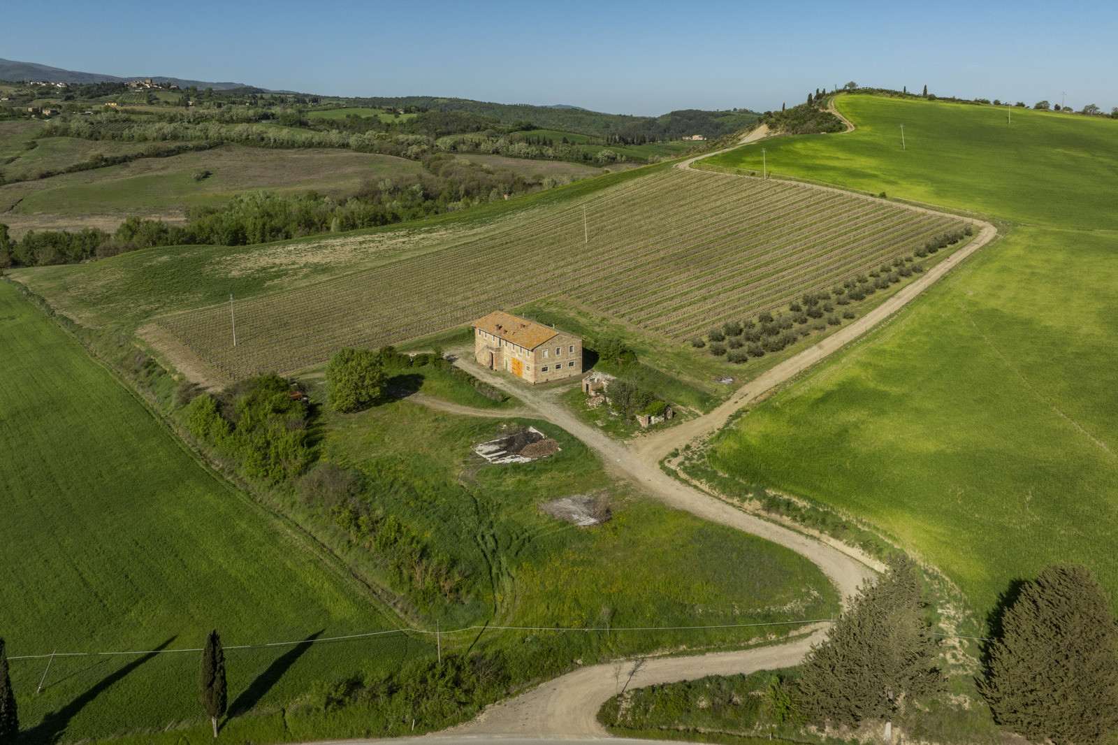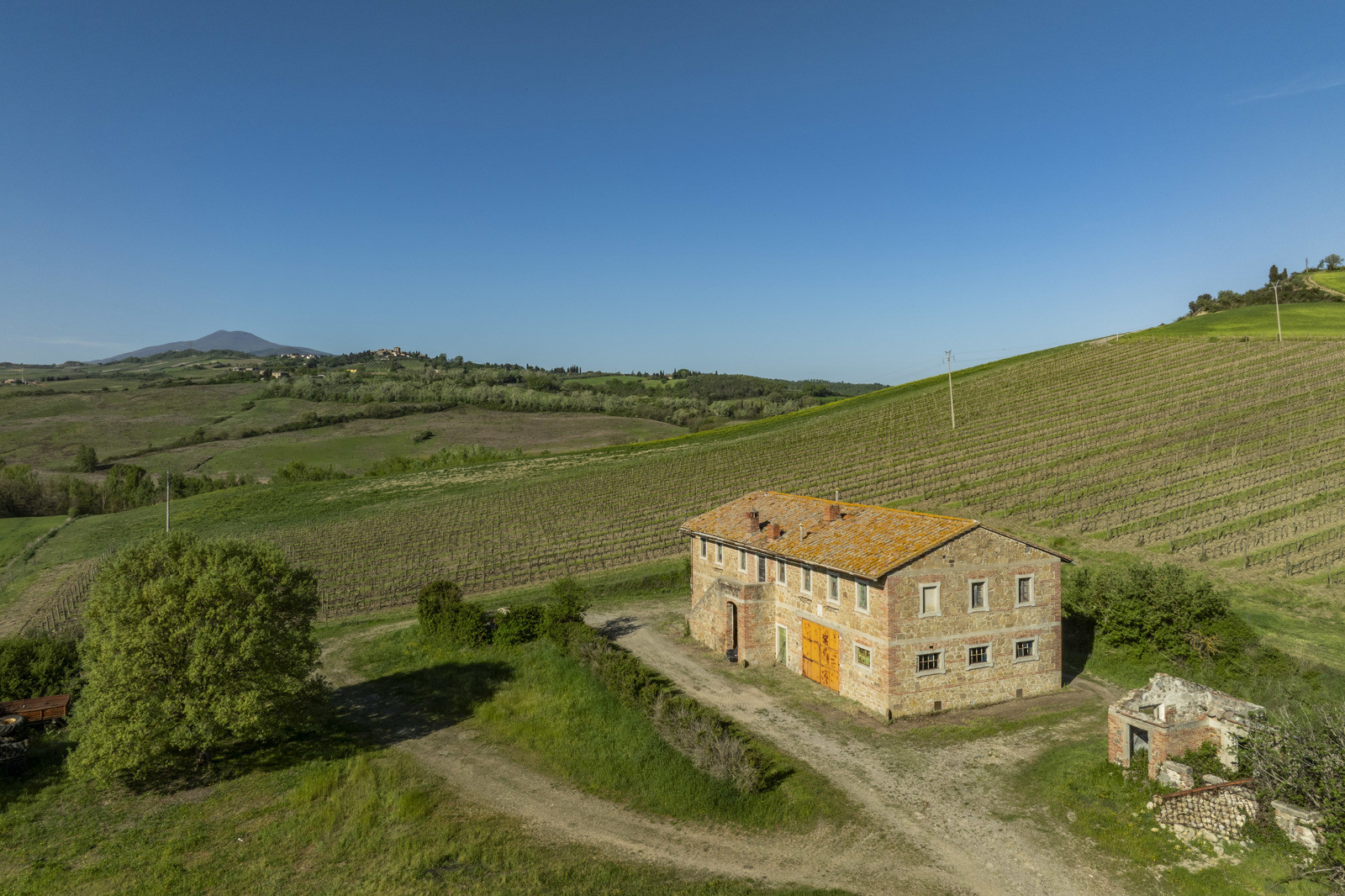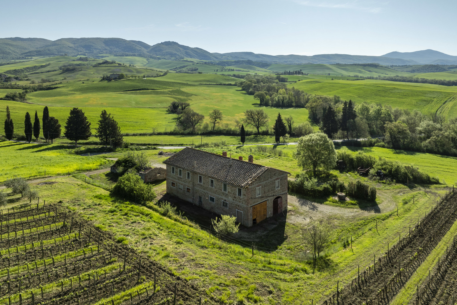 Stone farmhouse dating from the 1900s of about 550 sqm, to be restored, near Pienza, in the middle of the Val d’Orcia and with a large garden surrounding it. The property sits on a hill overlooking the Borgo di Contignano and Radicofani.