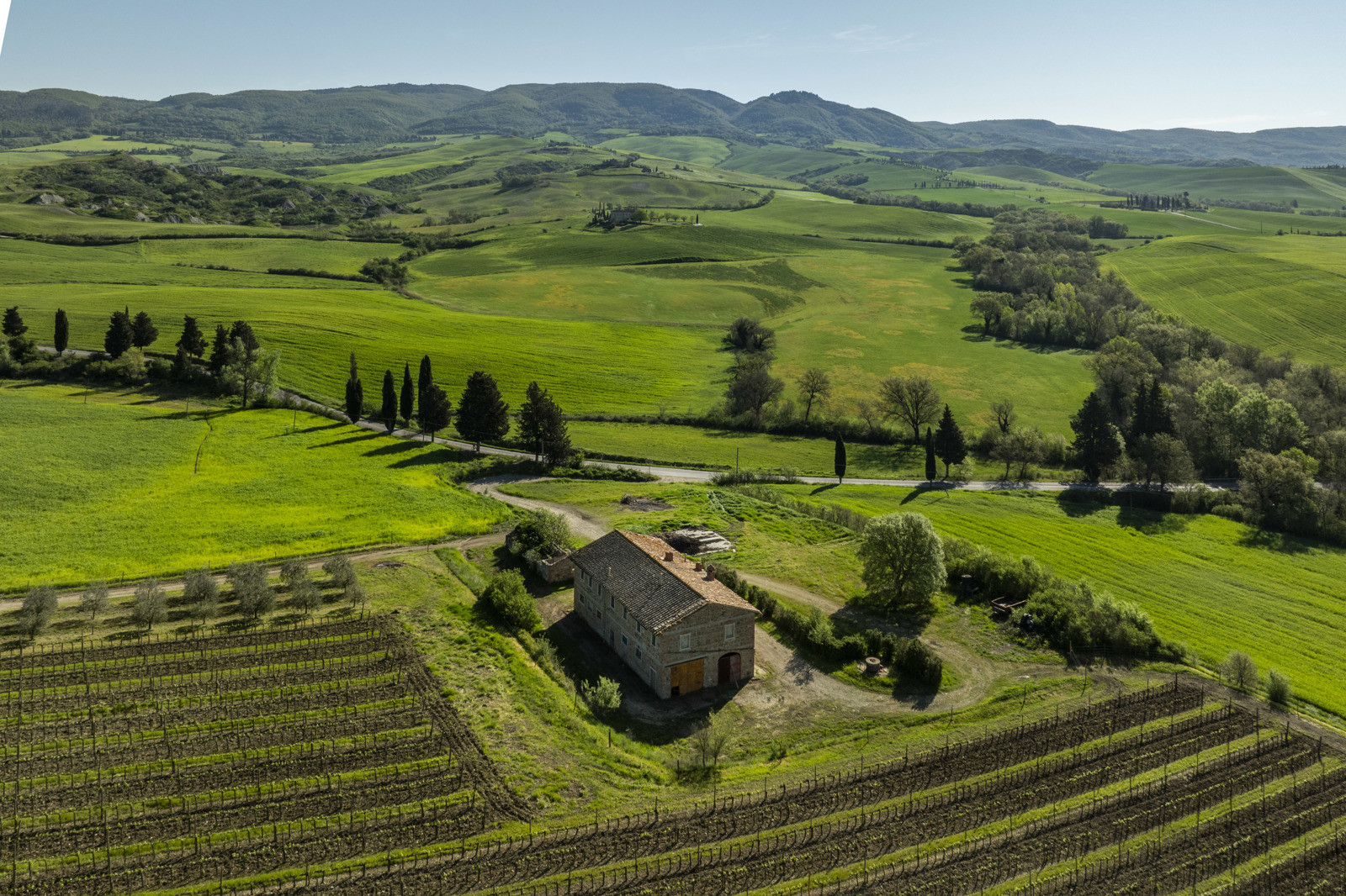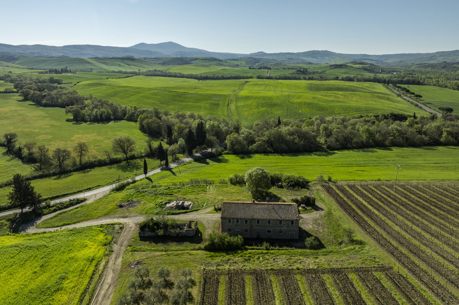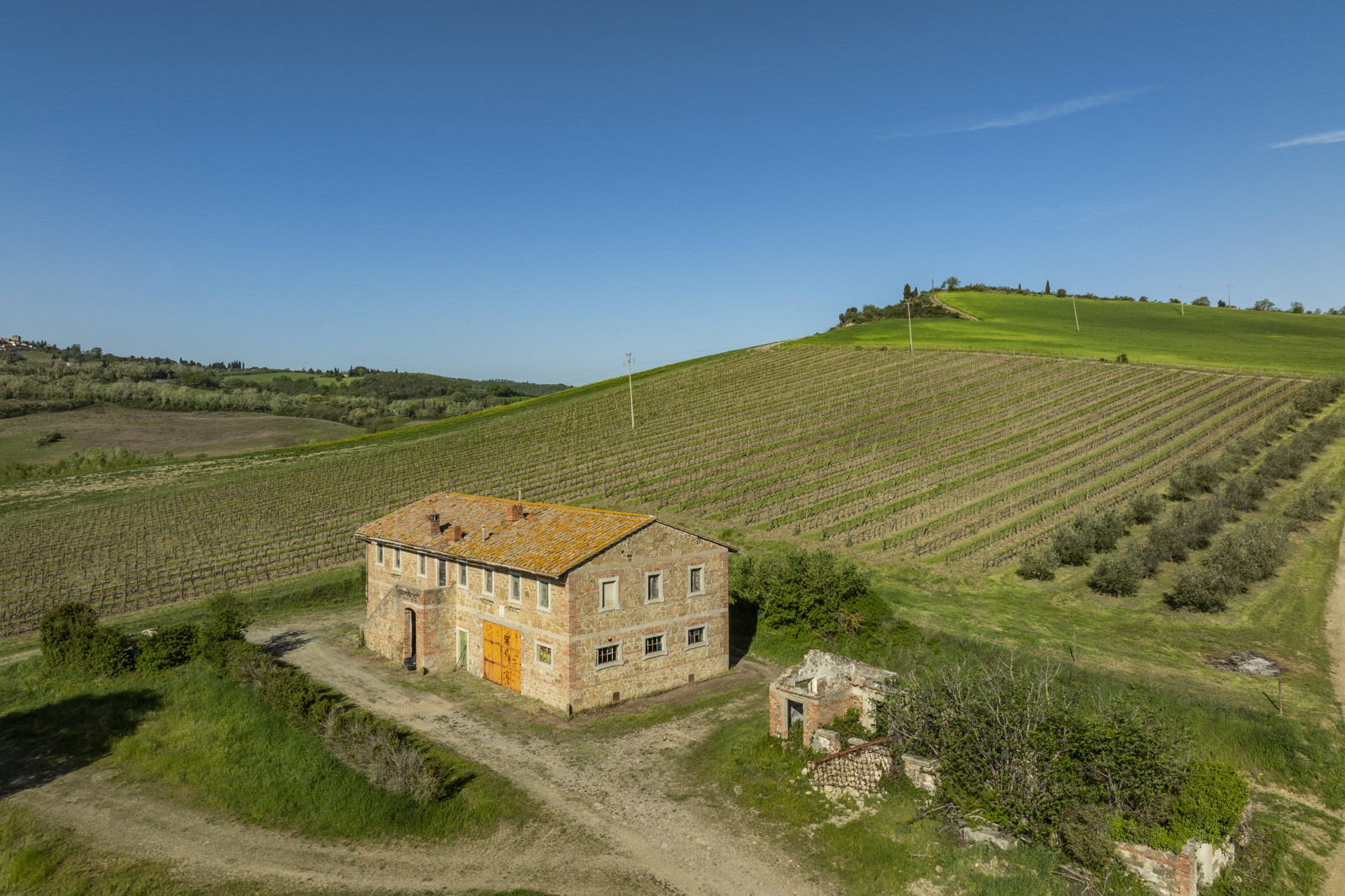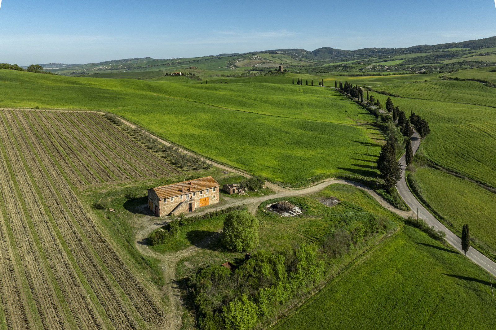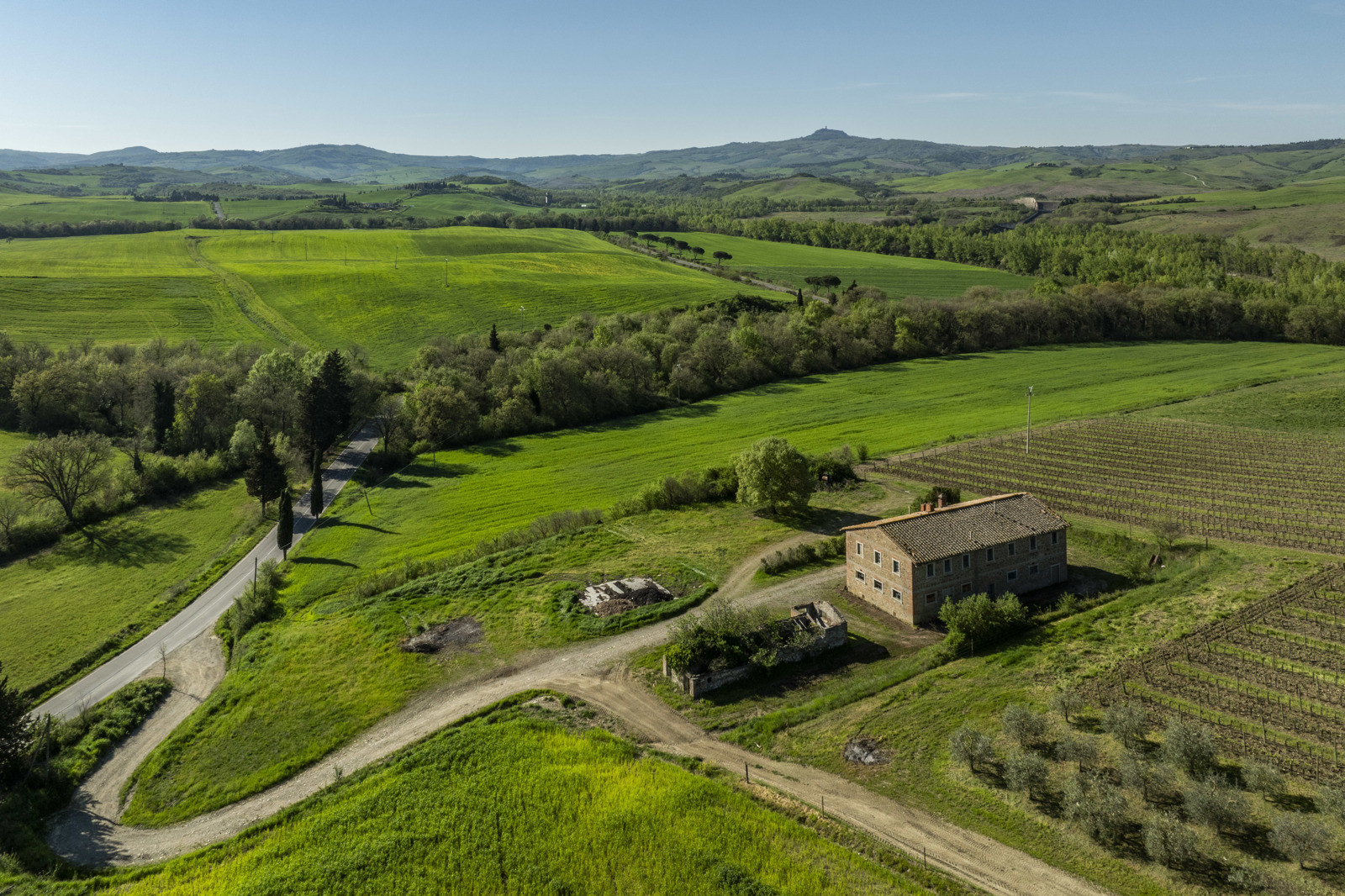 Stone farmhouse dating from the 1900s of about 550 sqm, to be restored, near Pienza, in the middle of the Val d’Orcia and with a large garden surrounding it. The property sits on a hill overlooking the Borgo di Contignano and Radicofani.