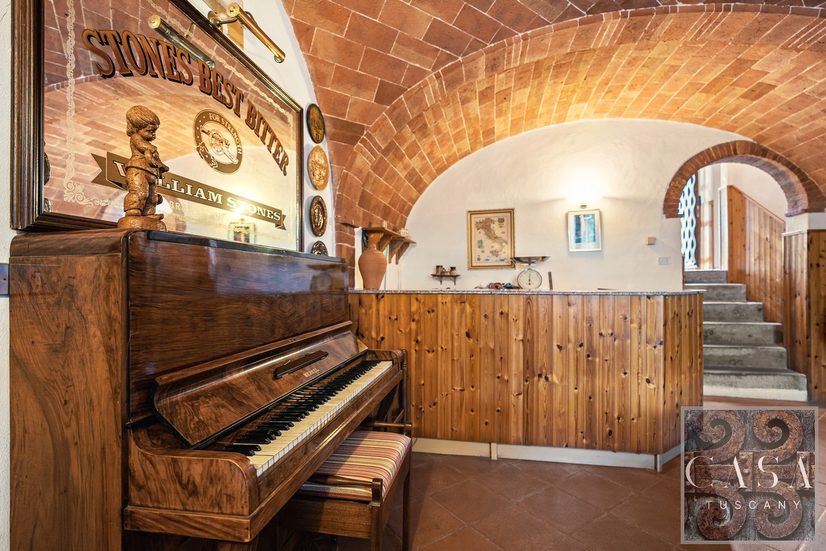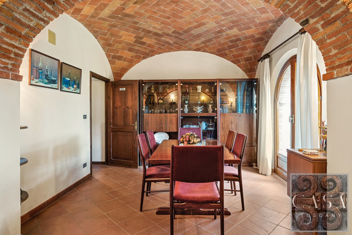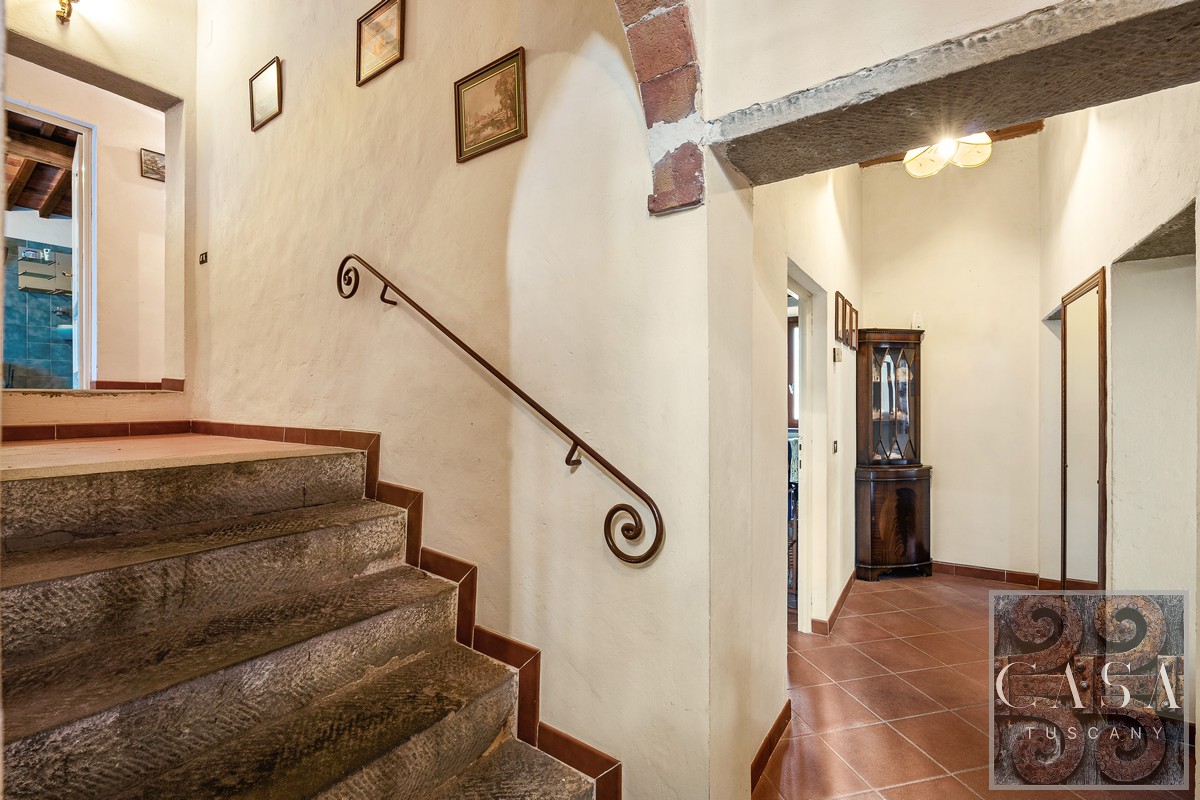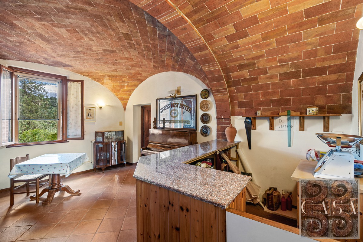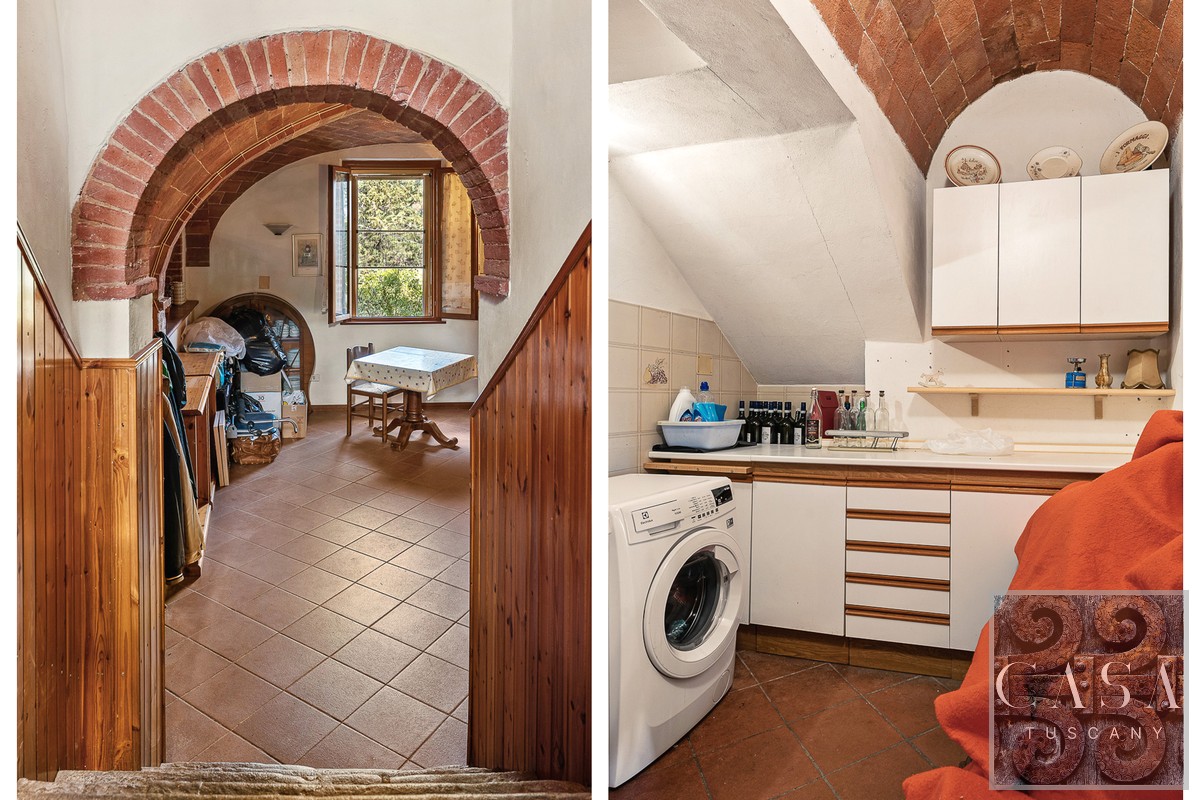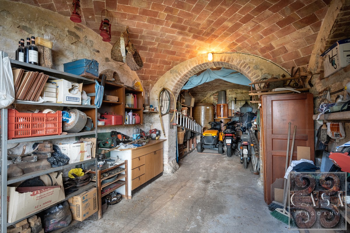 With separate entrances from the garden, the basement is a typical rustic cellar with vaulted ceilings and stone walls, now used for storage, but also perfect as a tavern and additional living area, and a second access to a storage room and a technical room.