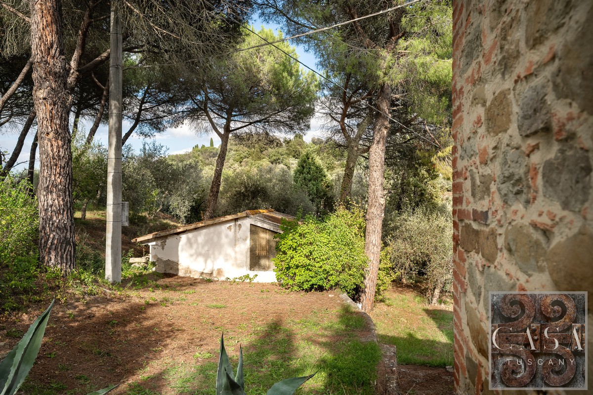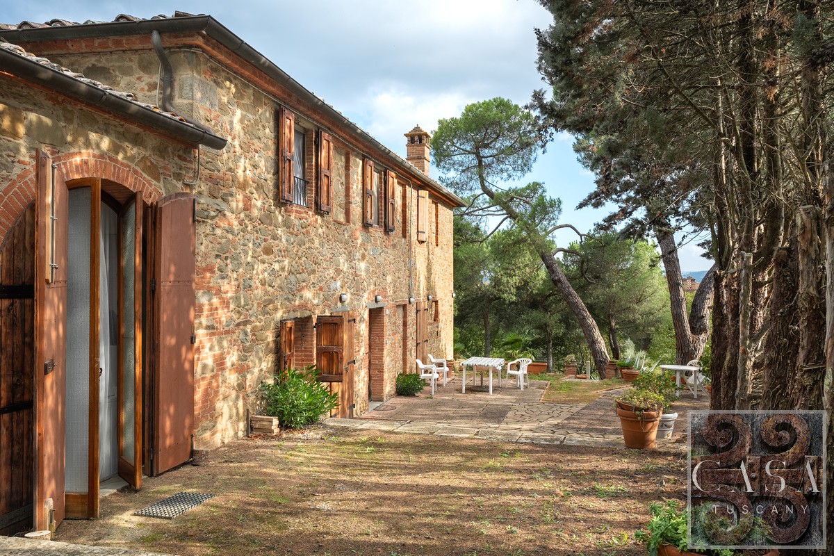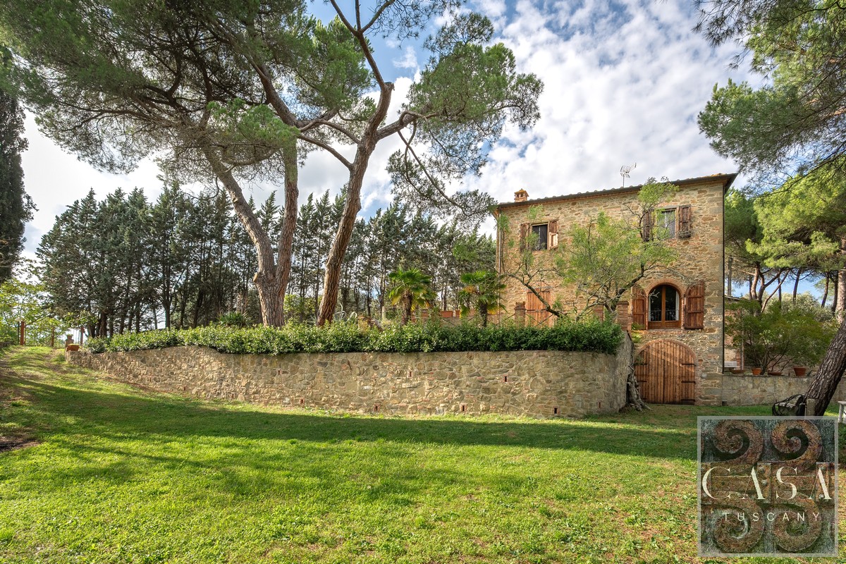 The classic stone country house with 4 bedrooms, a rustic cellar, two barns and a garden, with views over Sinalunga and the Val di Chiana.