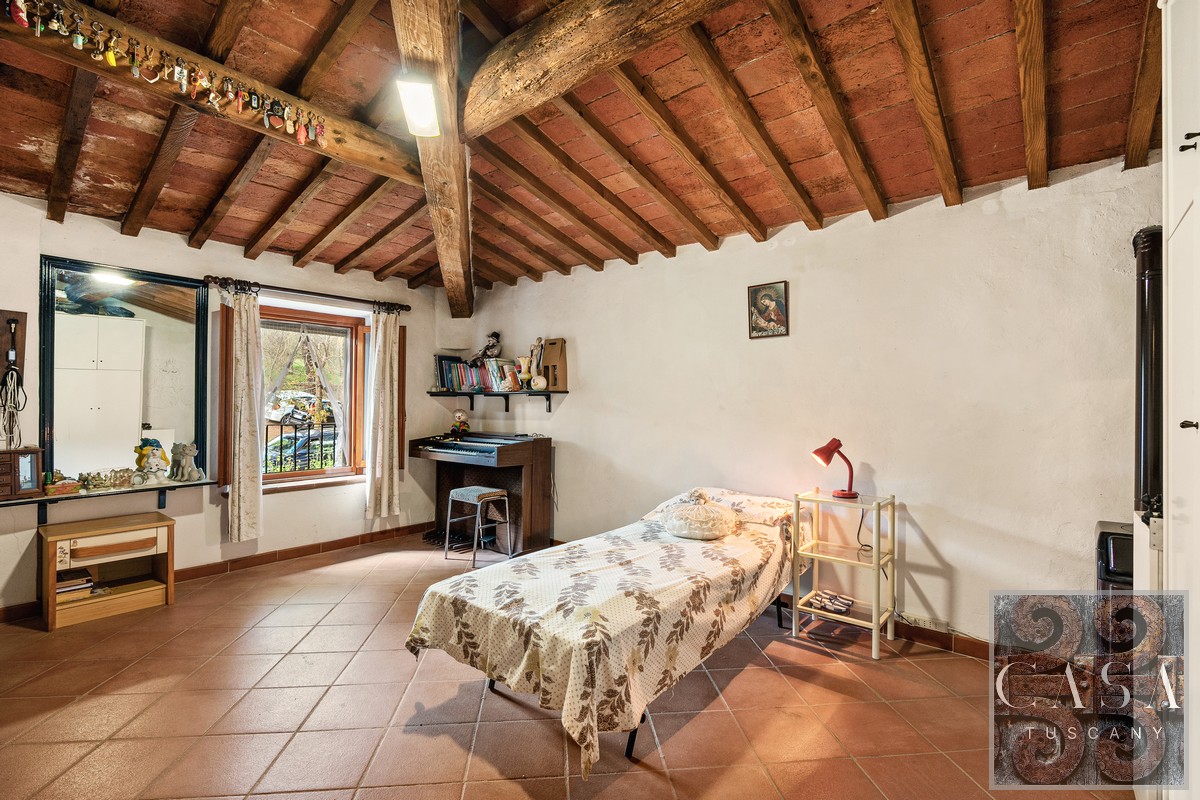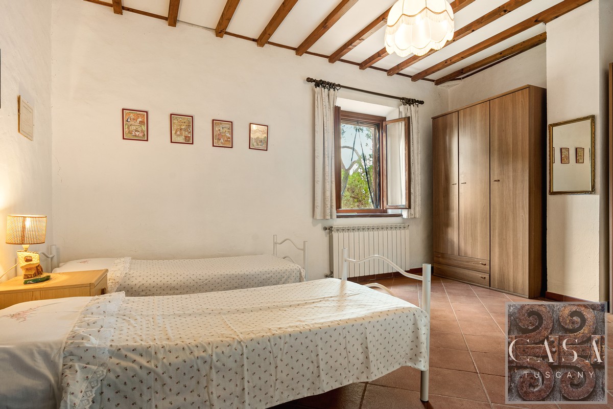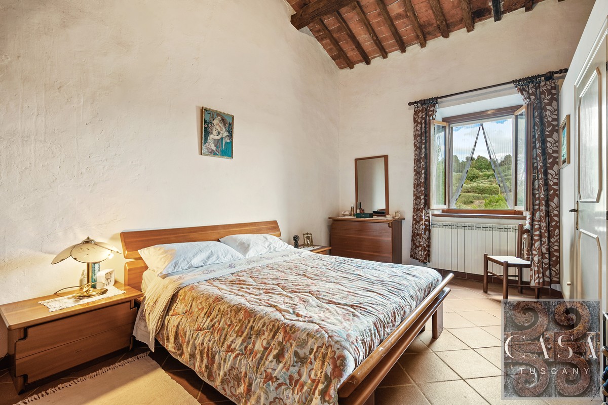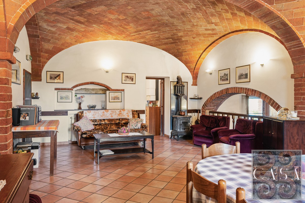 The classic stone country house with 4 bedrooms, a rustic cellar, two barns and a garden, with views over Sinalunga and the Val di Chiana.