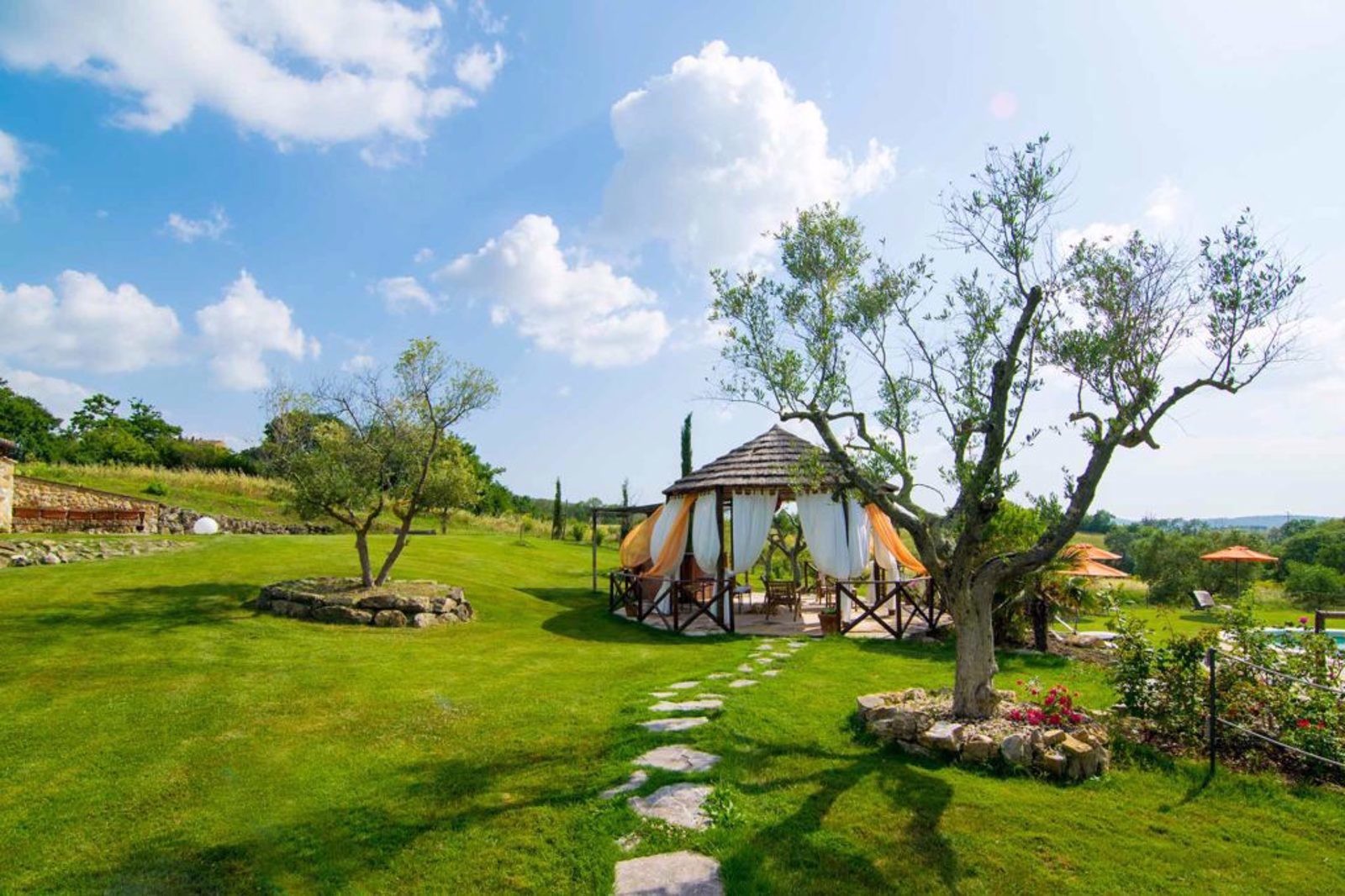 Surrounding the farmhouse is a manicured garden, a beautiful saltwater pool and relaxation areas with gazebos, where you can admire a wonderful views at sunset.