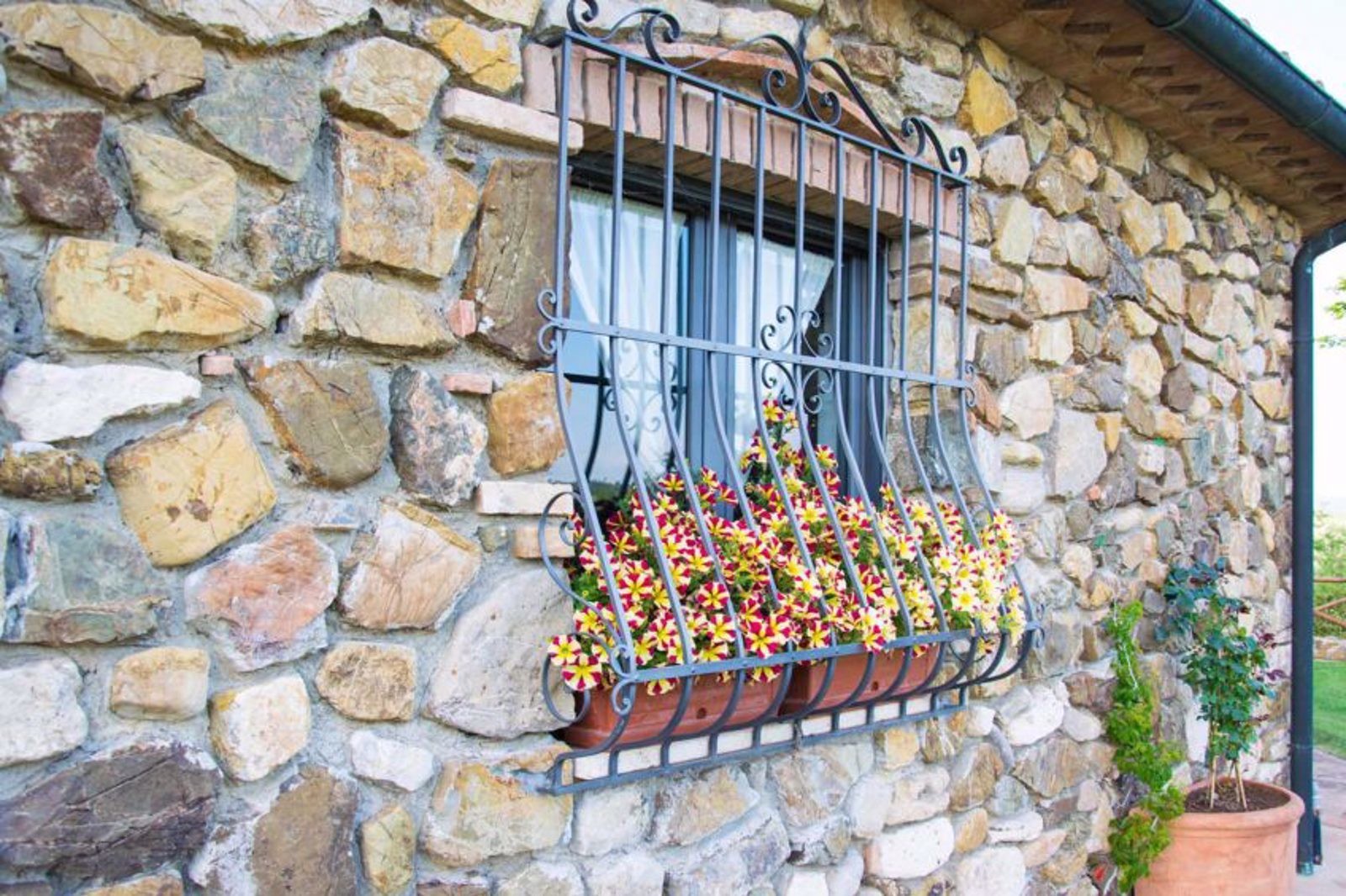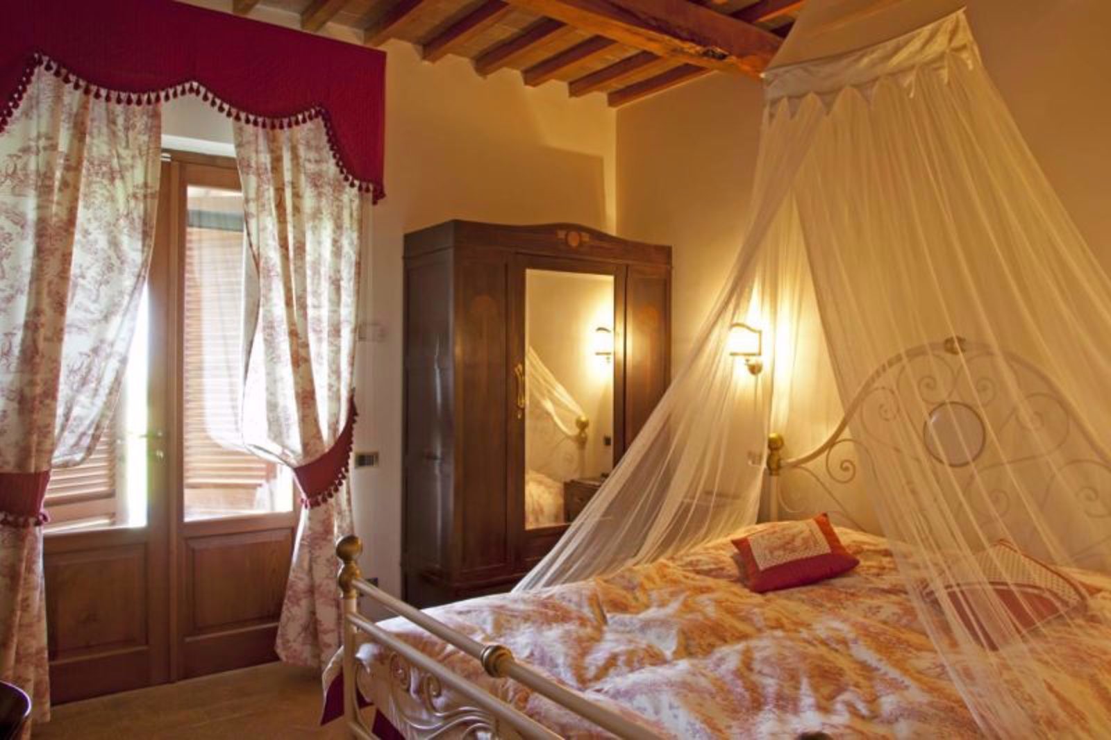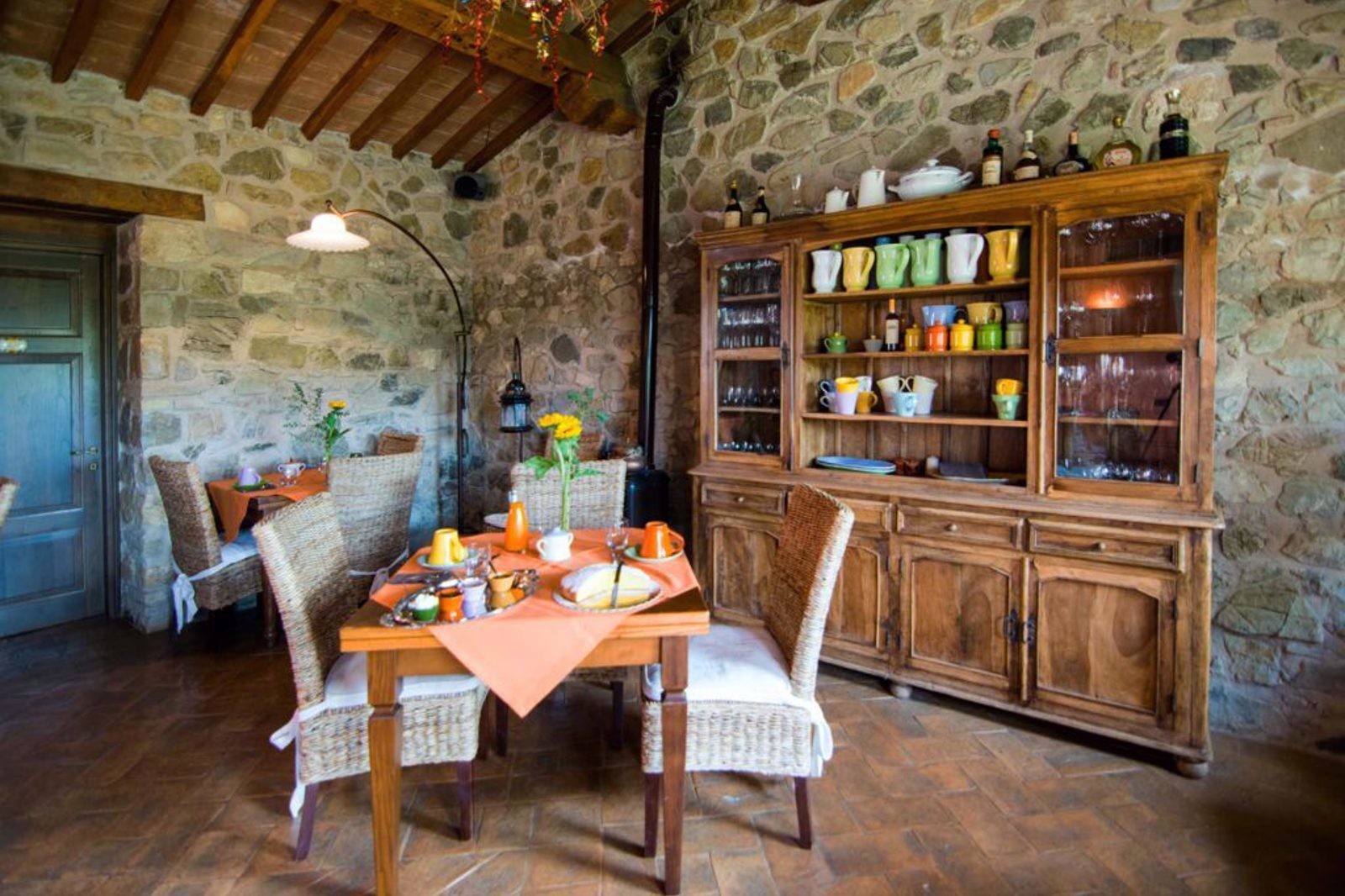 The farmhouse is finely furnished in rustic Tuscan style with stone walls, exposed beams and terracotta floors.