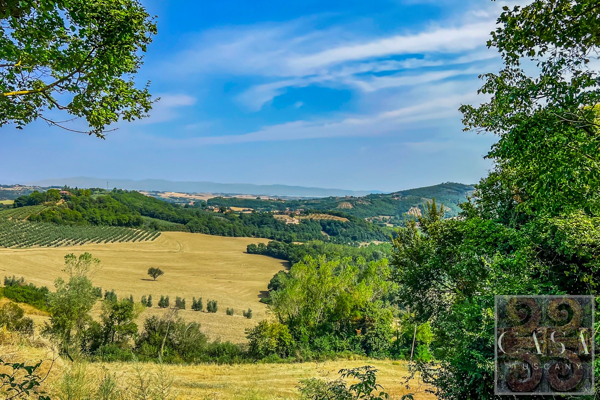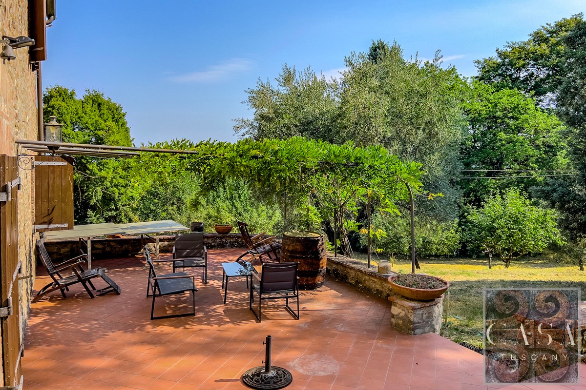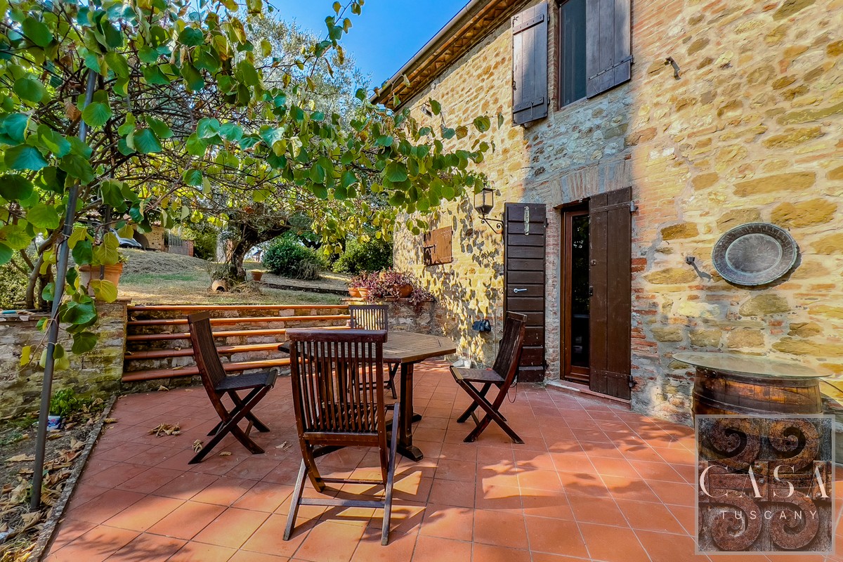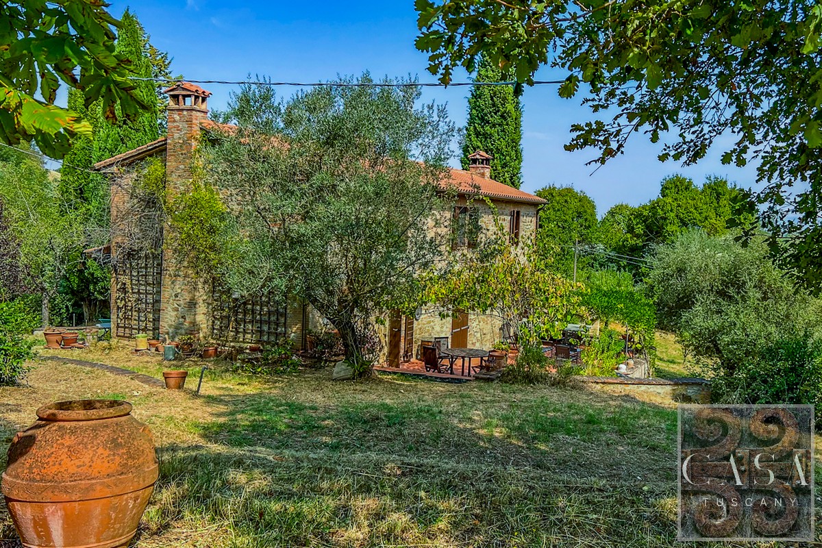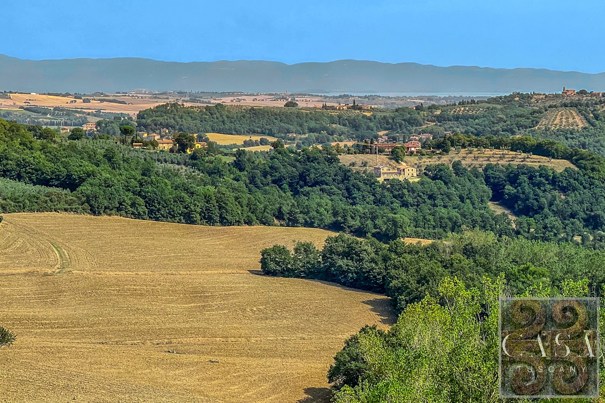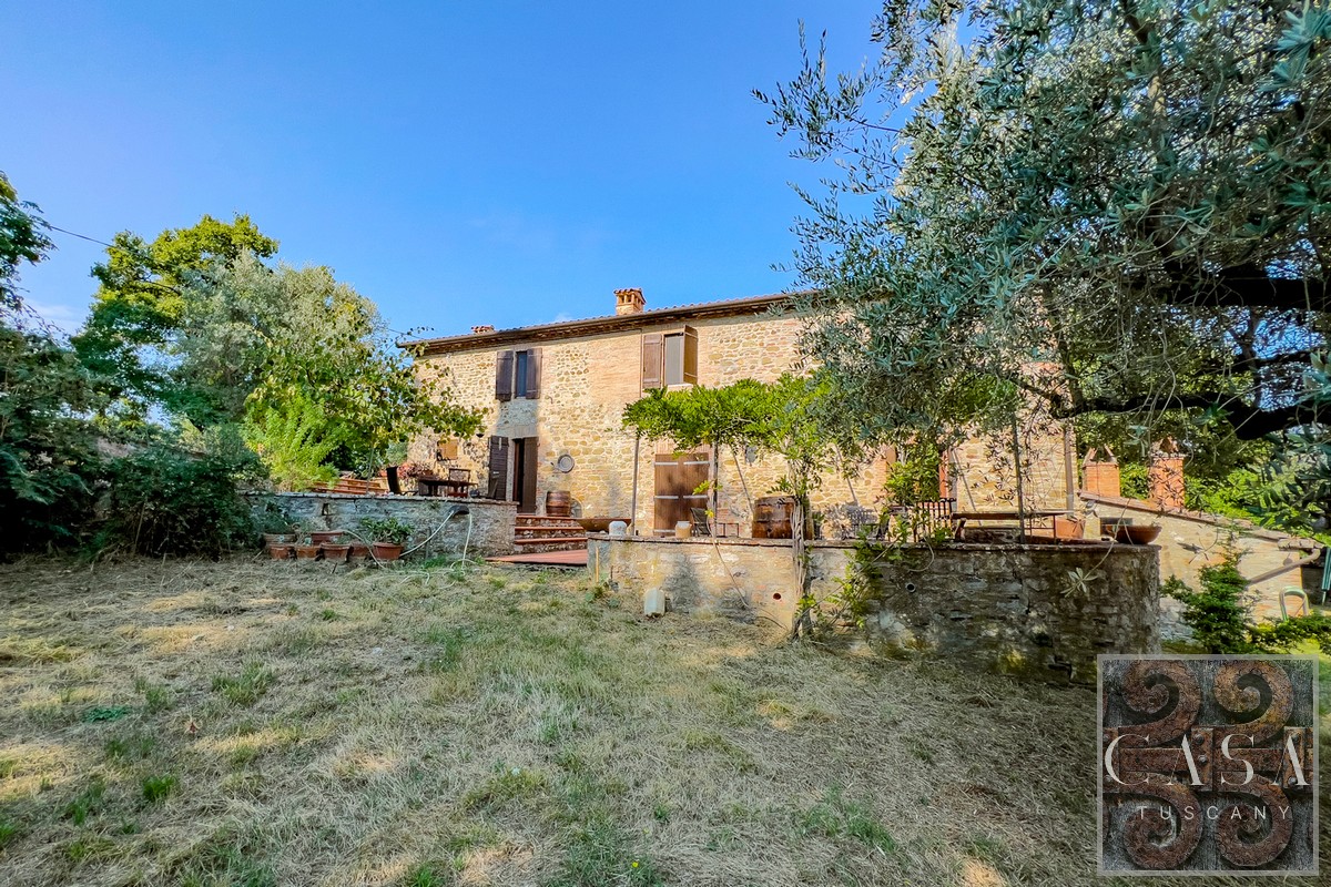 In a privileged and private location, this stone country house offers a splendid panoramic view and is in the Umbrian countryside, a few minutes from the historic centre of Città della Pieve and the shores of Lake Trasimeno.