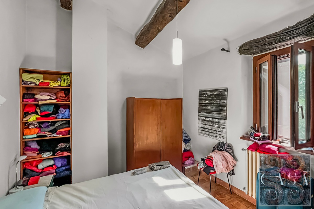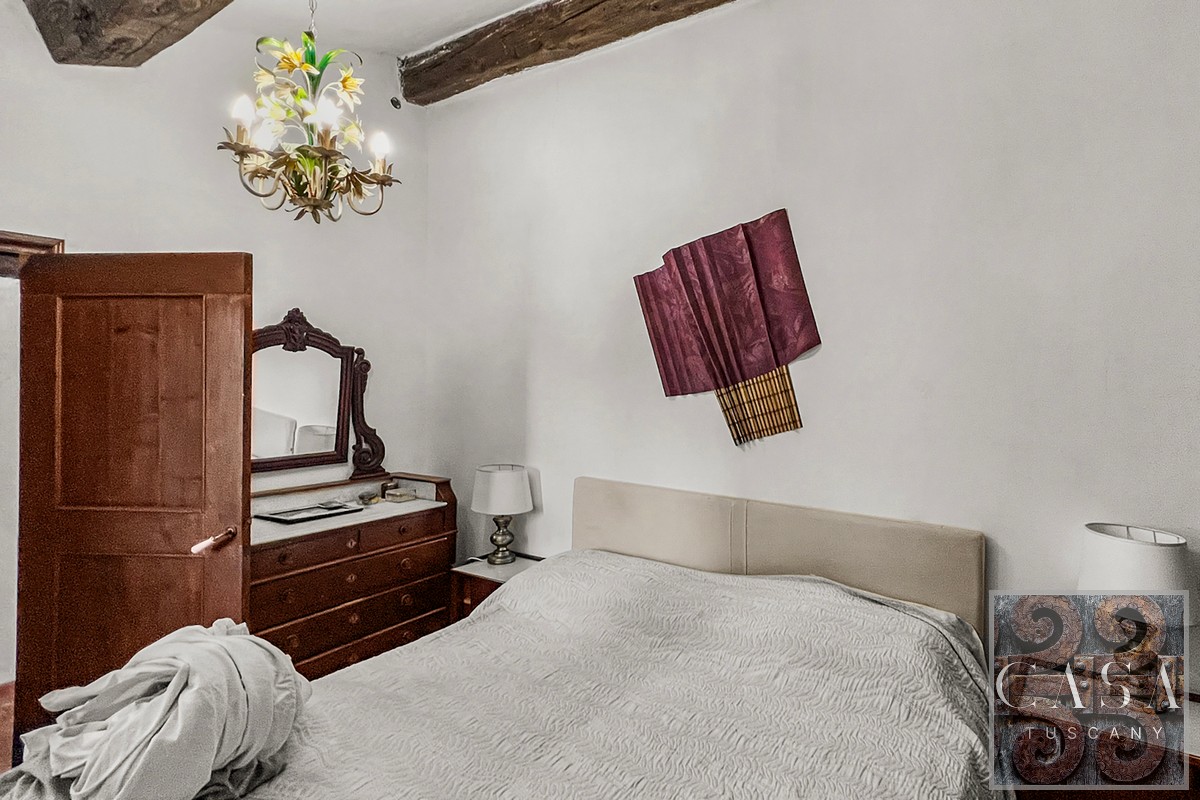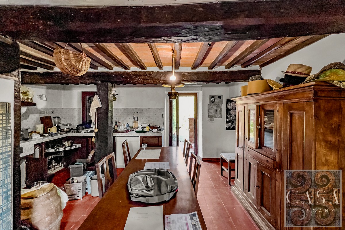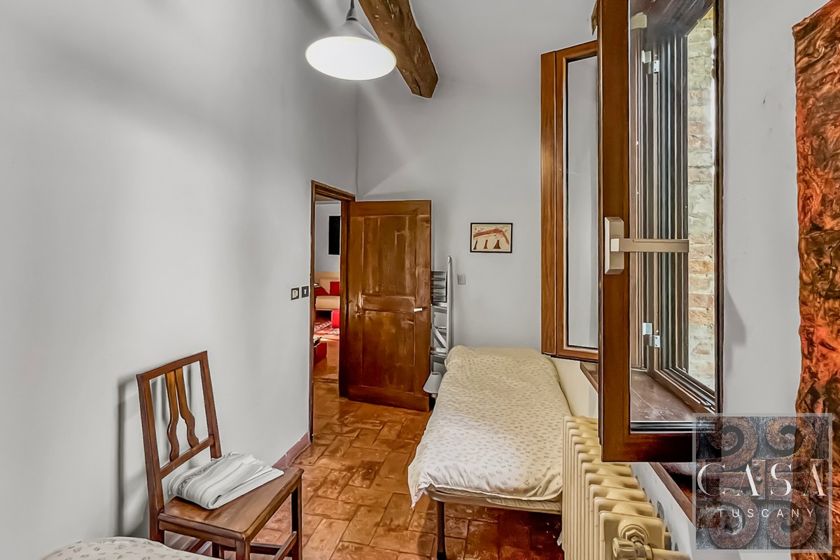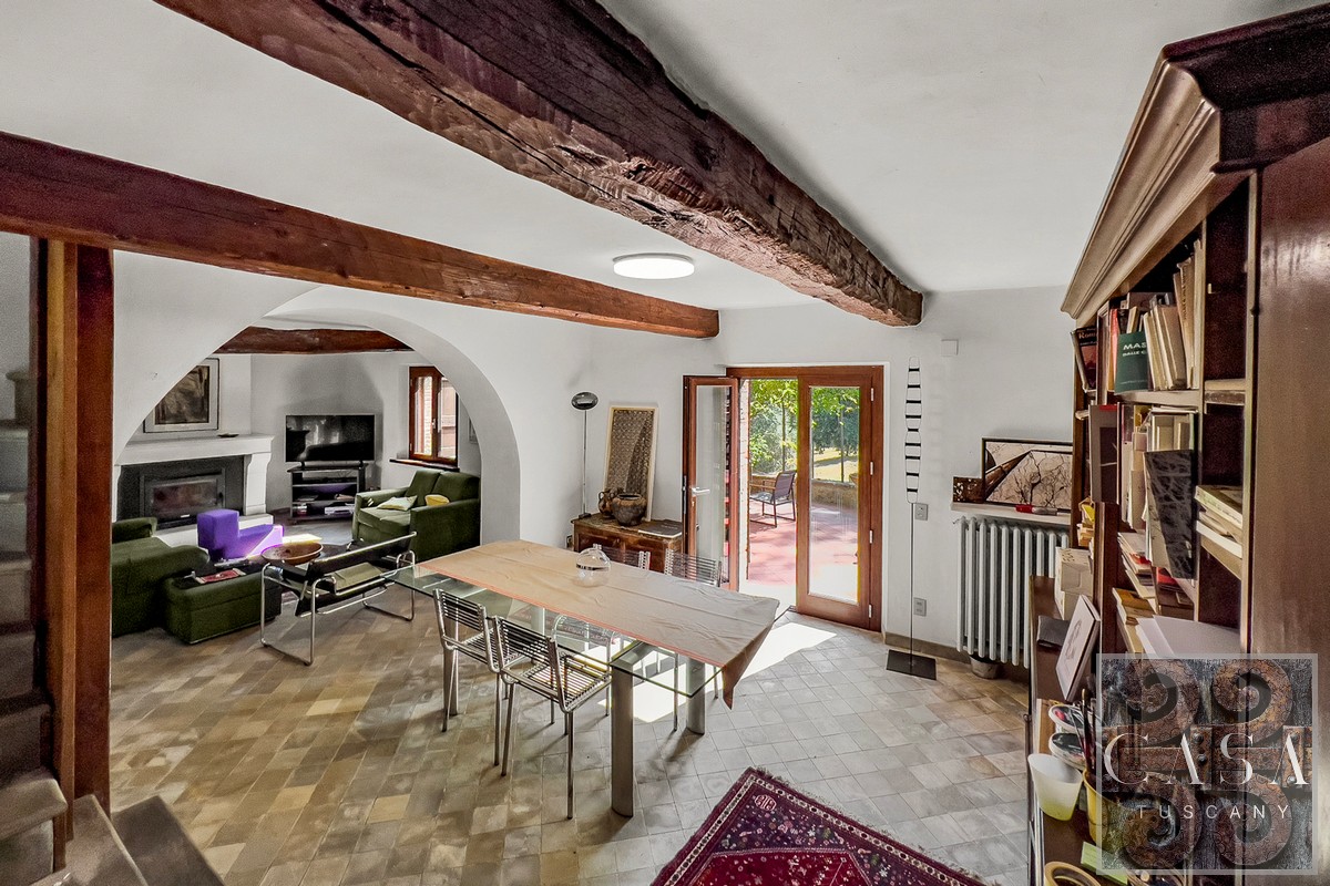 The property, on two levels, retains its authentic Umbrian charm and has ceilings with exposed beams and traditional terracotta floors: on the ground floor there is a kitchen, a spacious living room with dining room dominated by the fireplace, a bathroom with external access and a wood-burning oven, with windows that open onto the porch to extend the outdoor living area.