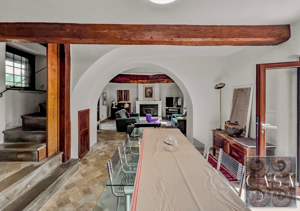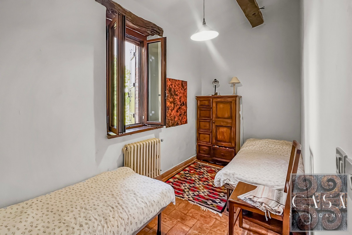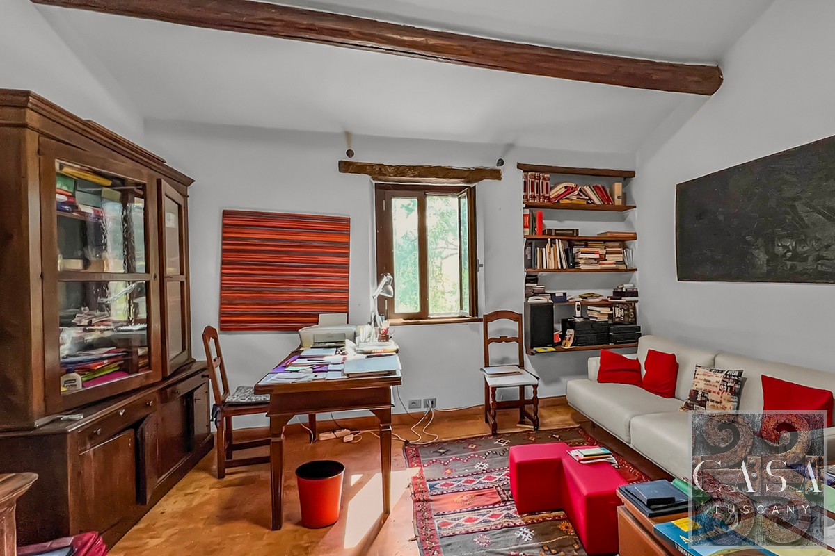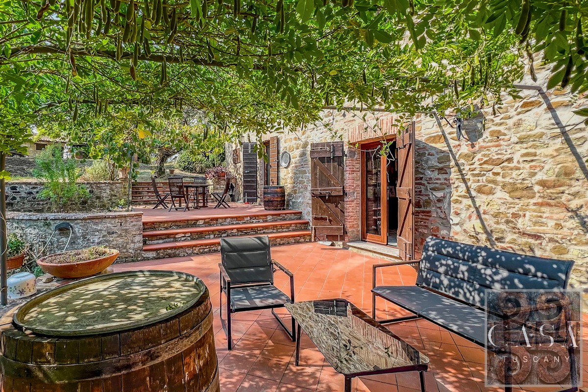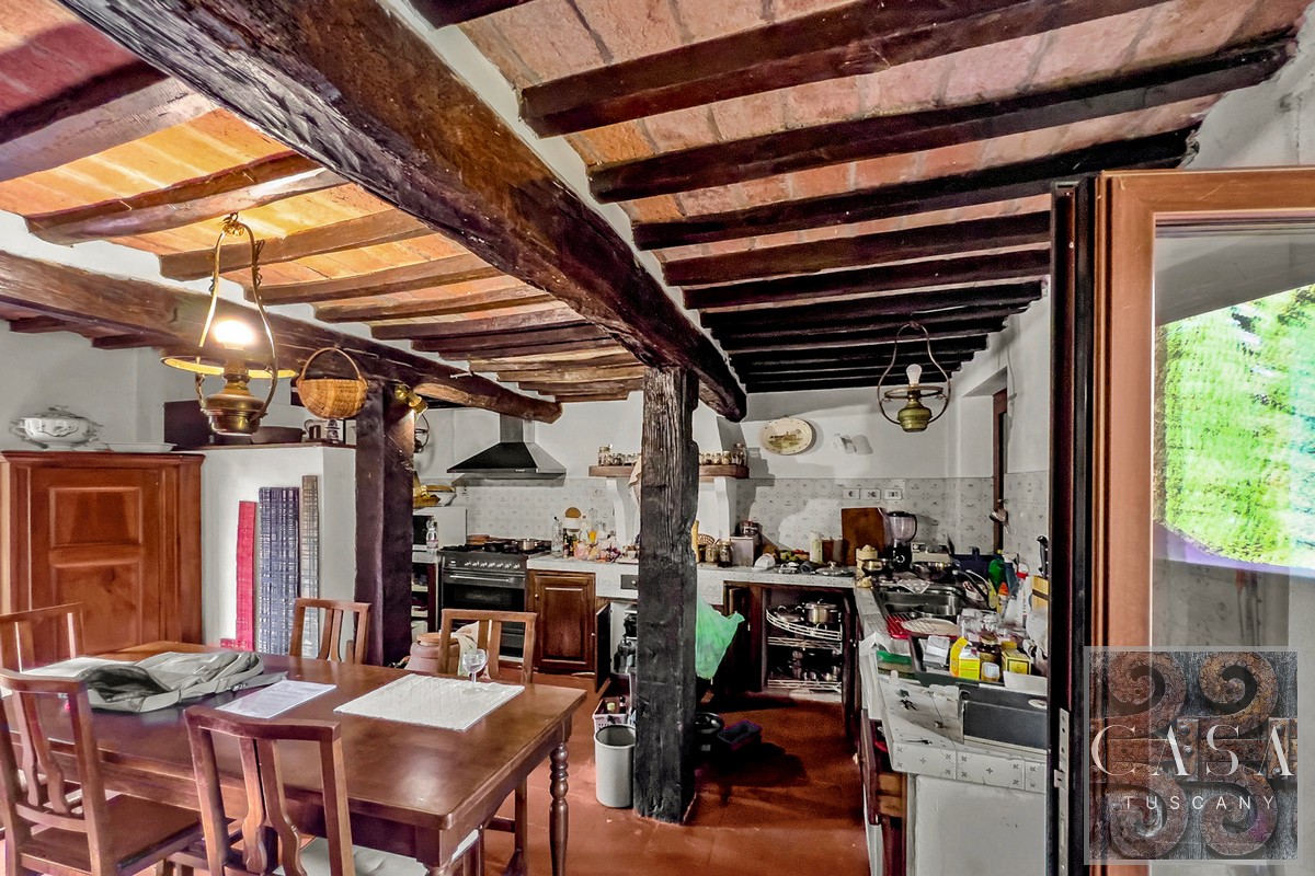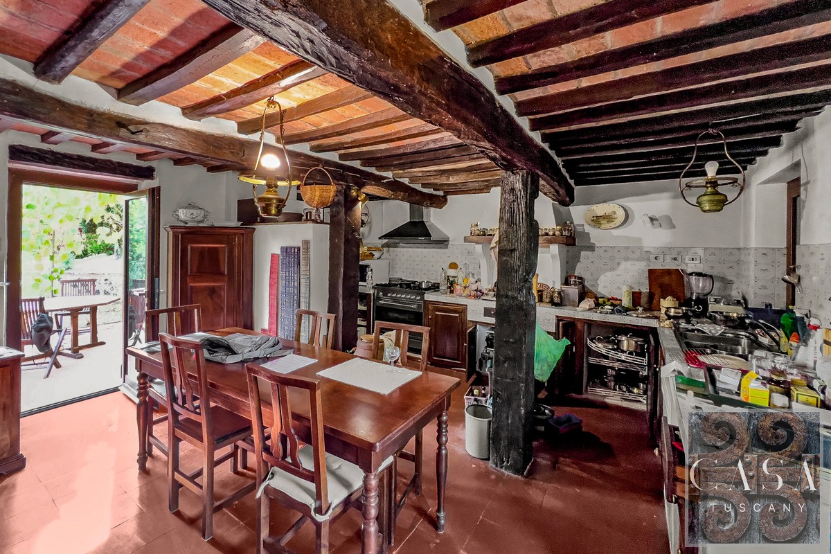 The property, on two levels, retains its authentic Umbrian charm and has ceilings with exposed beams and traditional terracotta floors: on the ground floor there is a kitchen, a spacious living room with dining room dominated by the fireplace, a bathroom with external access and a wood-burning oven, with windows that open onto the porch to extend the outdoor living area.