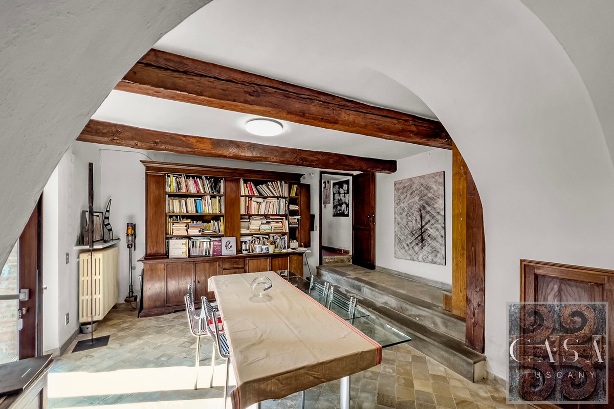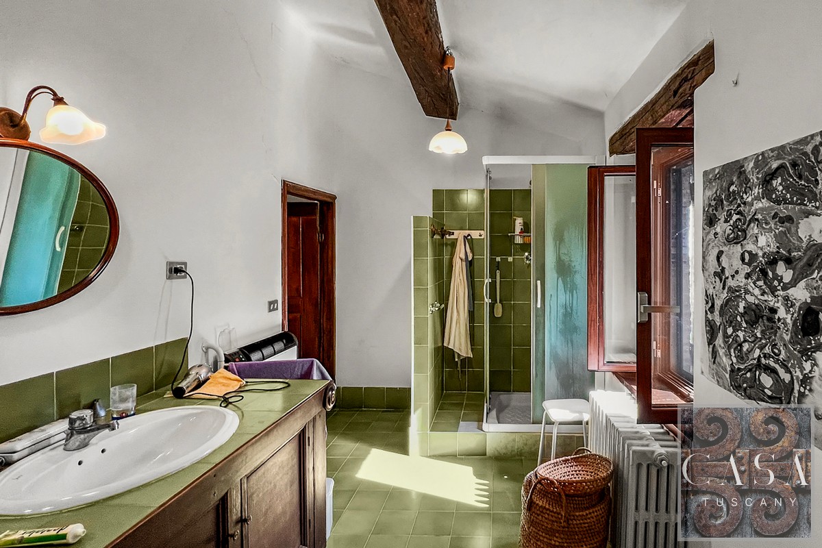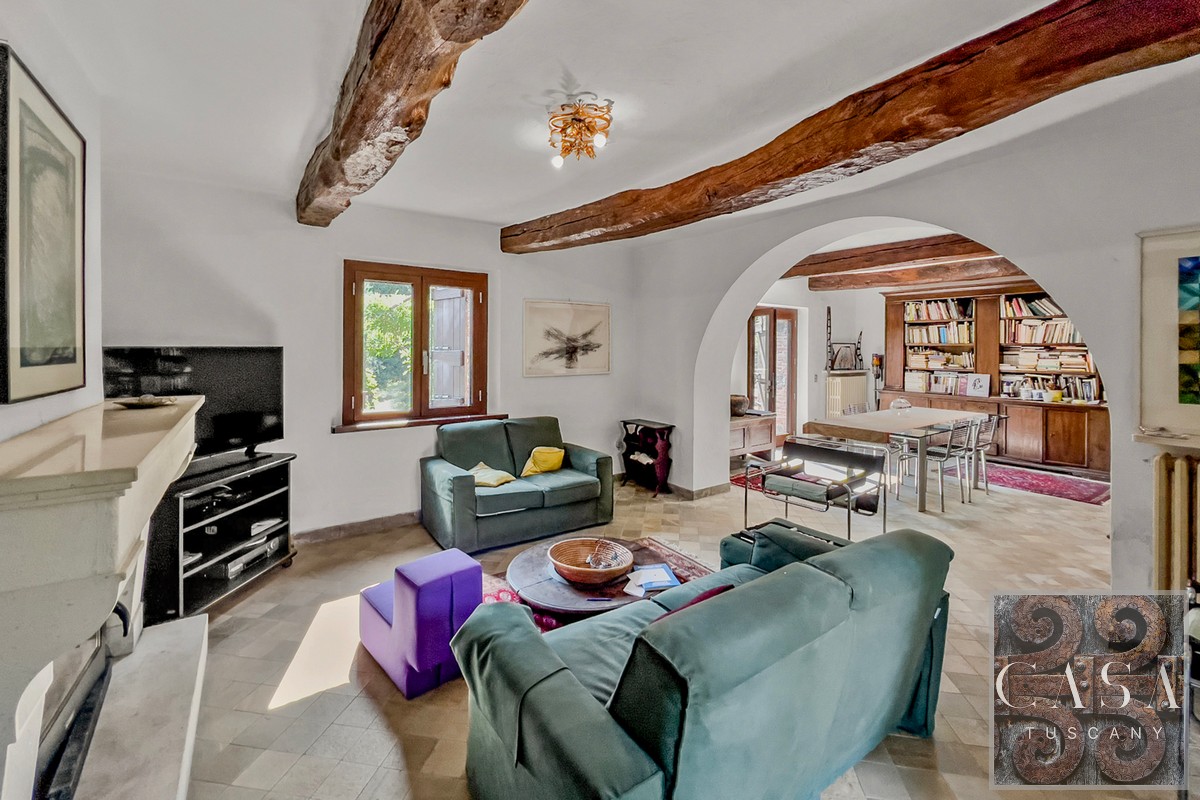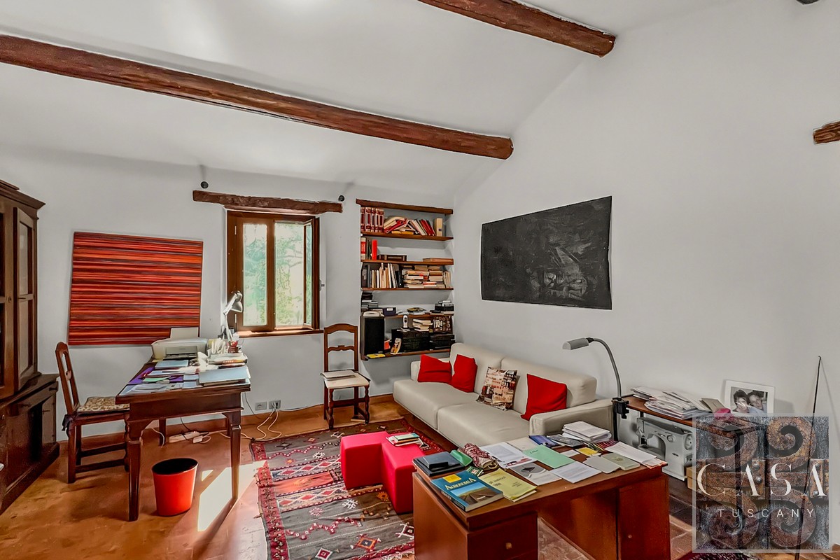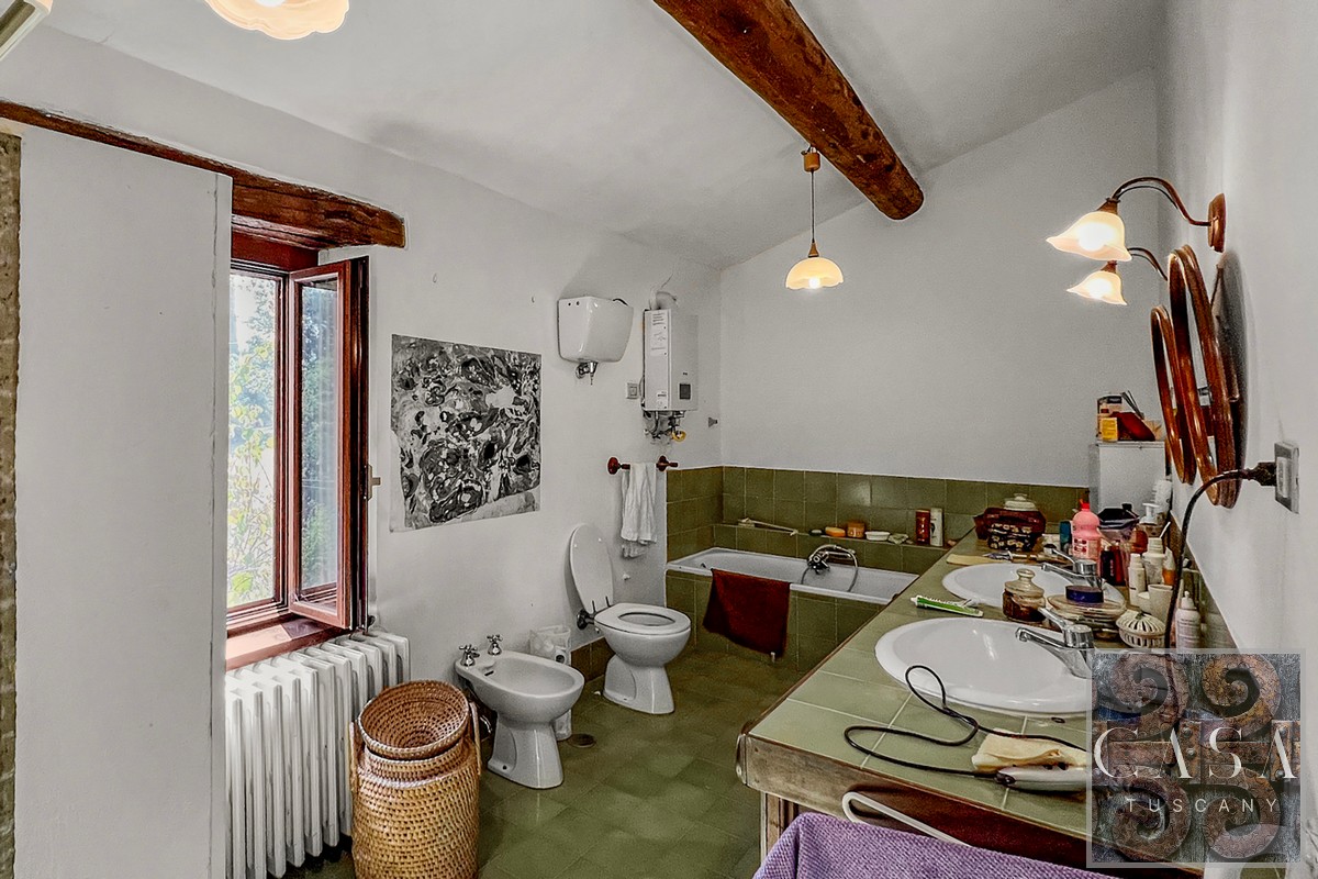 The property, on two levels, retains its authentic Umbrian charm and has ceilings with exposed beams and traditional terracotta floors: on the ground floor there is a kitchen, a spacious living room with dining room dominated by the fireplace, a bathroom with external access and a wood-burning oven, with windows that open onto the porch to extend the outdoor living area.