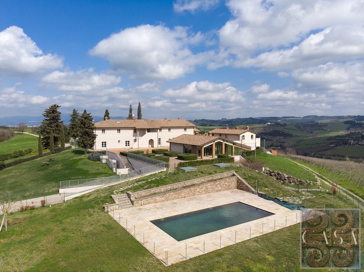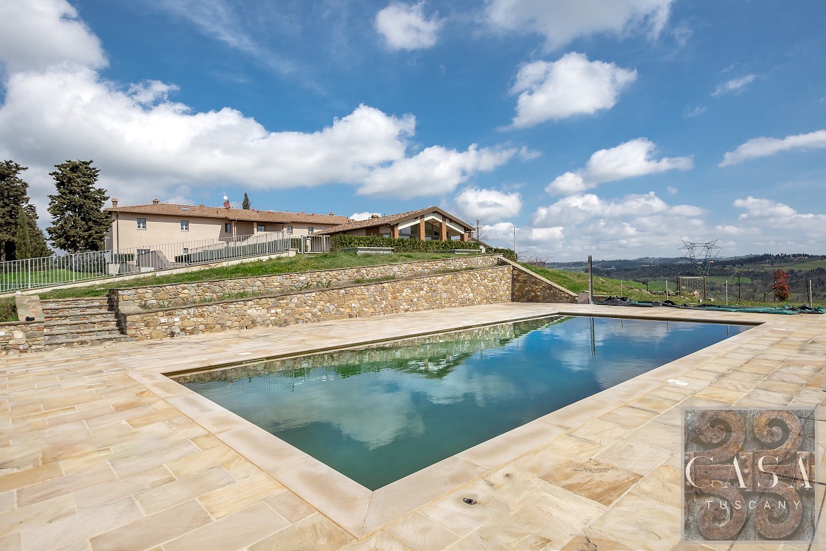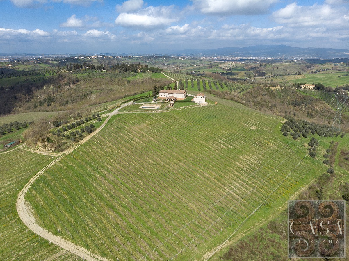 A wonderful Chianti DOC organic vineyard and winery, with 22.4 hectares, a villa with pool, spa, banqueting halls and top-class amenities for sale near Florence.