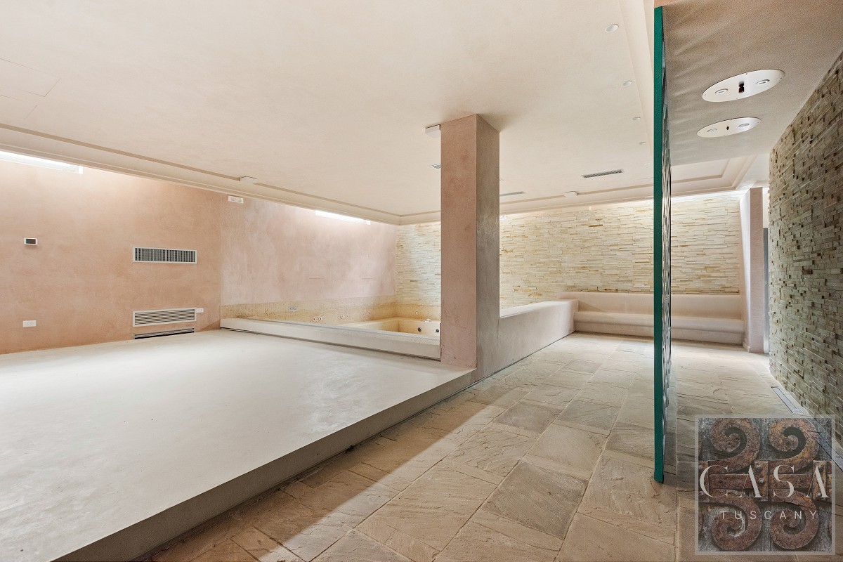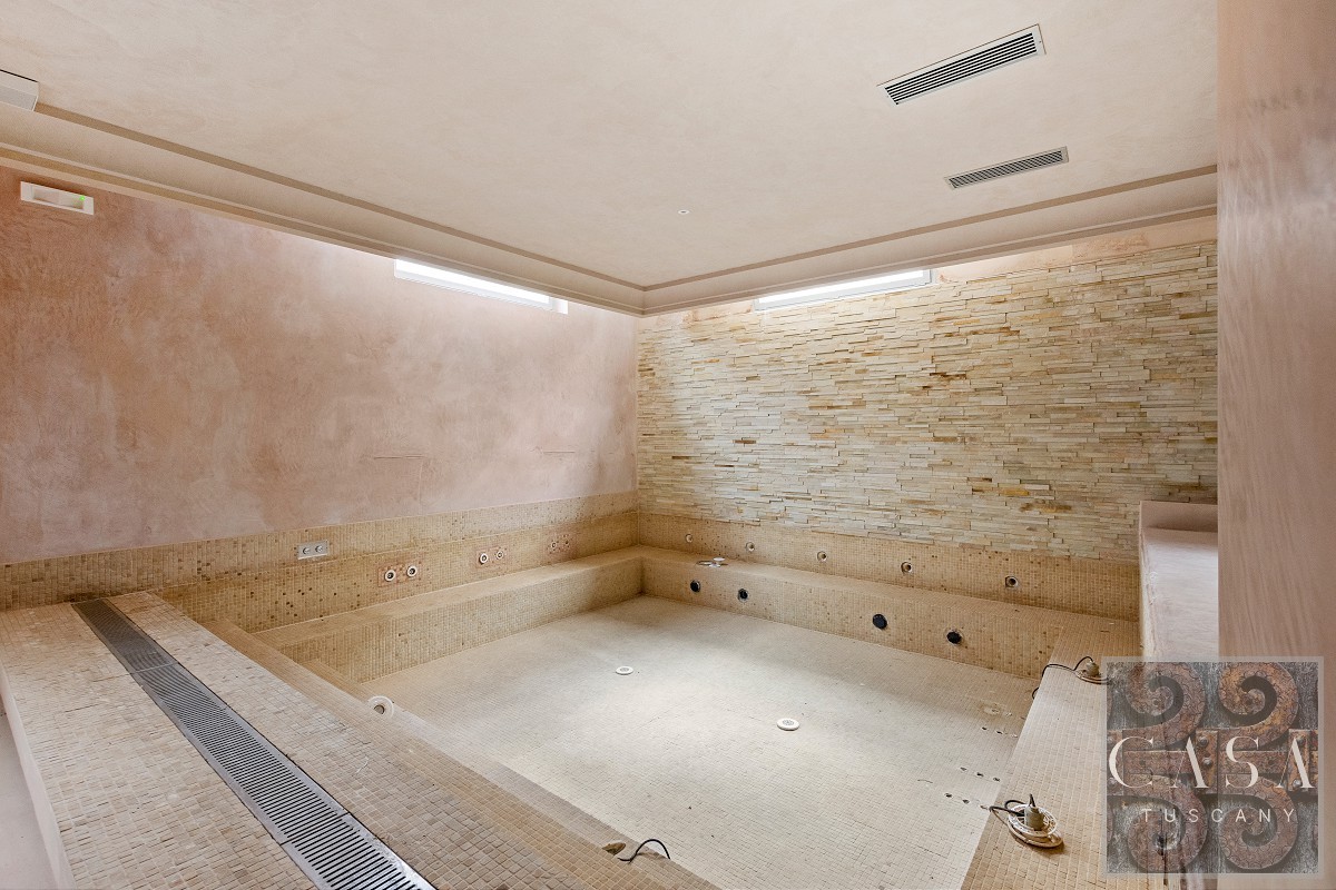 The new basement area has been dedicated to multipurpose activities including a luxury spa and an indoor jacuzzi with a stone-wall waterfall paired to a conference and banqueting hall hosting up to 220 people.