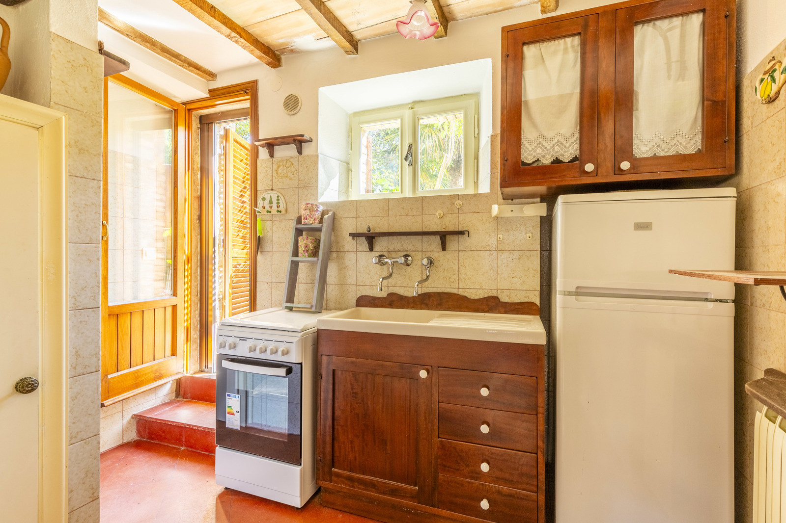 First floor: accessed either via internal or external staircase (with small balcony) and with a small dining room, a kitchenette that connects to the private back garden, ideal for lunches and dinners in the summer season.