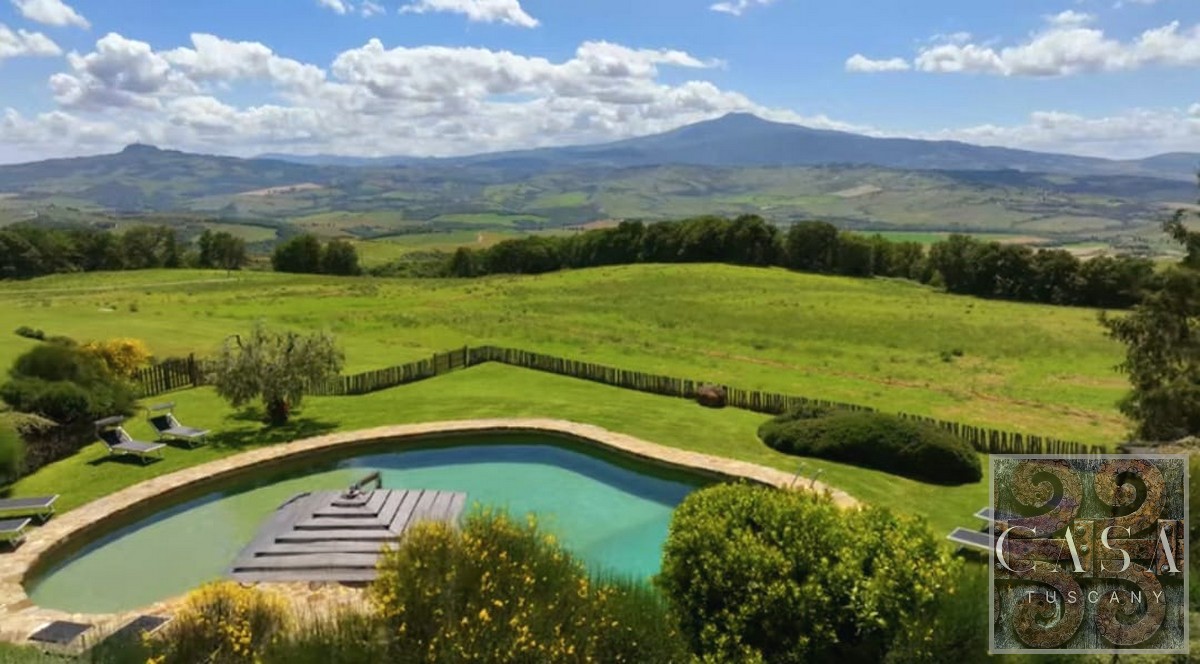 This property is reached by passing the beautiful Villa della Foce, from one of the most fascinating roads of the upper Val d’Orcia. Once there, in addition to an articulated architectural structure, and a beautiful swimming pool, you are welcomed by a breathtaking view, the location of many film sets. Excellent furnishings.
