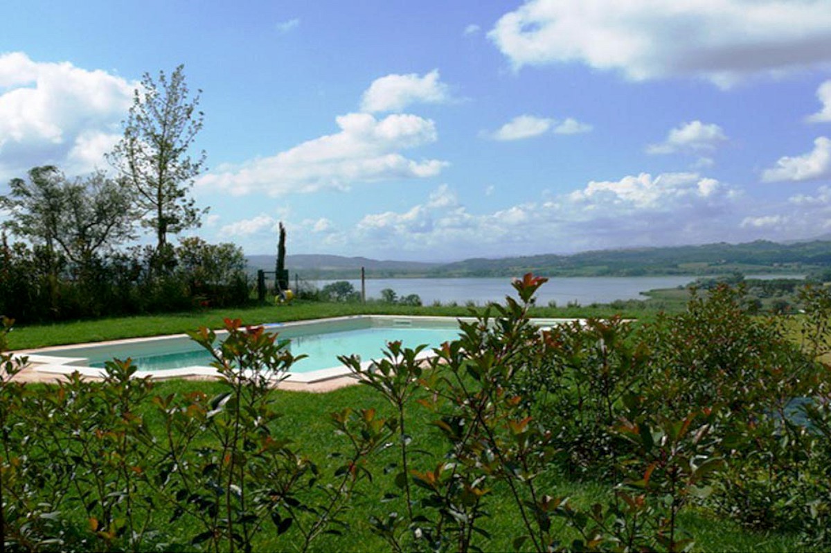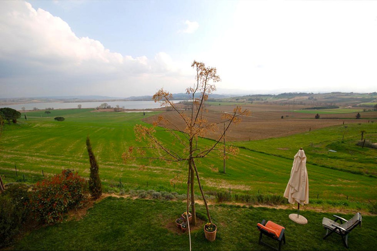 House with View of Lake Chiusi. On a small complex on the shores of Lake Chiusi, this lovely house enjoys the most amazing views over the water and the landscape of Tuscany and Umbria. Perfect for walkers, there is an authentic village nearby and the Lamborghini Golf Club is a 15 minute drive.