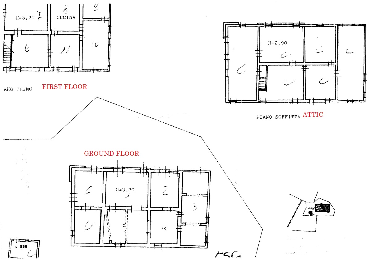 About 10km from the walls of Lucca in the direction of Pescia. Motorway access just 3km In a secluded position, with complete peace and privacy. It was fully restored to a high specification in the 90s, respecting its original characteristics. Covering 910 sqm it is on 3 floors;