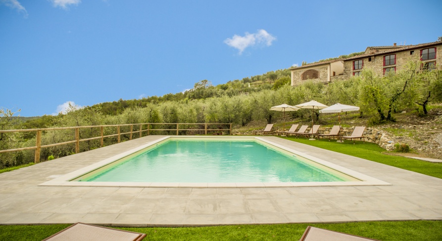 The property comprises a splendid villa of 350 sqm, finely restored in keeping with Tuscan style and in a dominant position with majestic views of the rolling hills and an agriturismo of 1,000 sqm with guest accommodation for 28 people, cellars, tasting room and store rooms. The sale includes 80 hectares of land with extensive olive groves and vineyards. The property also features a large private garden with a stunning infinity pool and terraces.
