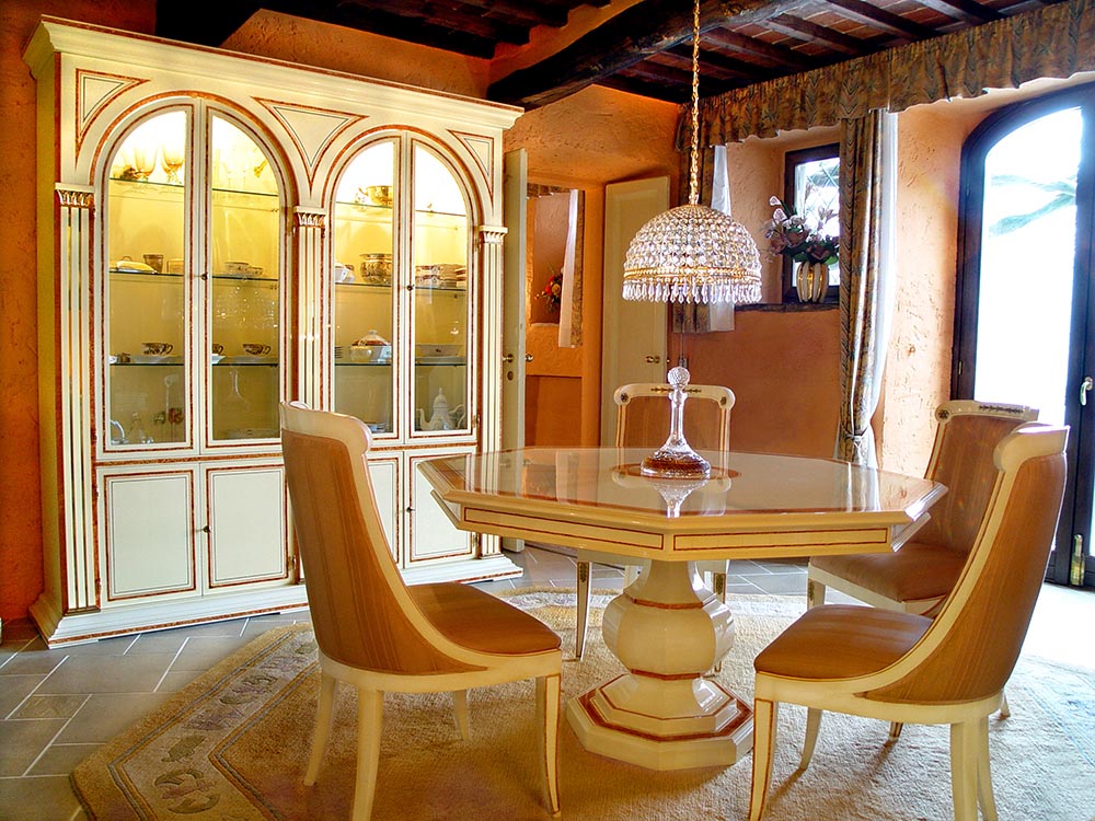 Soft yellows and earthen tones are the backdrop for the incredible art and antique collection. The furniture, art and antiques are valuable, precious pieces, from original paintings, unique antiques to the Christoffle silverware from France. The stunning centerpiece in one living room is an original “Louis XVI Bureau Plat” to which also belongs the original light fixture and an authentic Italian secretaire with masterfully crafted inlay work. Adding greatly to the comfort and atmosphere of the residence are Tibetan and Persian carpets, Italian Crystal Murano glass chandeliers, candelabras, a huge Venetian mirror and baroque mirrors. Further highlight of the exquisite treasures in the house is porcelain, custom made by “Limoges” to match the octagonal dining room fable. The dining room furniture set was hand crafted by a Milanese carpenter and is inlaid with ivory. The dining room china cabinet holds the Russian “Flora Danica”, which was a gift from the Royal family to the last Russian Czar. There is more precious bone china by “KPM” and “Meissen”, lead crystal carafes, vials and old English miniatures. In the upstairs library you find beautiful original paintings and even Napoleon Bonapart’s campaigning clock is amongst the treasures.