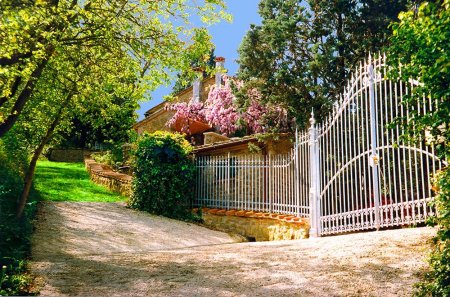 400 year old masterfully restored building. The residence is nestled in privacy and security in the midst of vineyards and olive groves on the slopes of the hills in a glorious Tuscany landscape. This setting is fit for a painting by one of the venerable old masters of the arts.