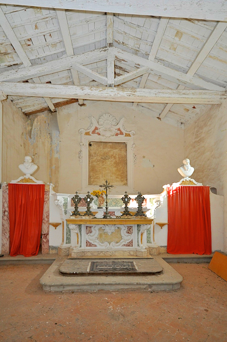The church, which measures approx. 110 square metres, has been deconsecrated. It has a truss ceiling with wooden beams and tiles; a part of it requires some restoration.