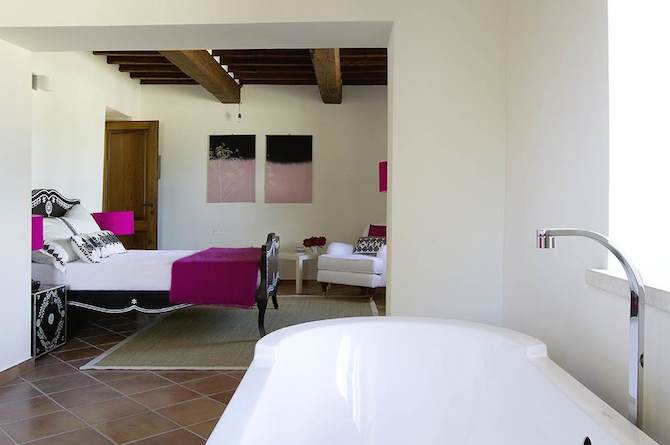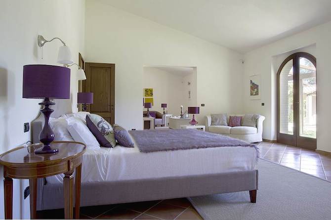 The colours are warm and welcoming, the natural warm tints are brought to light from the bright touches of colour in the fabrics and furnishings. The garden has an open panoramic position where there is the swimming pool with infinity edge, of 14m x 7m and the jacuzzi tub that seats up to six people. The porch, characterised by warm colours, is a dining room complete with fireplace expertly positioned against the stone-faced wall. The entrance to the property is via about 600 metres of road in excellent condition, with automatic gates. The garden has an automatic irrigation system, a shared well and cistern for rain water with a capacity of 54,000 litres. The land, about 1.8 hectares (4.45 acres) and is partially enclosed.
