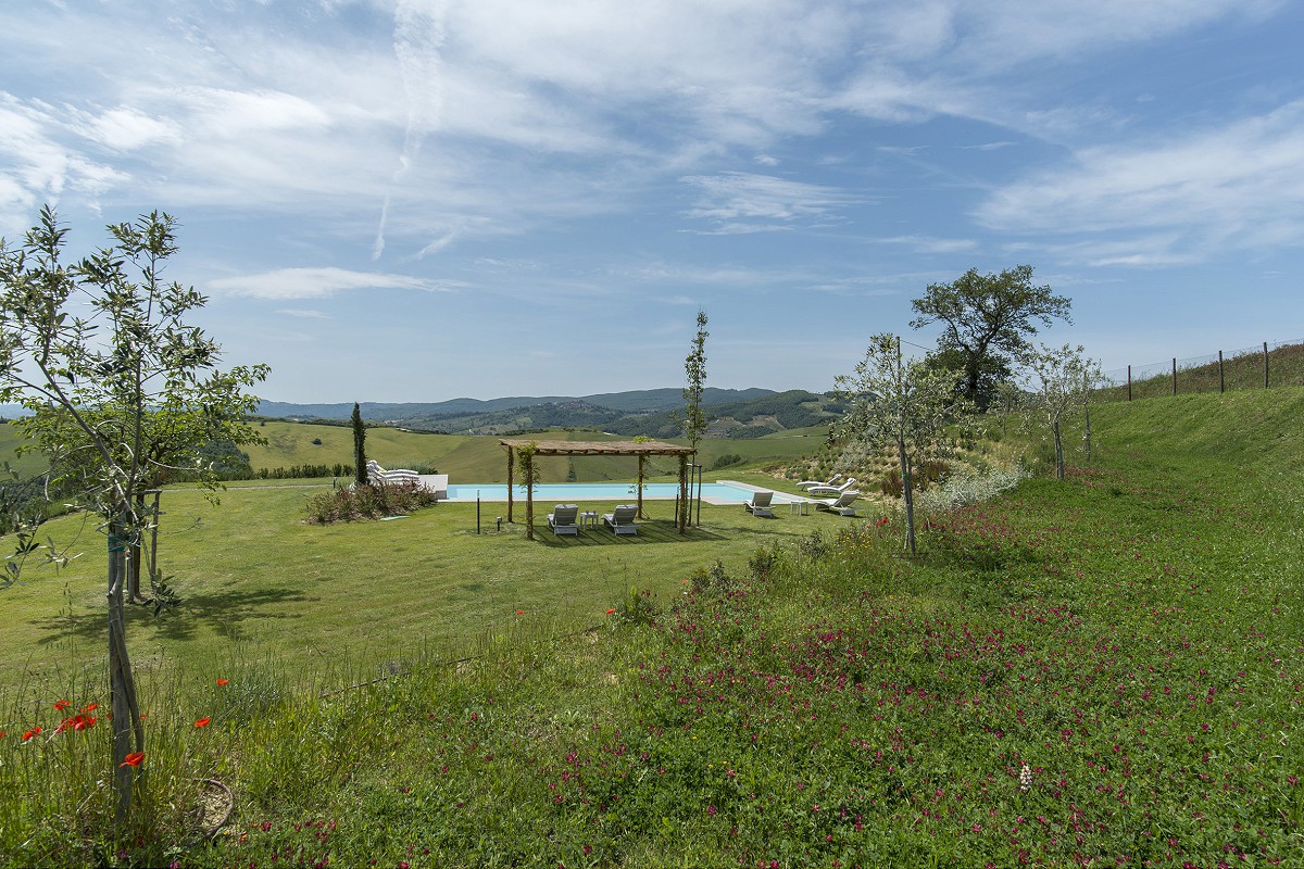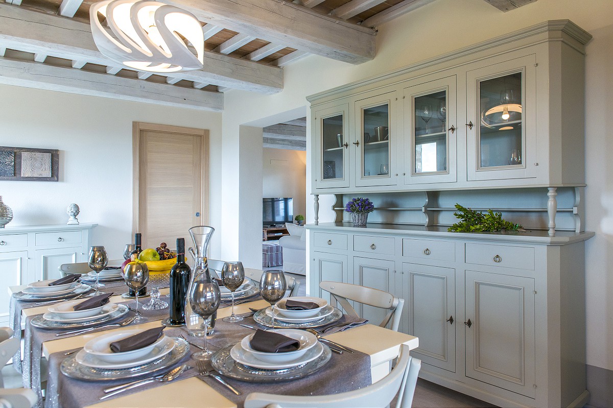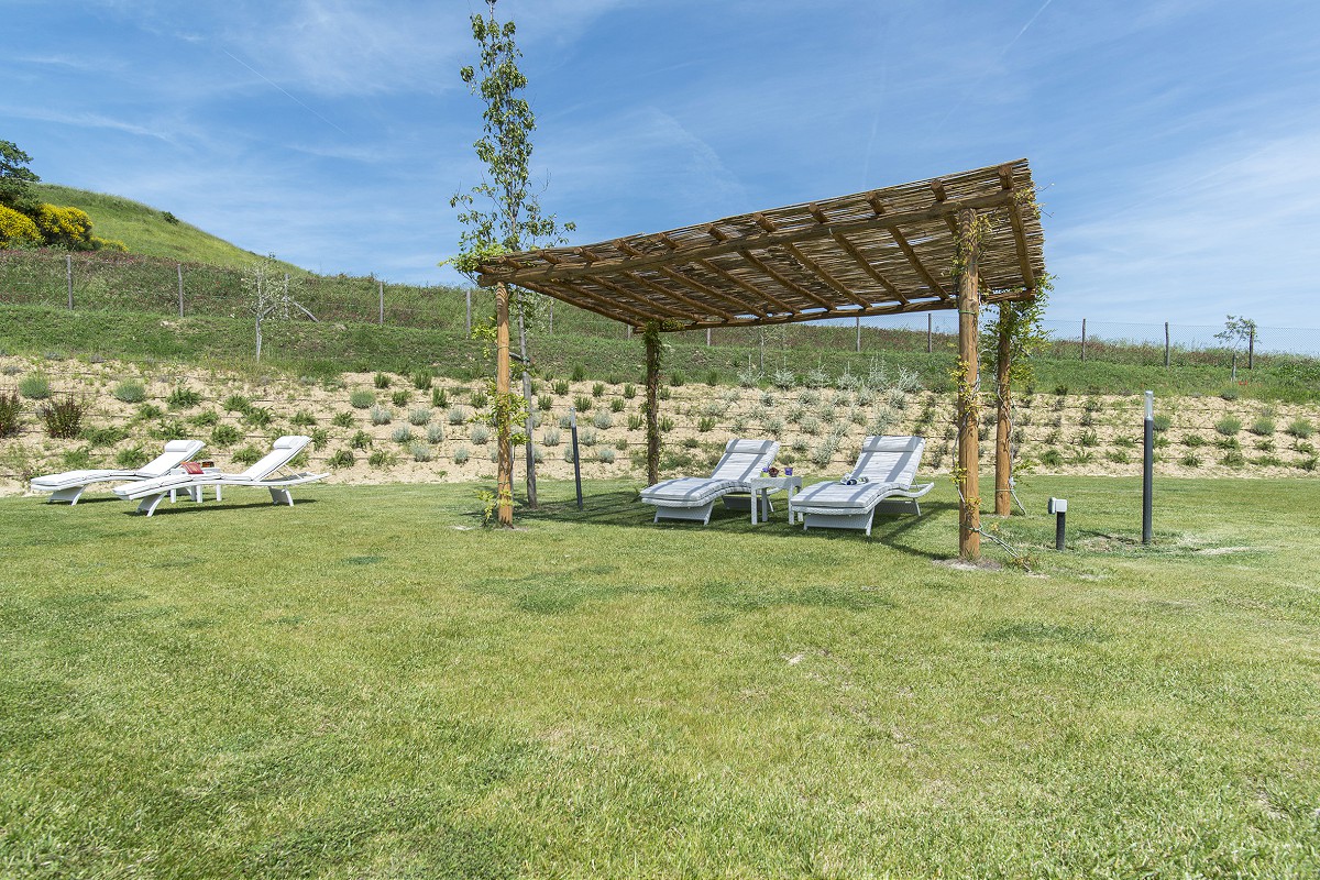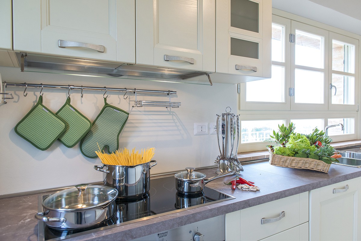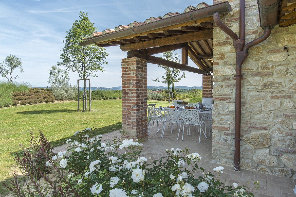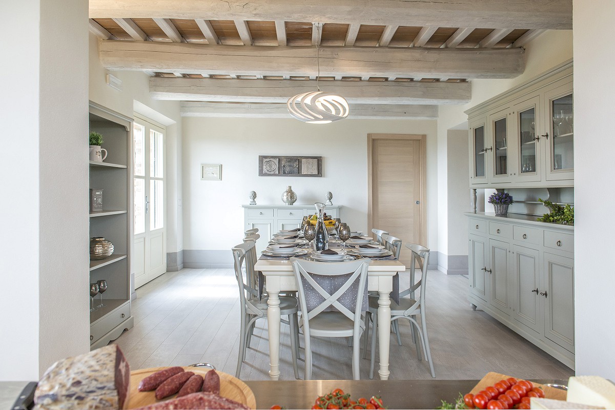 Unlike the old farmhouses, the new construction has allowed not only the use of modern construction techniques, but also the creation of large windows overlooking the garden which make the rooms on the ground floor particularly bright.