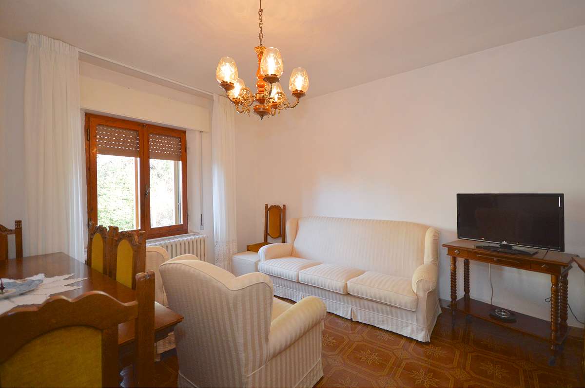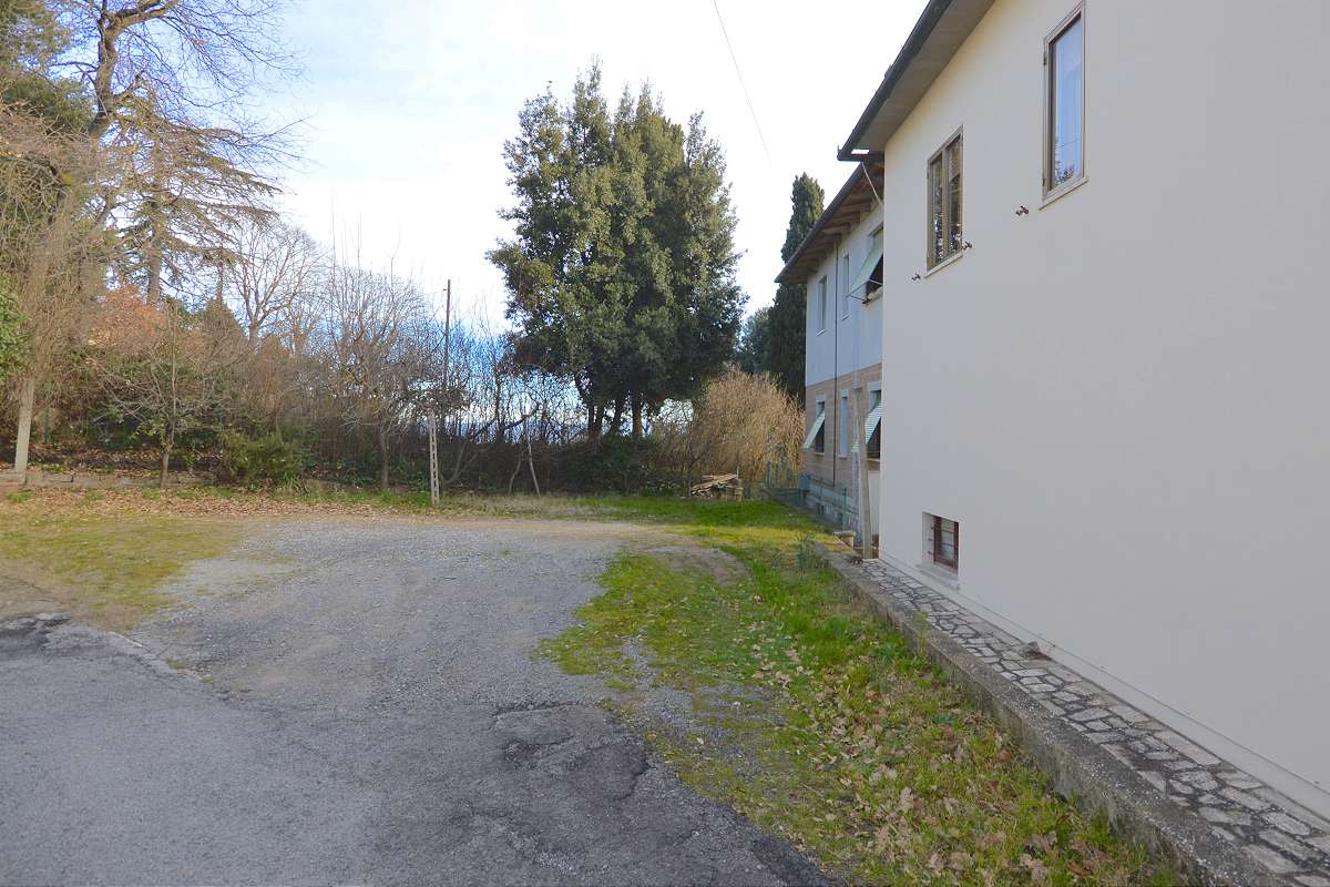 Just 500 m from the historic centre of beautiful Montepulciano, this apartment is located on the first floor of a building constructed in 1962. Arranged on one level with a garage beneath, the property provides 200 sqm of living space and boasts a balcony that runs along one side of the building with views over the old town.  In addition, the property enjoys its own private garden.