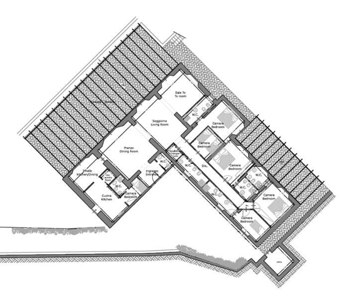 The villa is on one level and has large windows which open onto a magnificent terrace, perfect for relaxing and enjoying the splendid sea view.