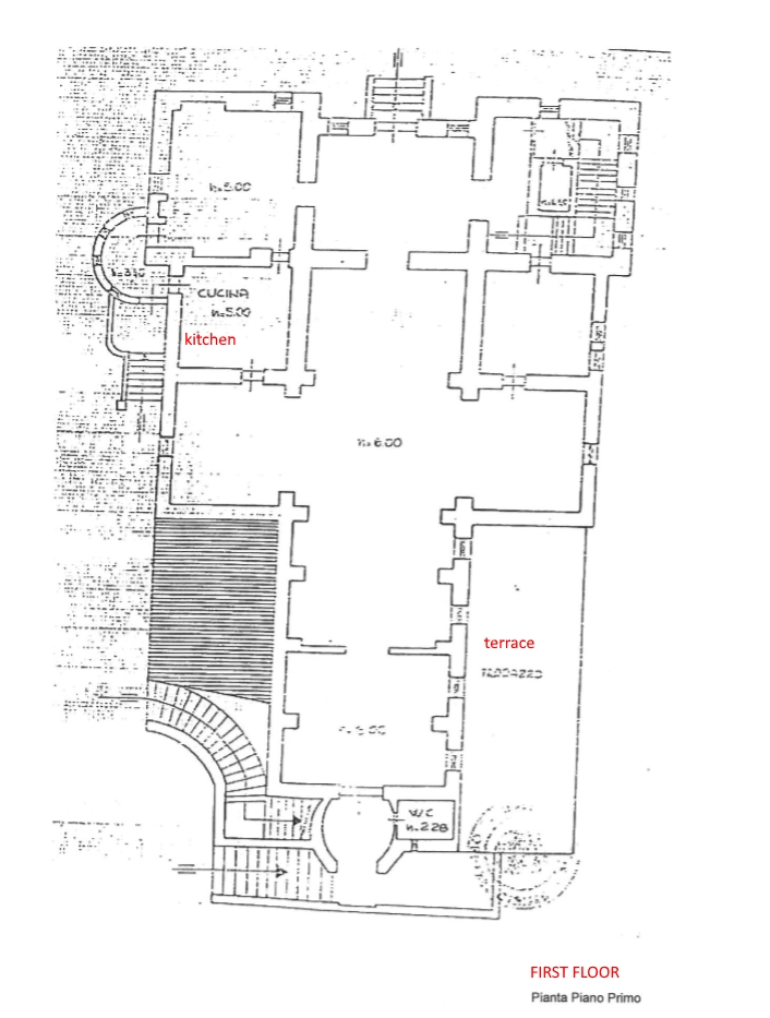First floor: Large kitchen, bathroom and panoramic terrace;